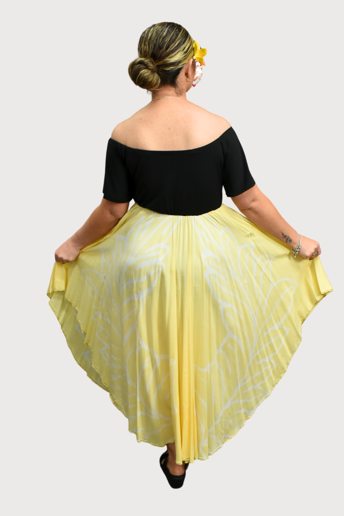 BLACK & YELLOW HIGH WAISTED DRESS - SIZE 14