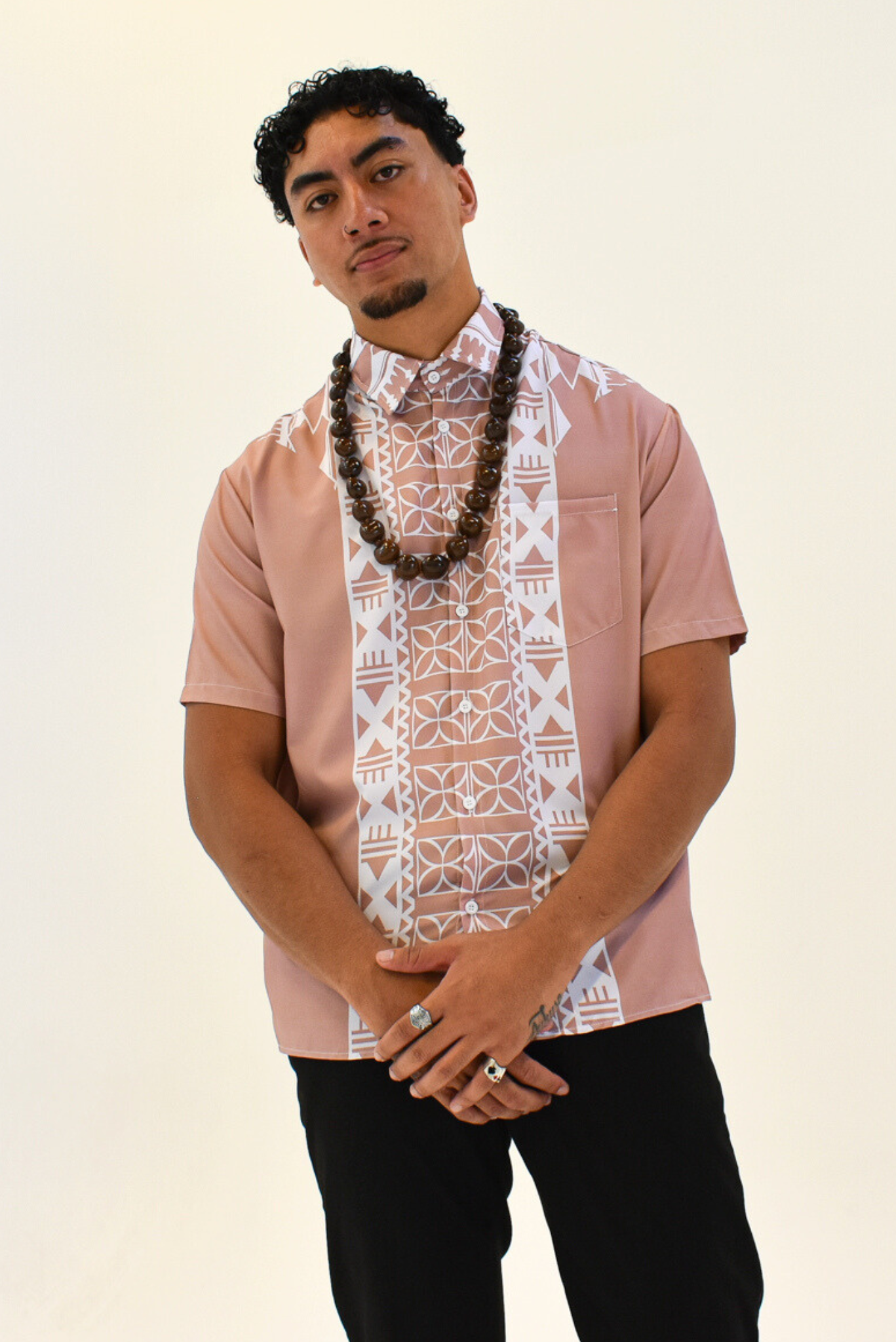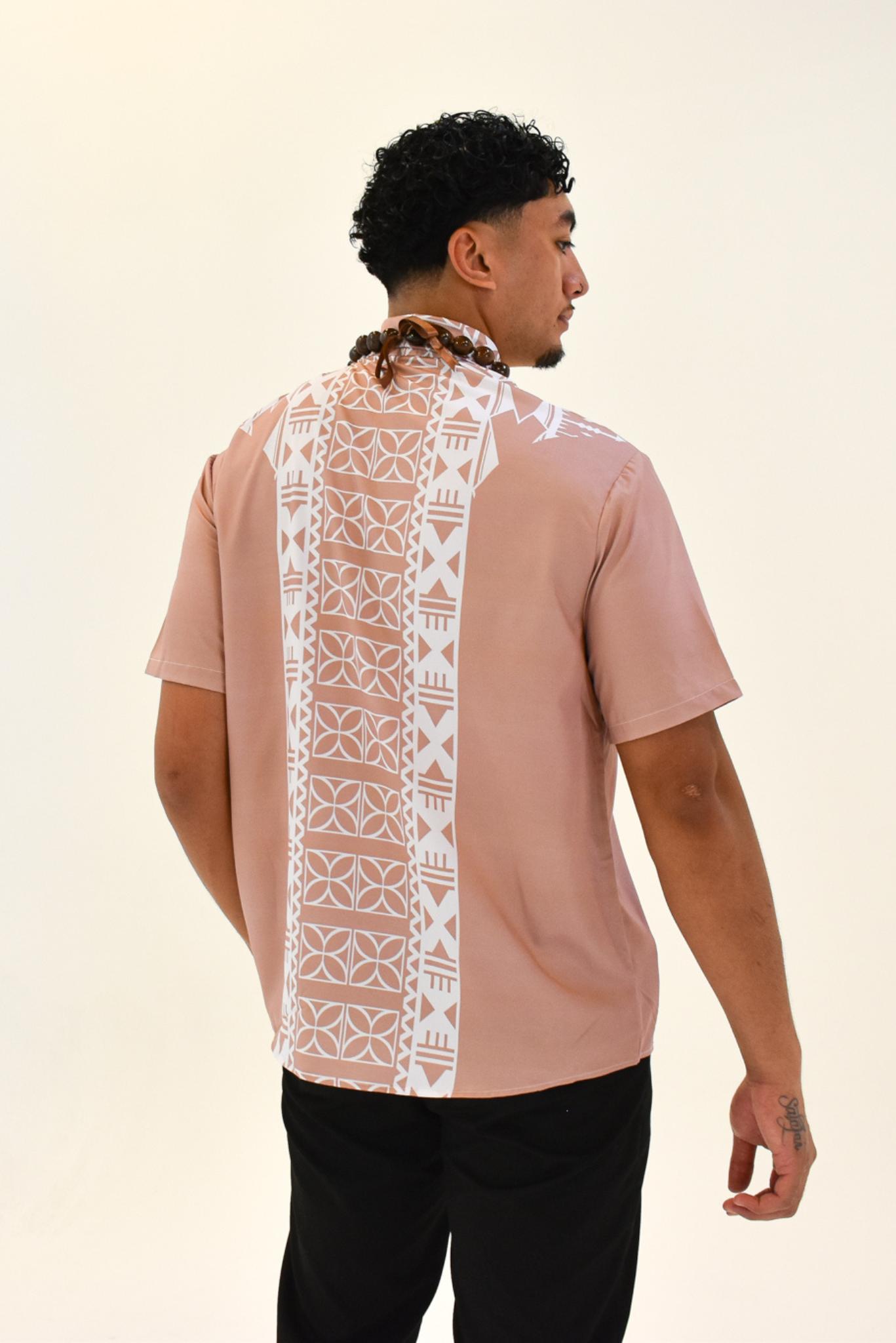 ESEKIA SHIRT - COLLARED BUTTON UP - ROSE BEIGE & WHITE