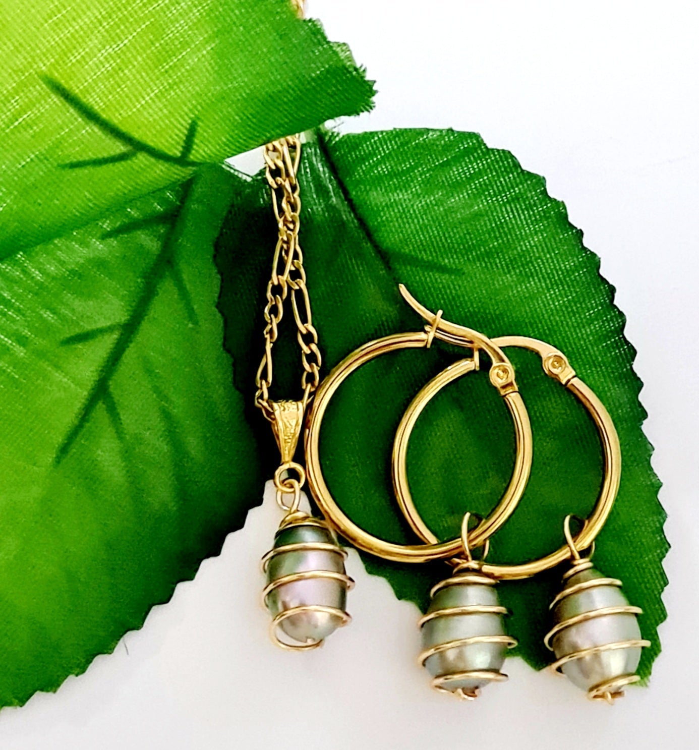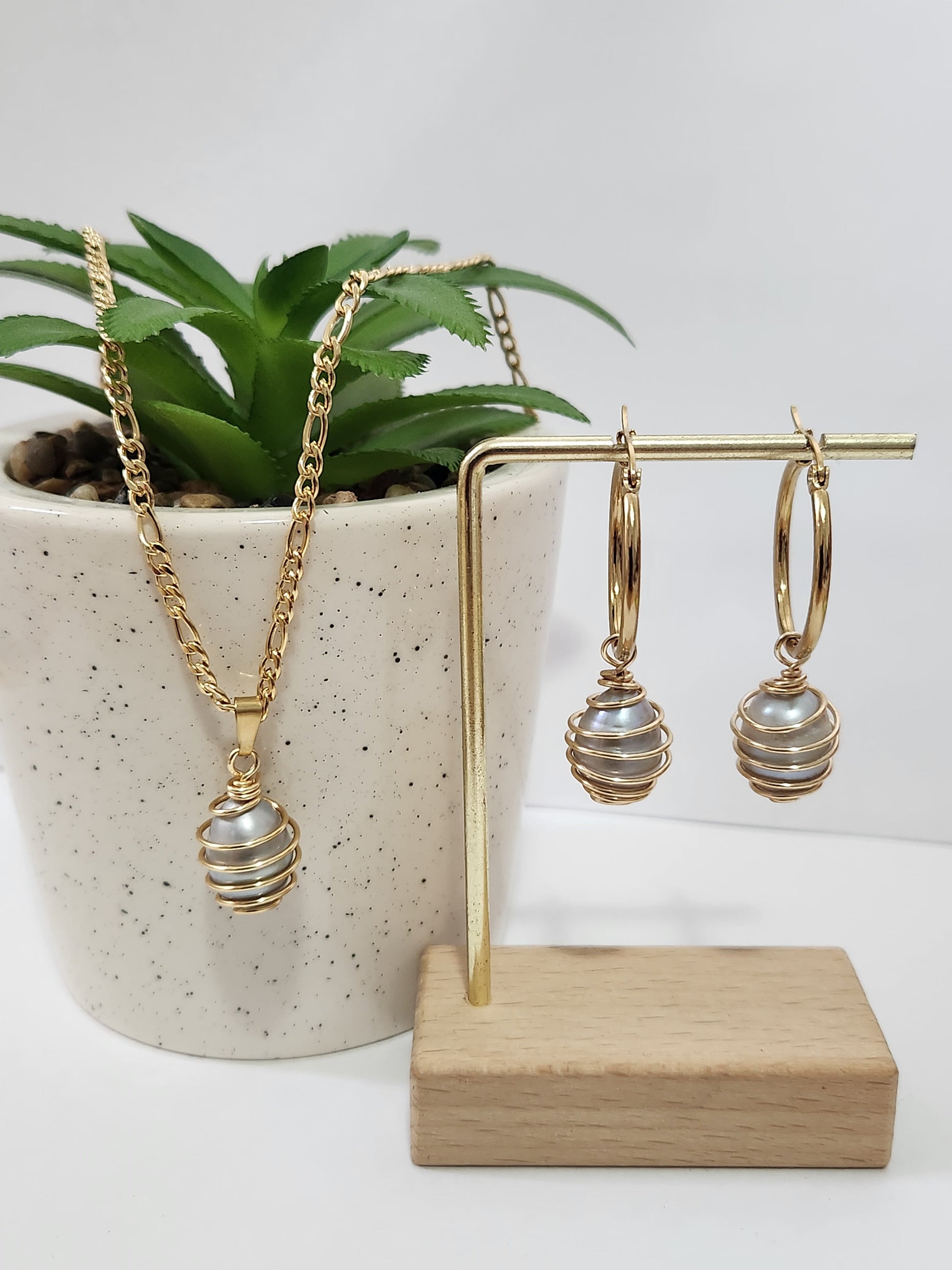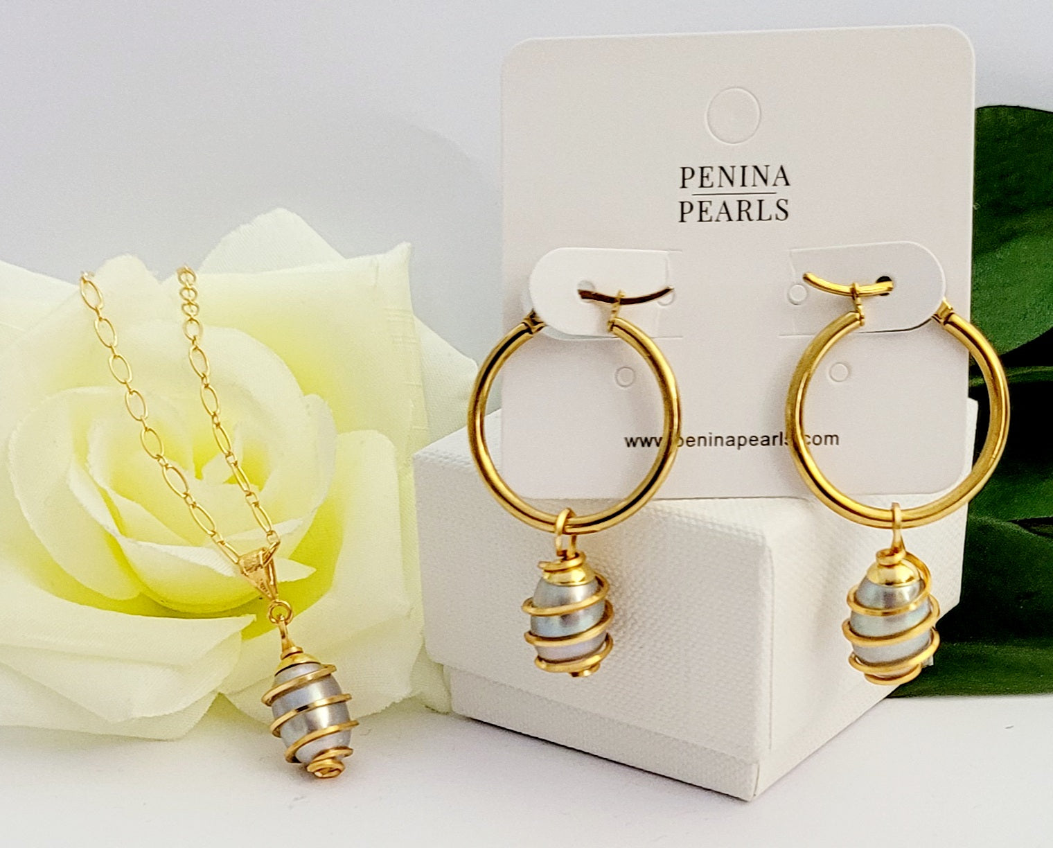 Evelyn set- Grey Freshwater Caged/Spiral Pearl's Set