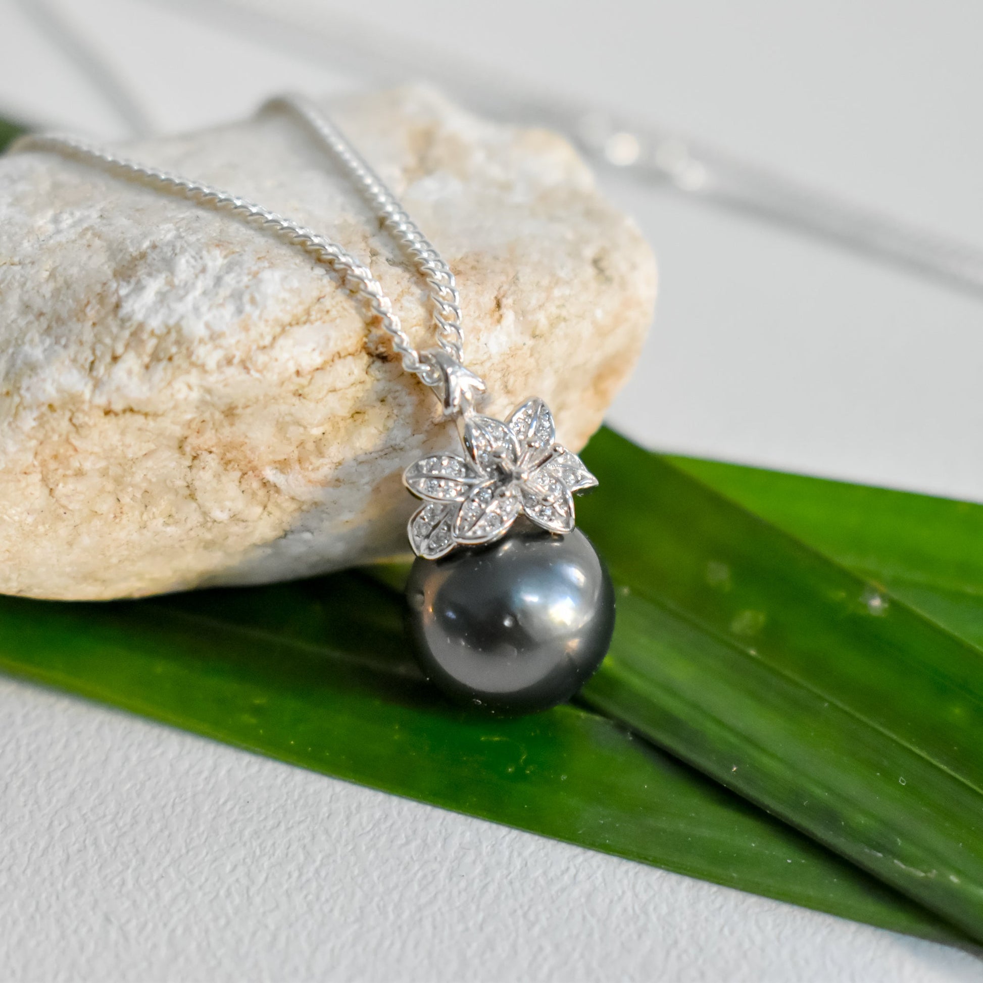 FLORAL TAHITIAN PENDANT (12-13mm) NECKLACE - 925 Sterling Silver