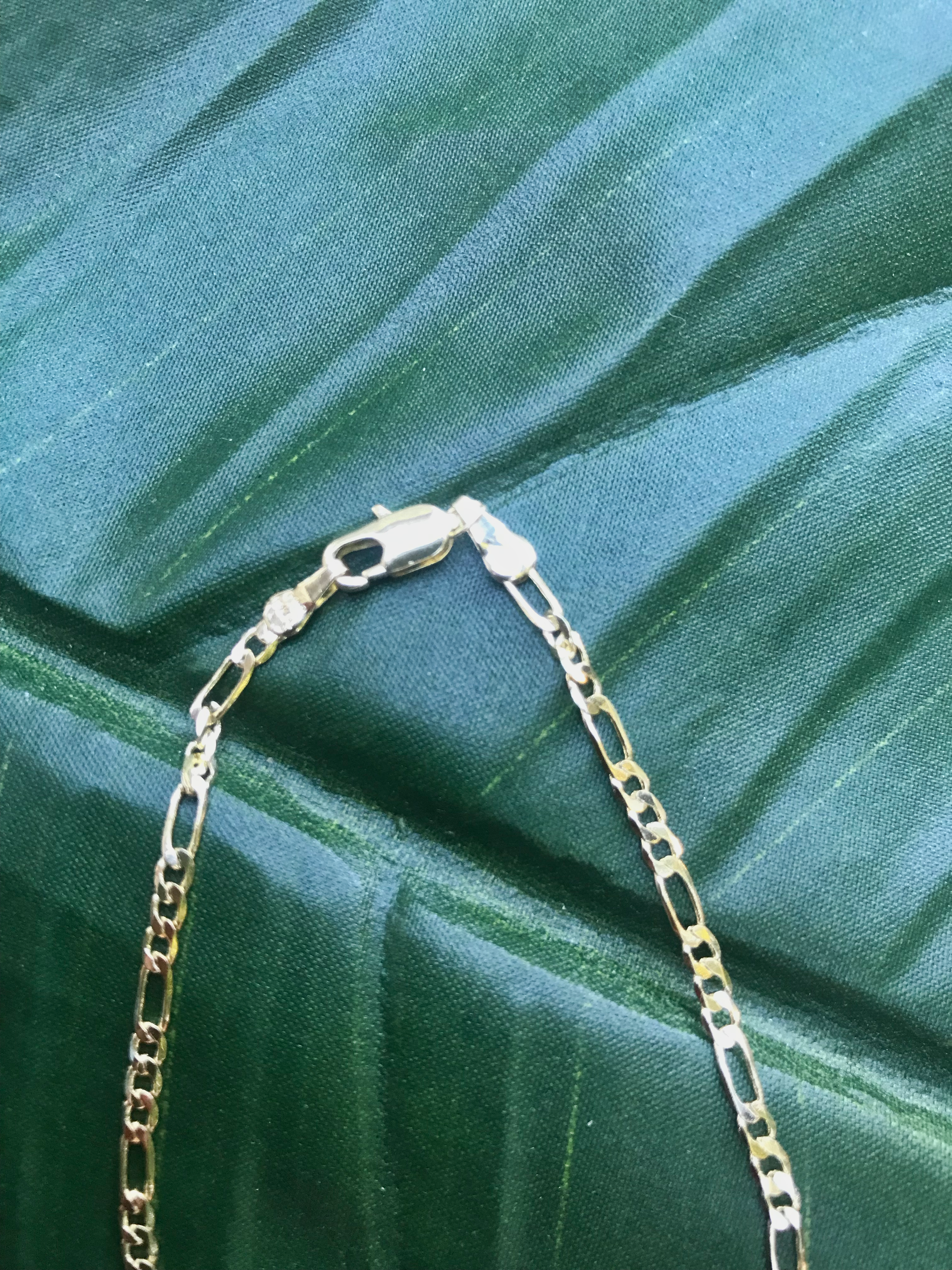 - 14k Gold-filled 2mm Figaro style chain necklace and pearl hoop earrings (24.5mm wide)