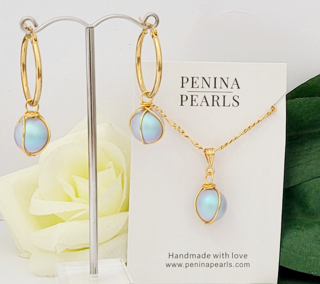 LILLY - Iridescent Blue Swarovski Caged Pearl Set