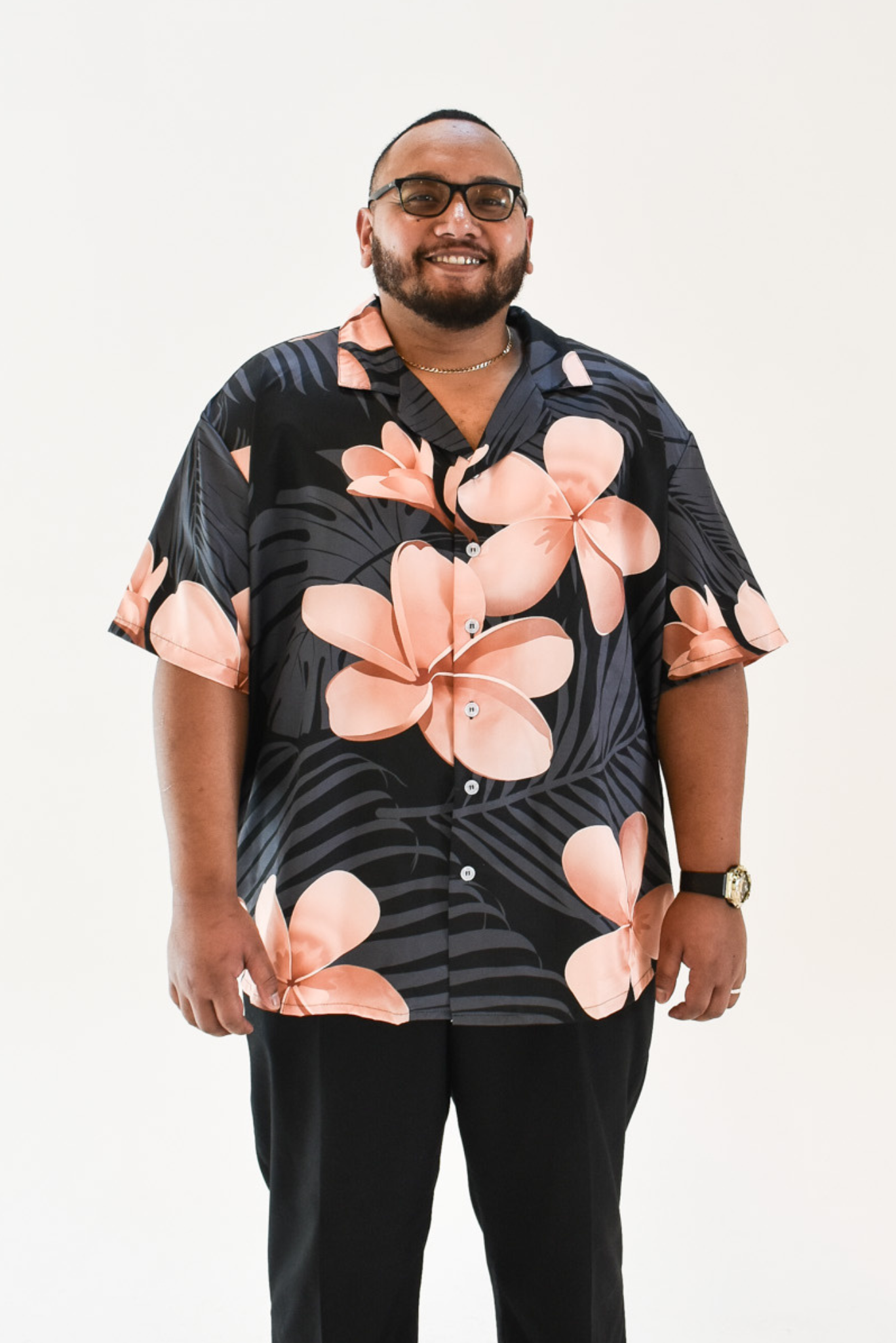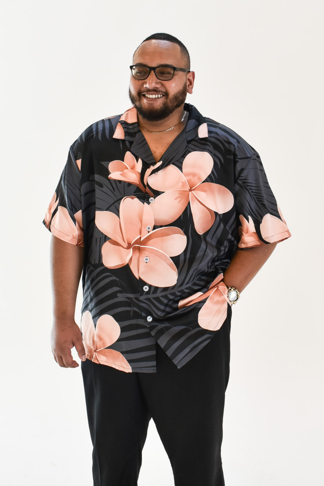 MALOSI SHIRT - COLLARED BUTTON UP SHIRT - BLACK & BROWN FLORAL PATTERN