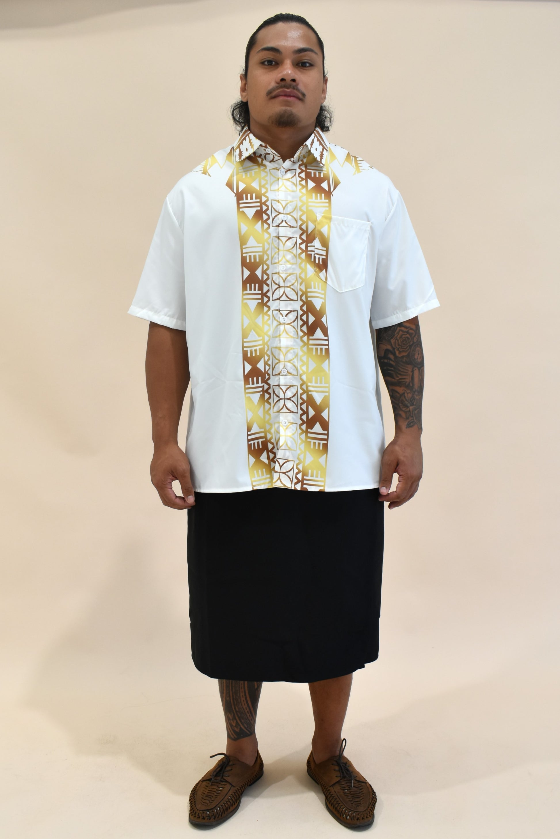 Ready for your next event. Now available to match with her in the HALTER NECK PULETASI - TWO PIECE OUTFIT - WHITE & GOLD