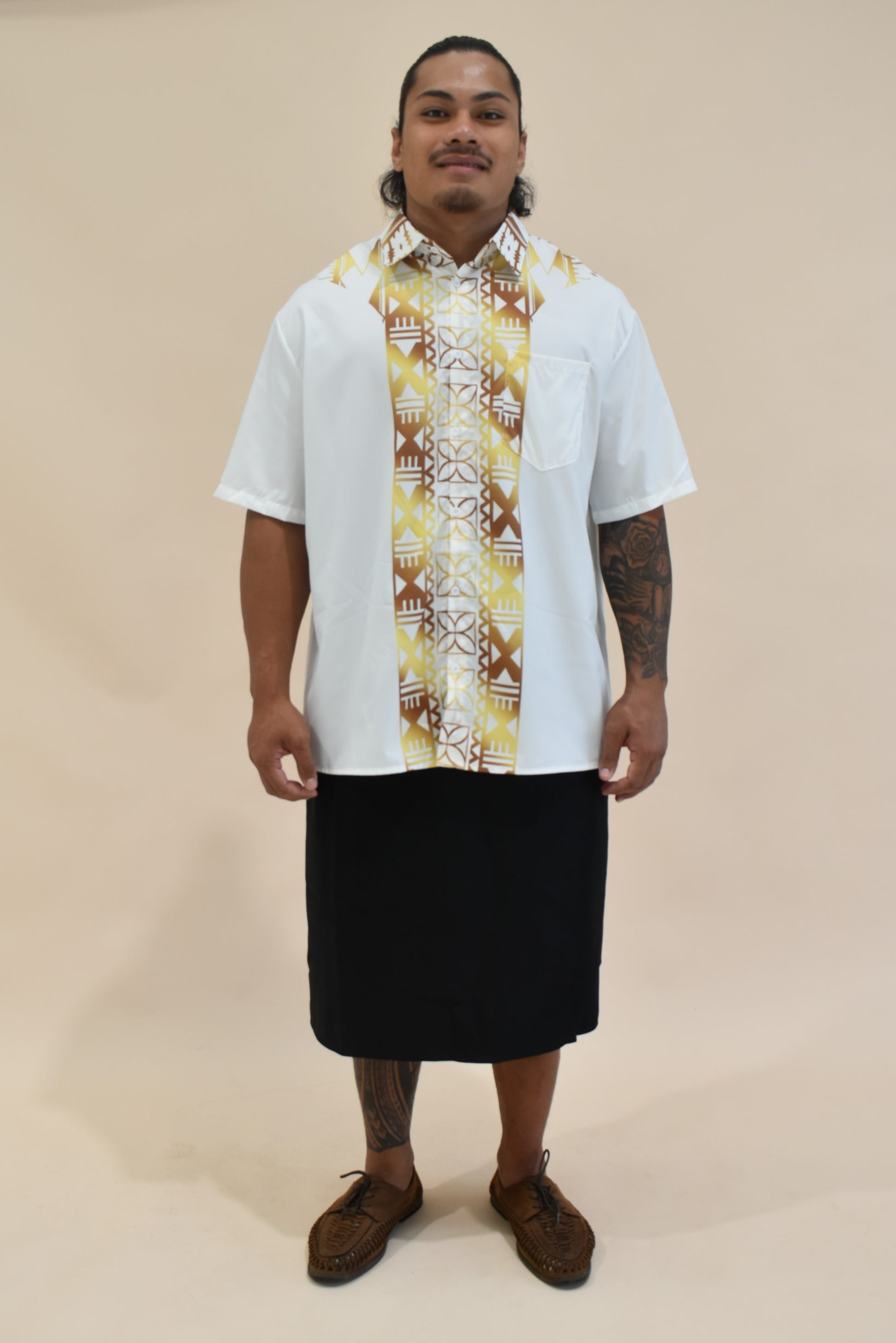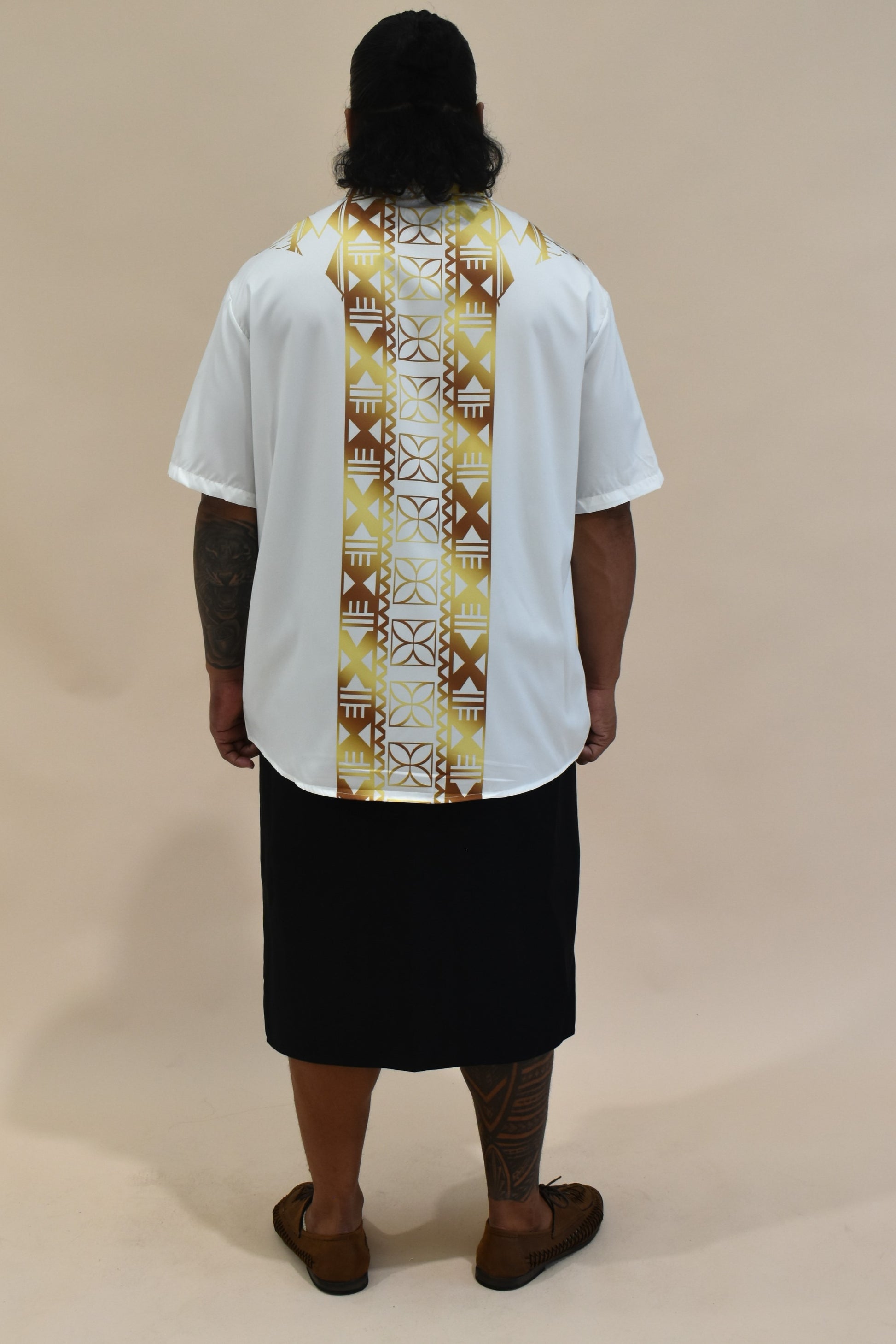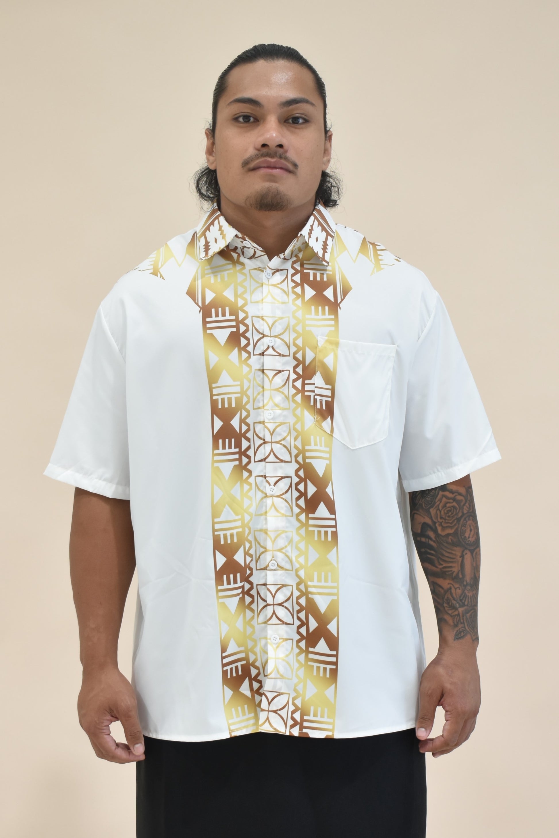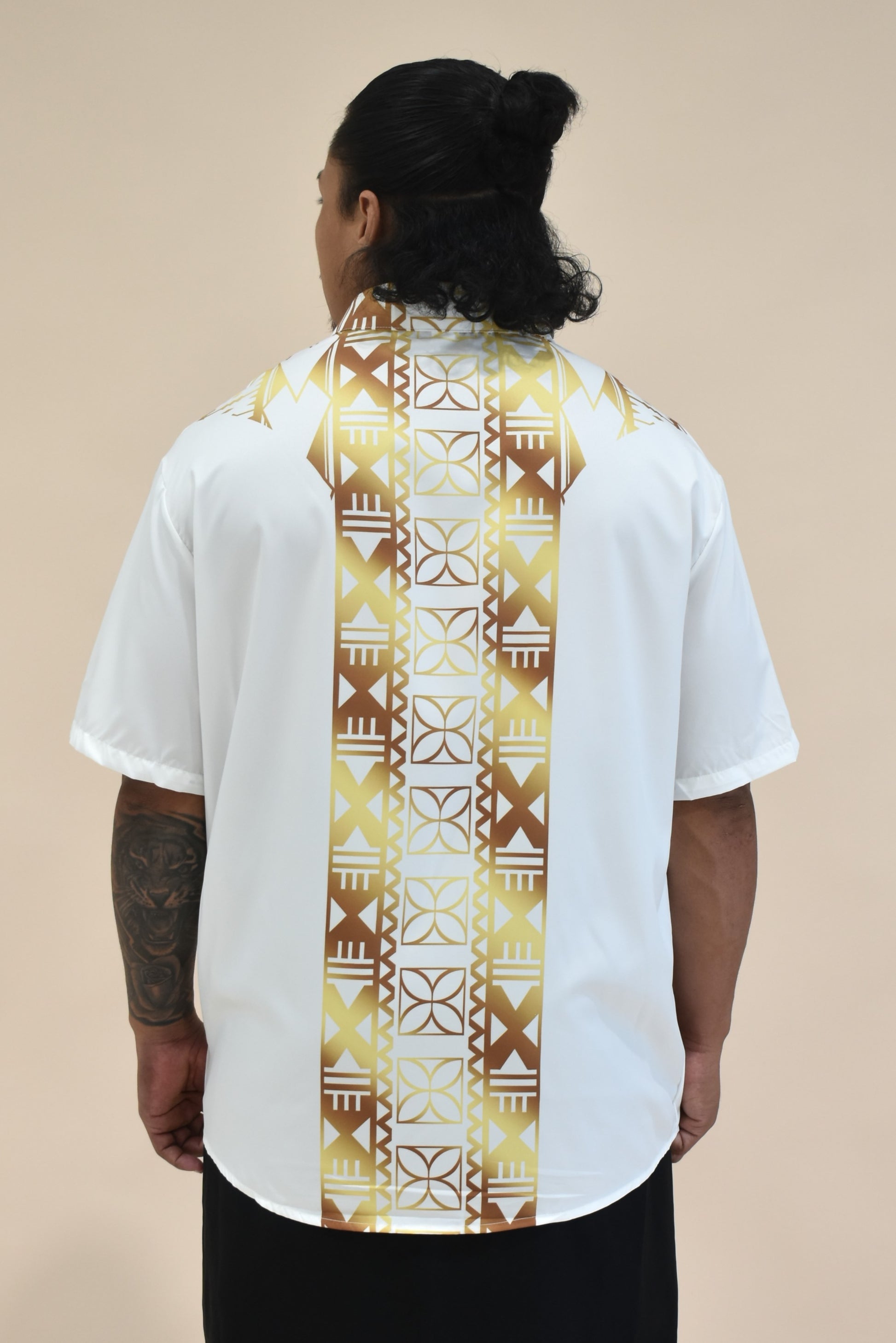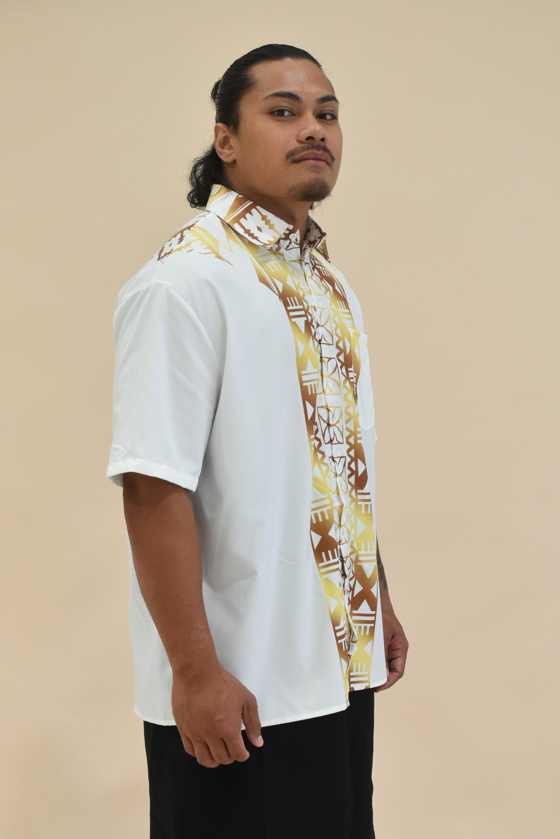 ESEKIA SHIRT - MENS SHIRT - COLLARED BUTTON UP - WHITE & GOLD