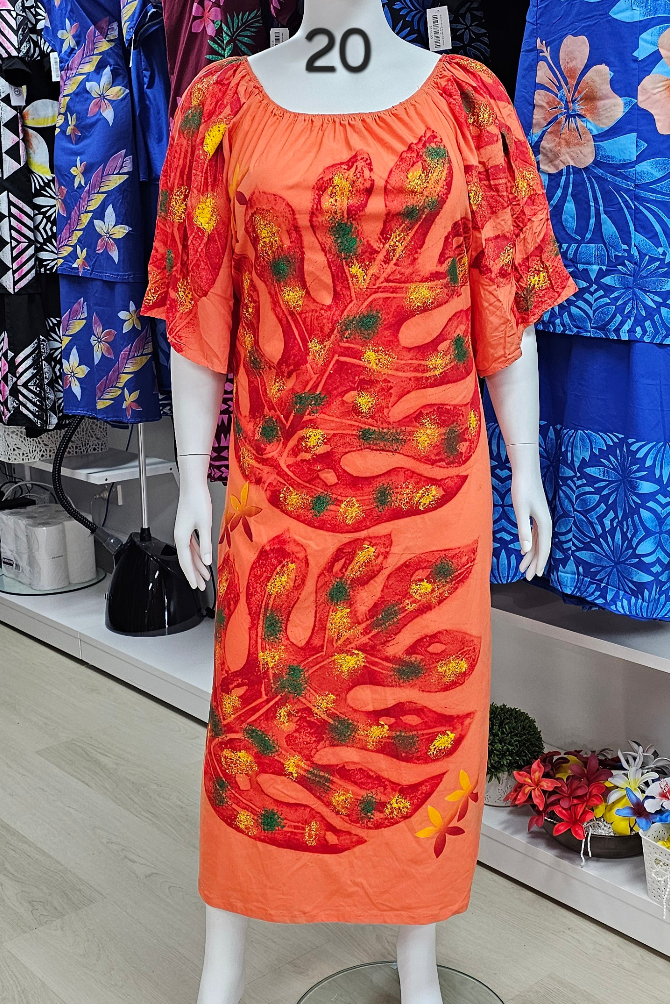 ORANGE CAPE SLEEVE ISLAND DRESS - SIZE 20