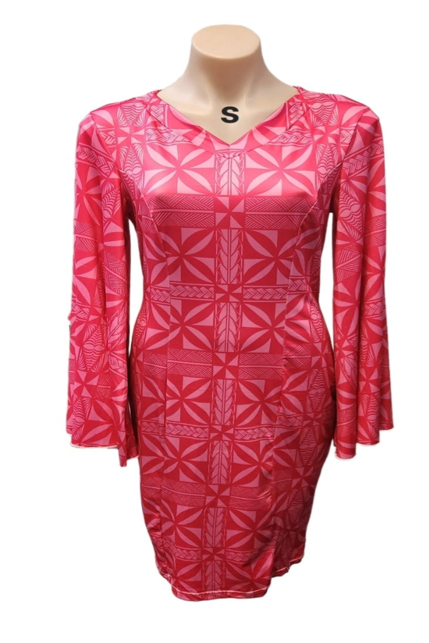 PINK LONG SLEEVE ISLAND TRIBAL ONE-OFF DRESS -SIZE SMALL