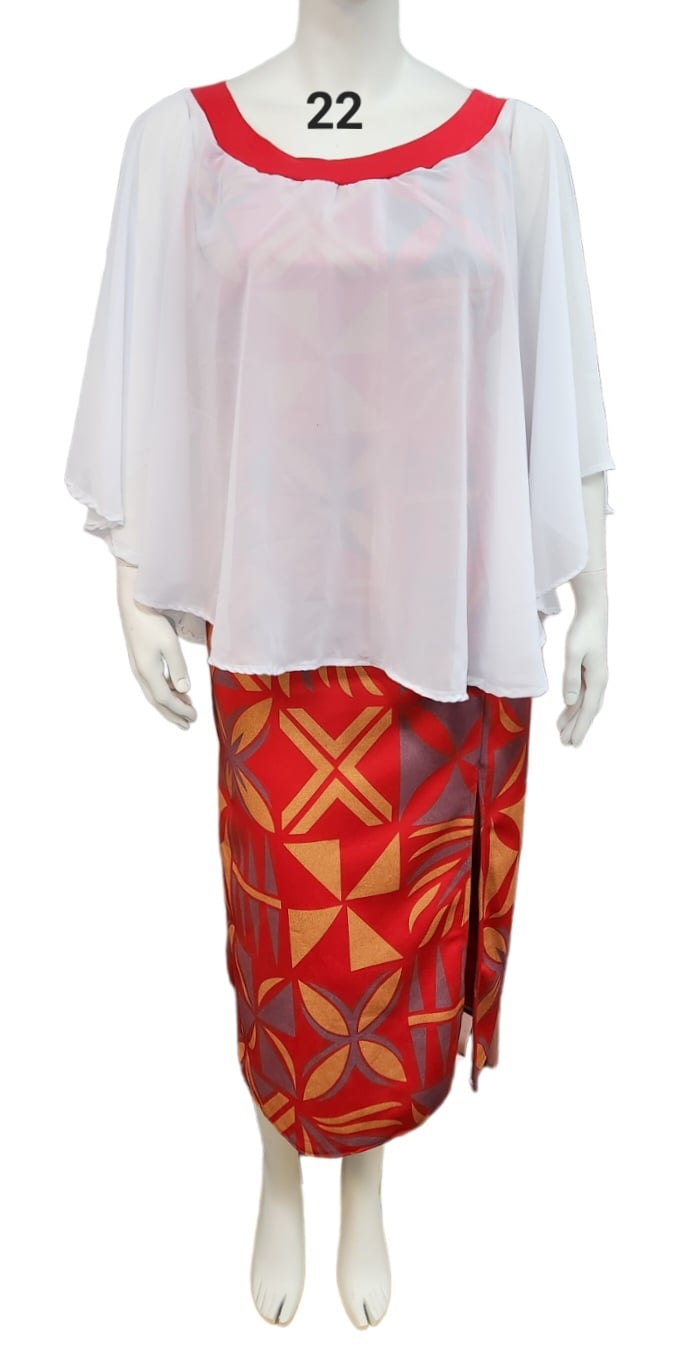 RED ISLAND DRESS WITH WHITE CHIFFON - SIZE 22