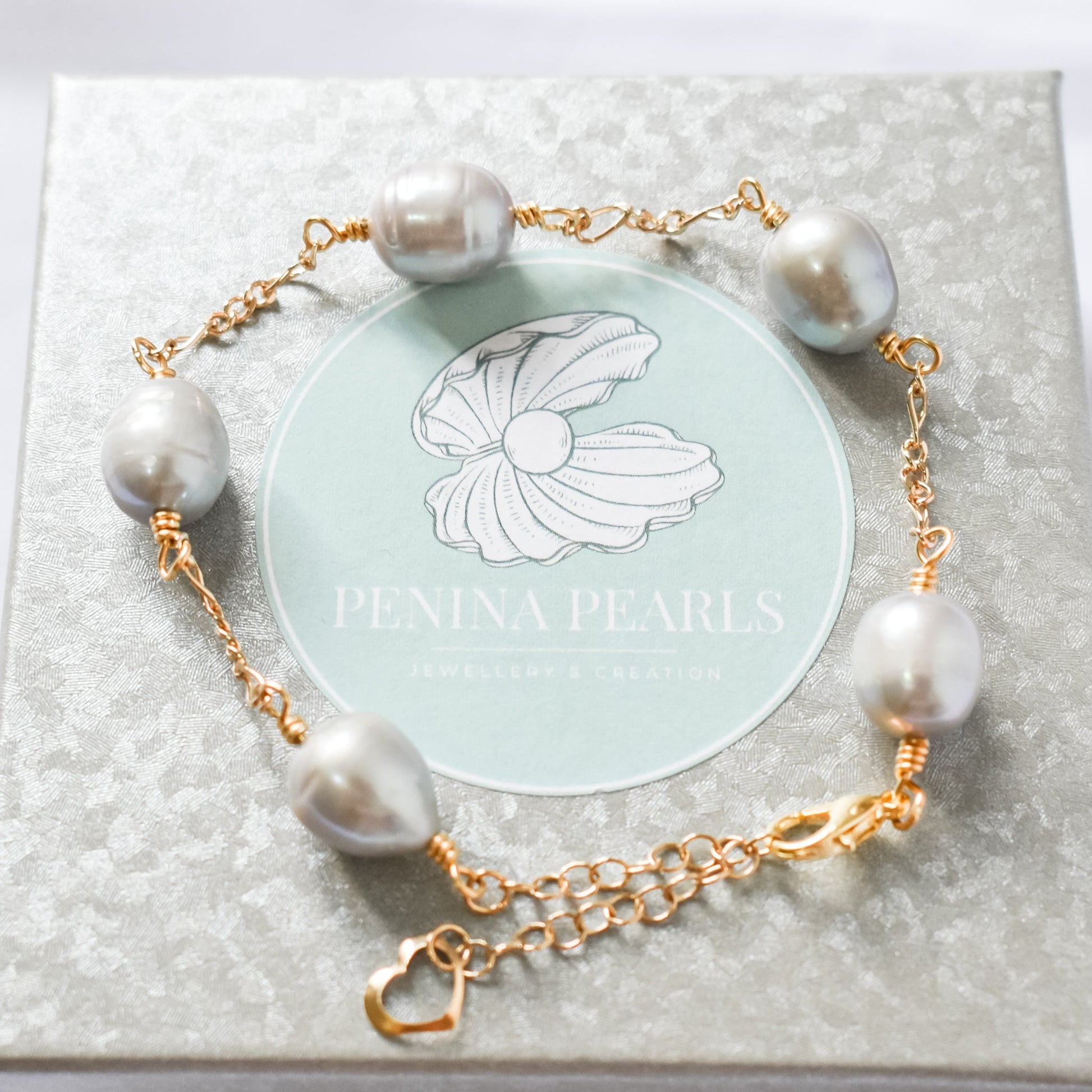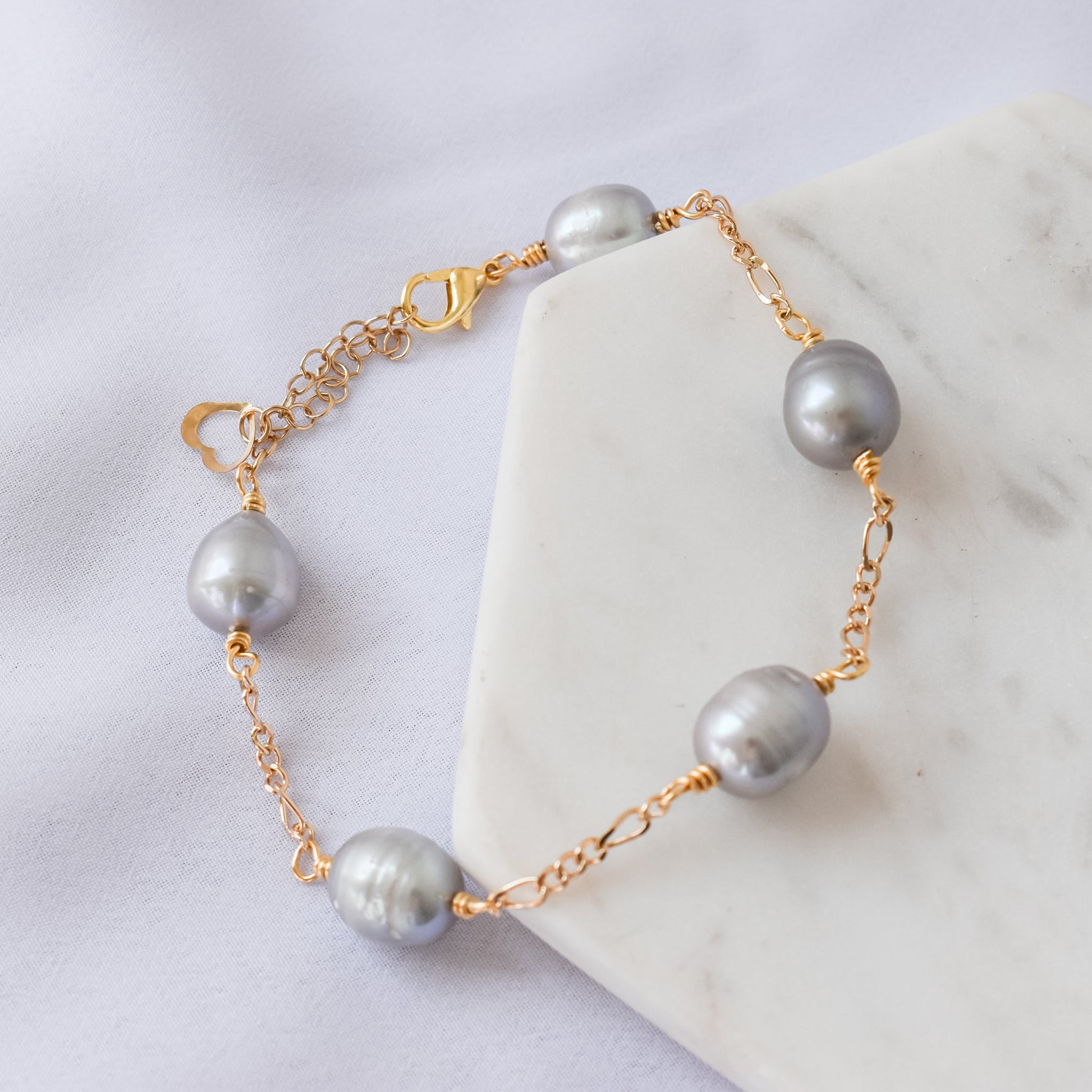 Sylvia pearl bracelet features our natural freshwater grey pearls that is perfect for a woman at any stage of their life. This is perfect for special occasions and more.