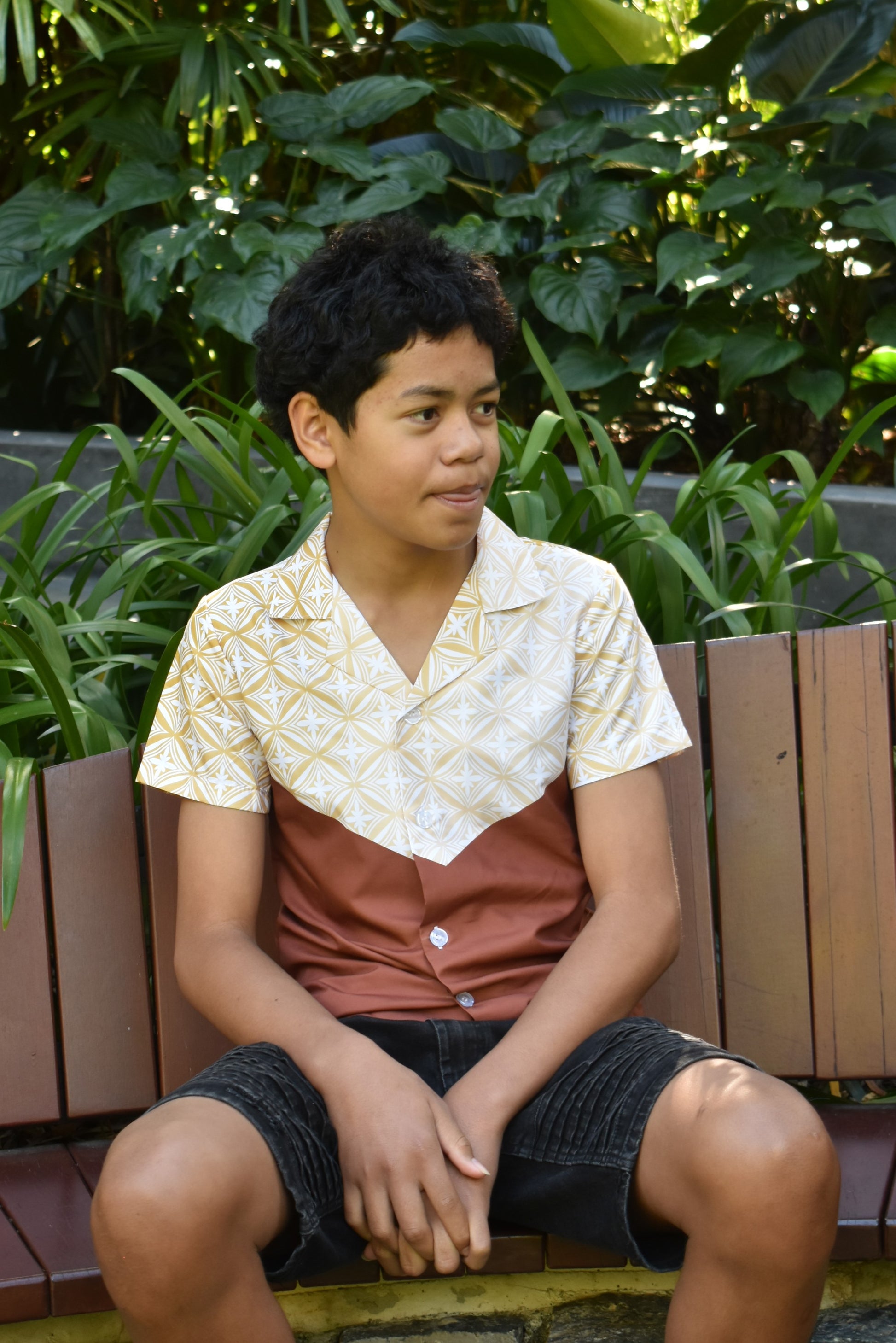 MAKAIO BOY'S SHIRT - CREAM & BROWN