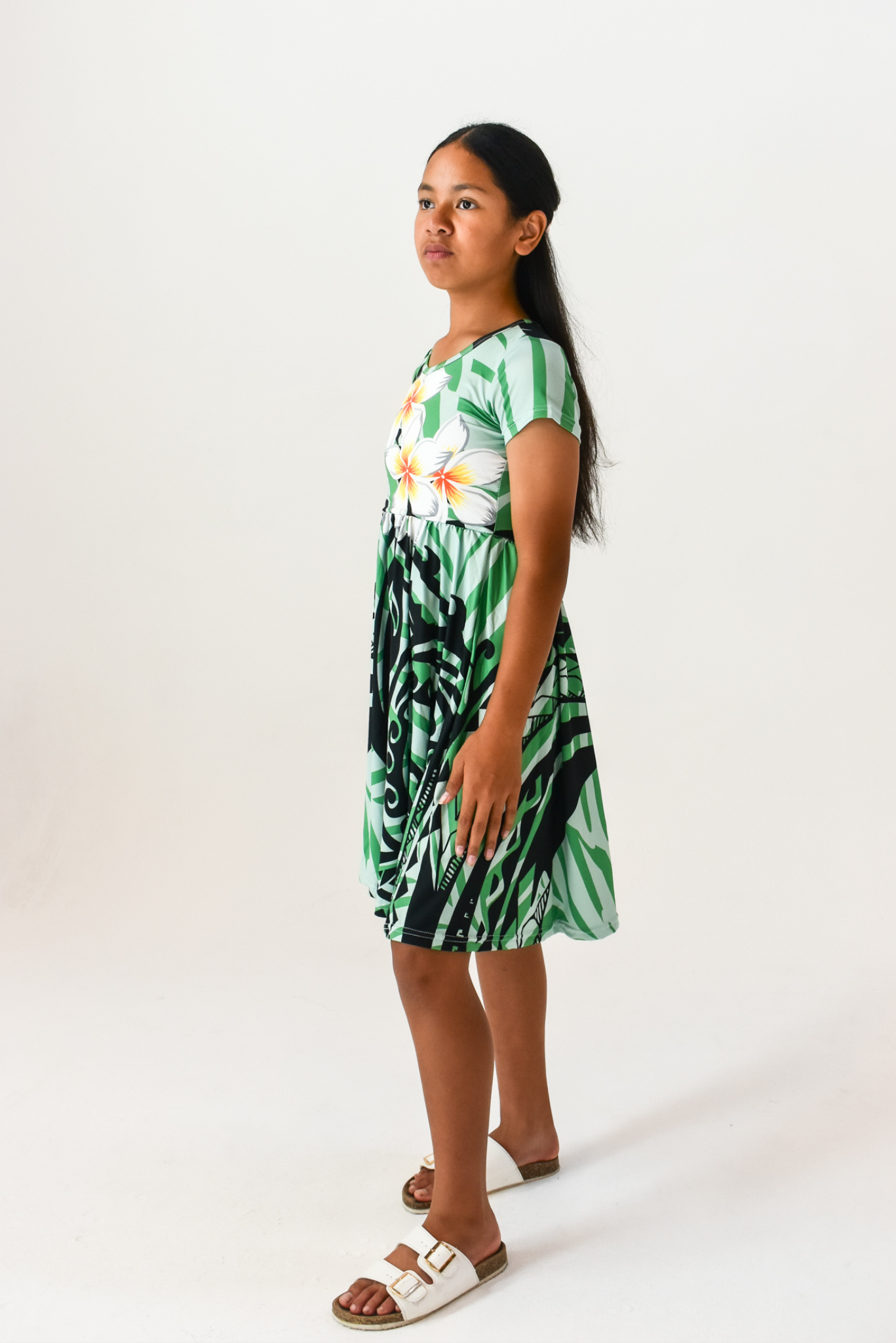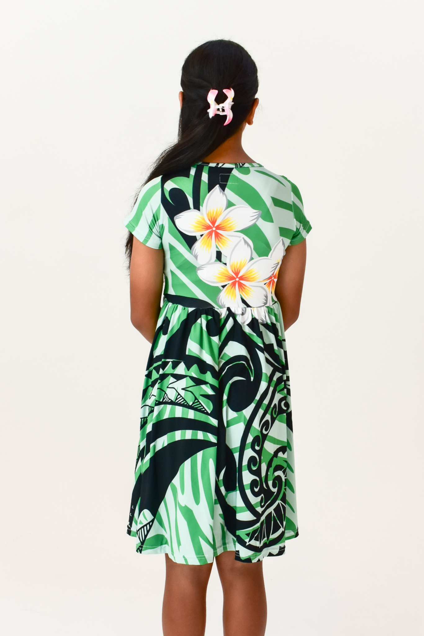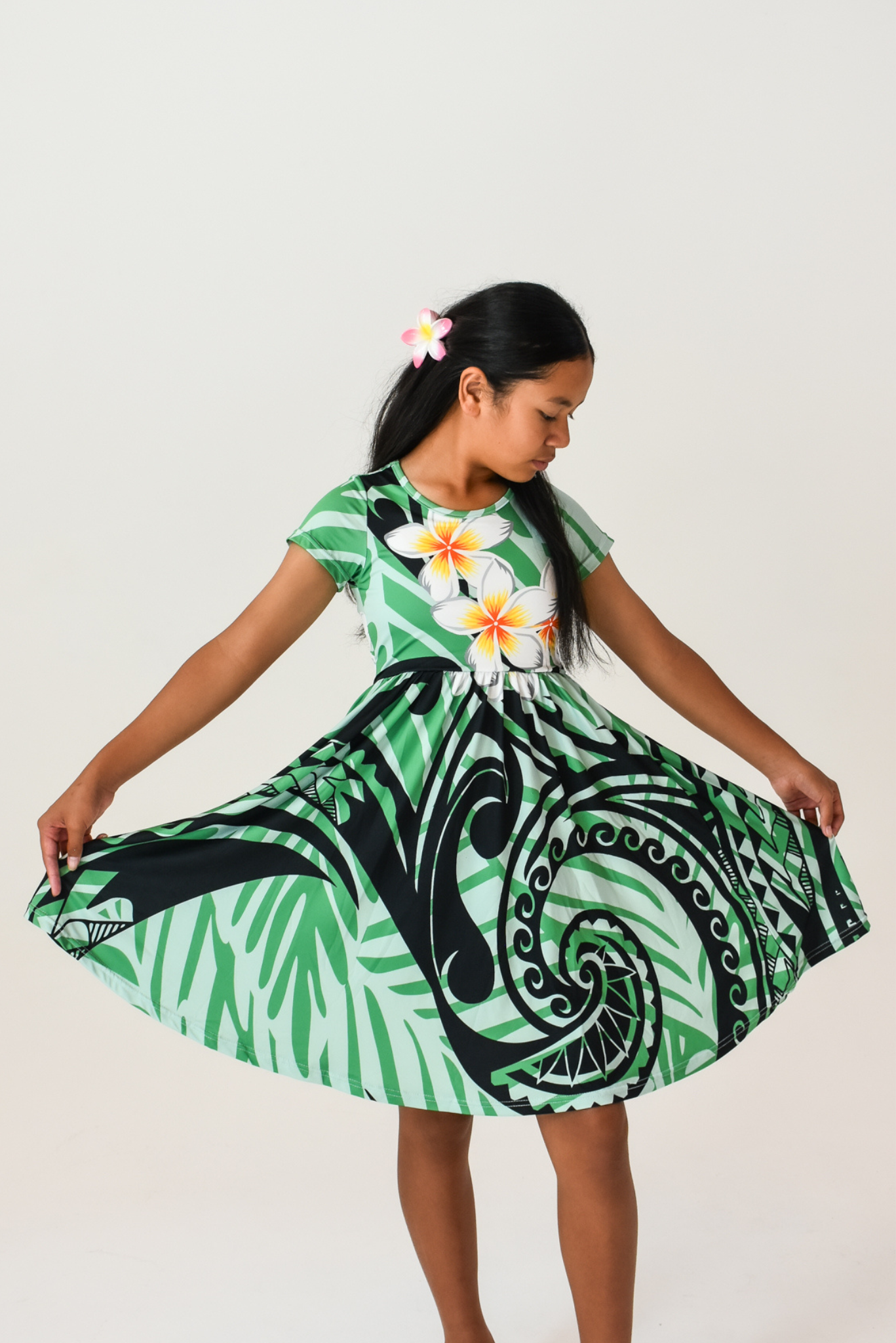 pona va‘ine kofu ofu green girl dress toddler dress youth dress