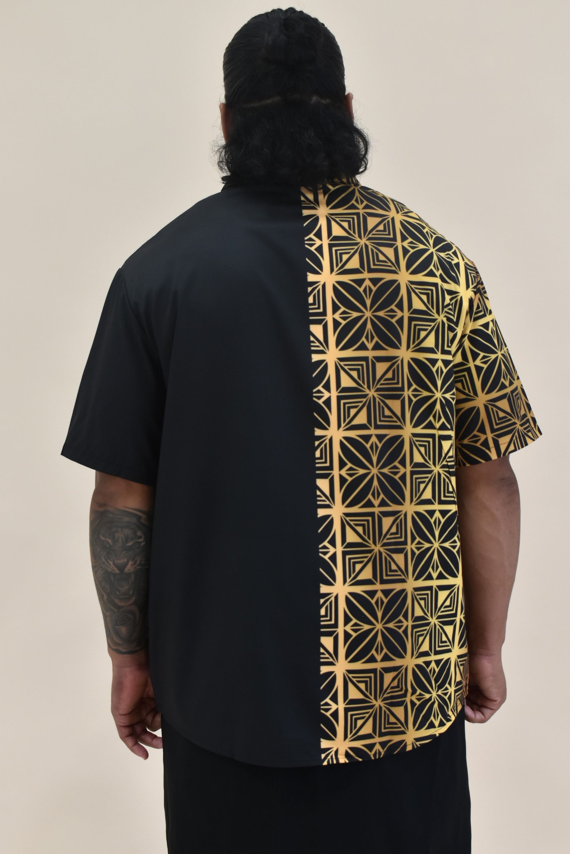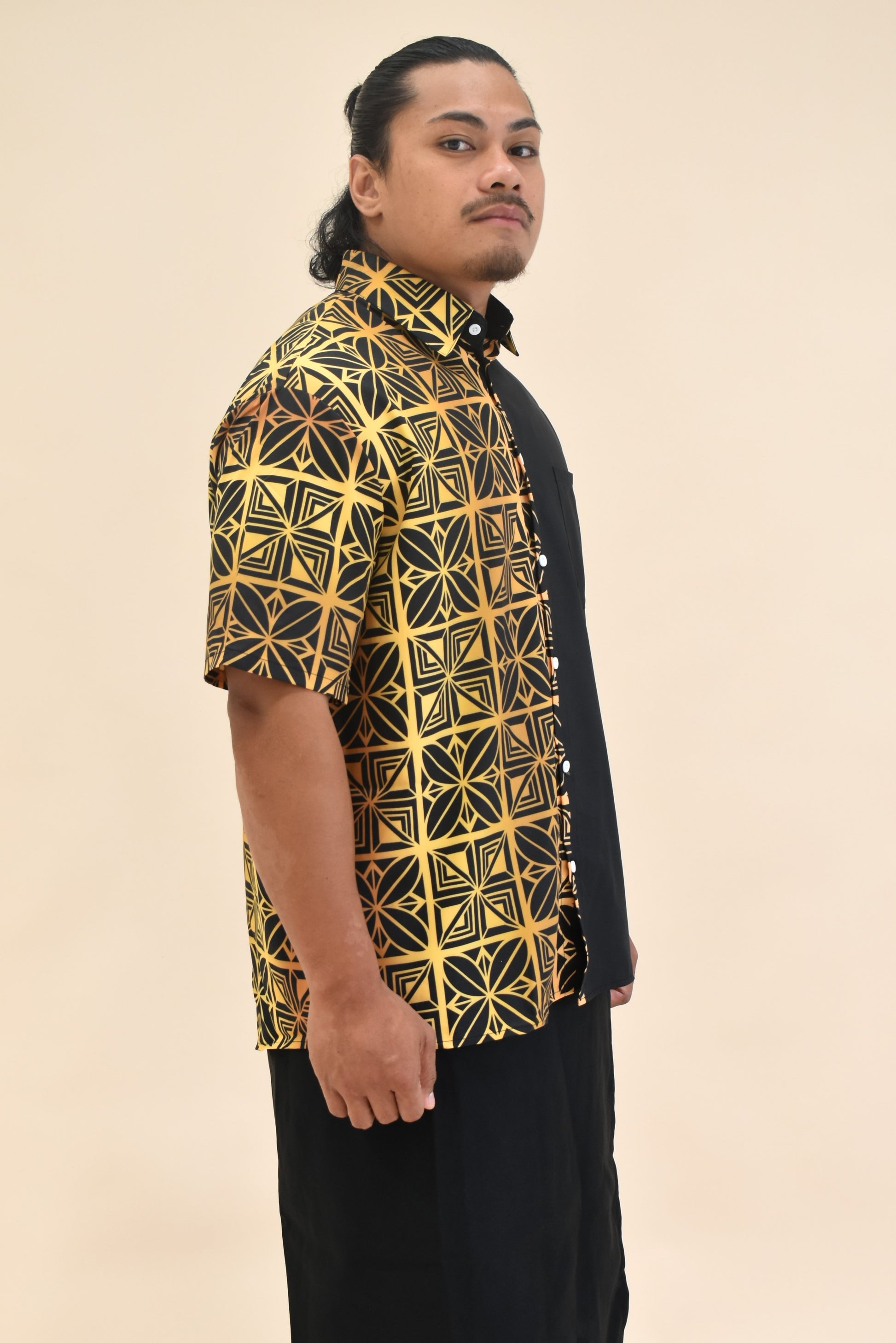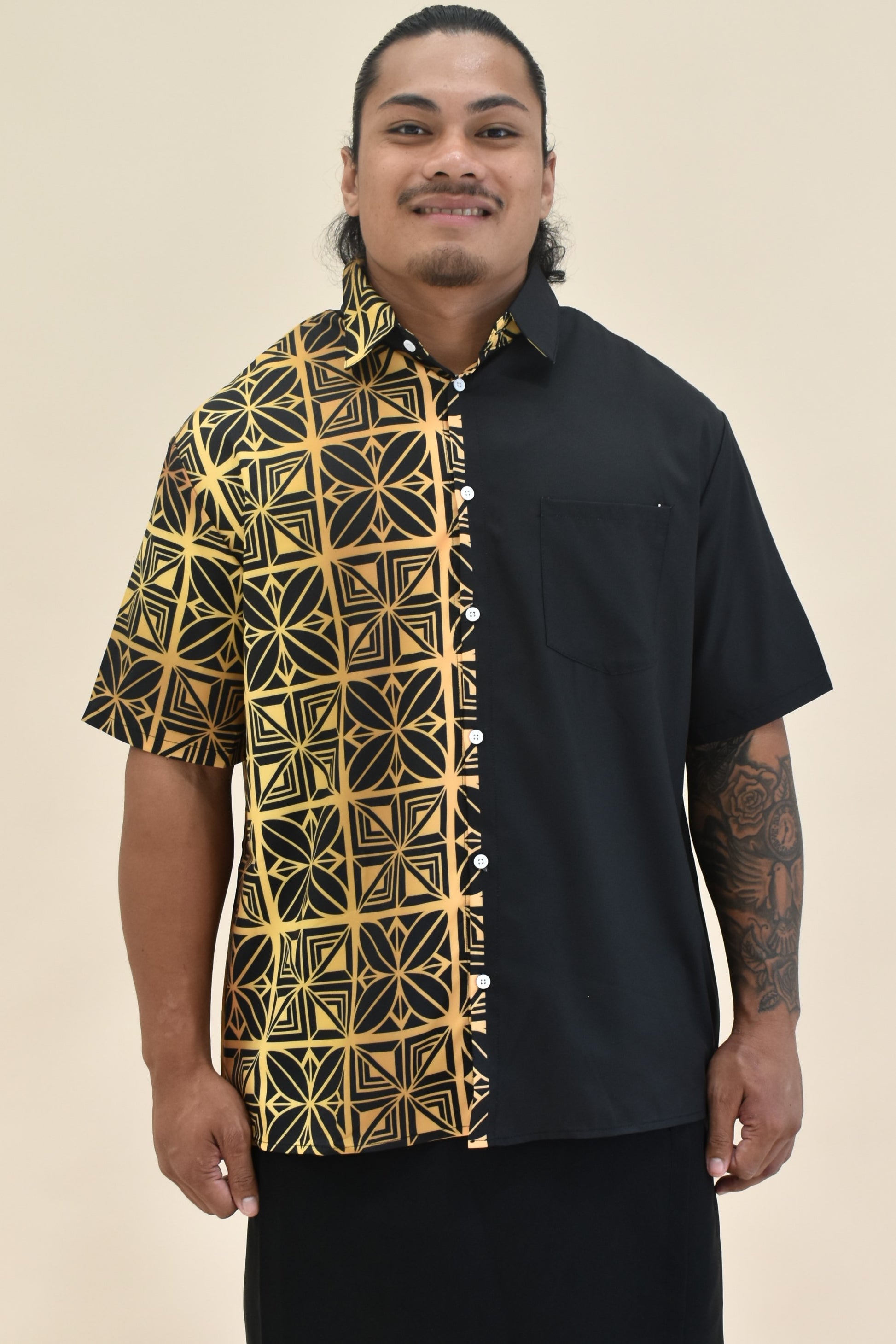 GOLD TIARE- MENS SHIRT - COLLARED BUTTON UP - GOLD & BLACK