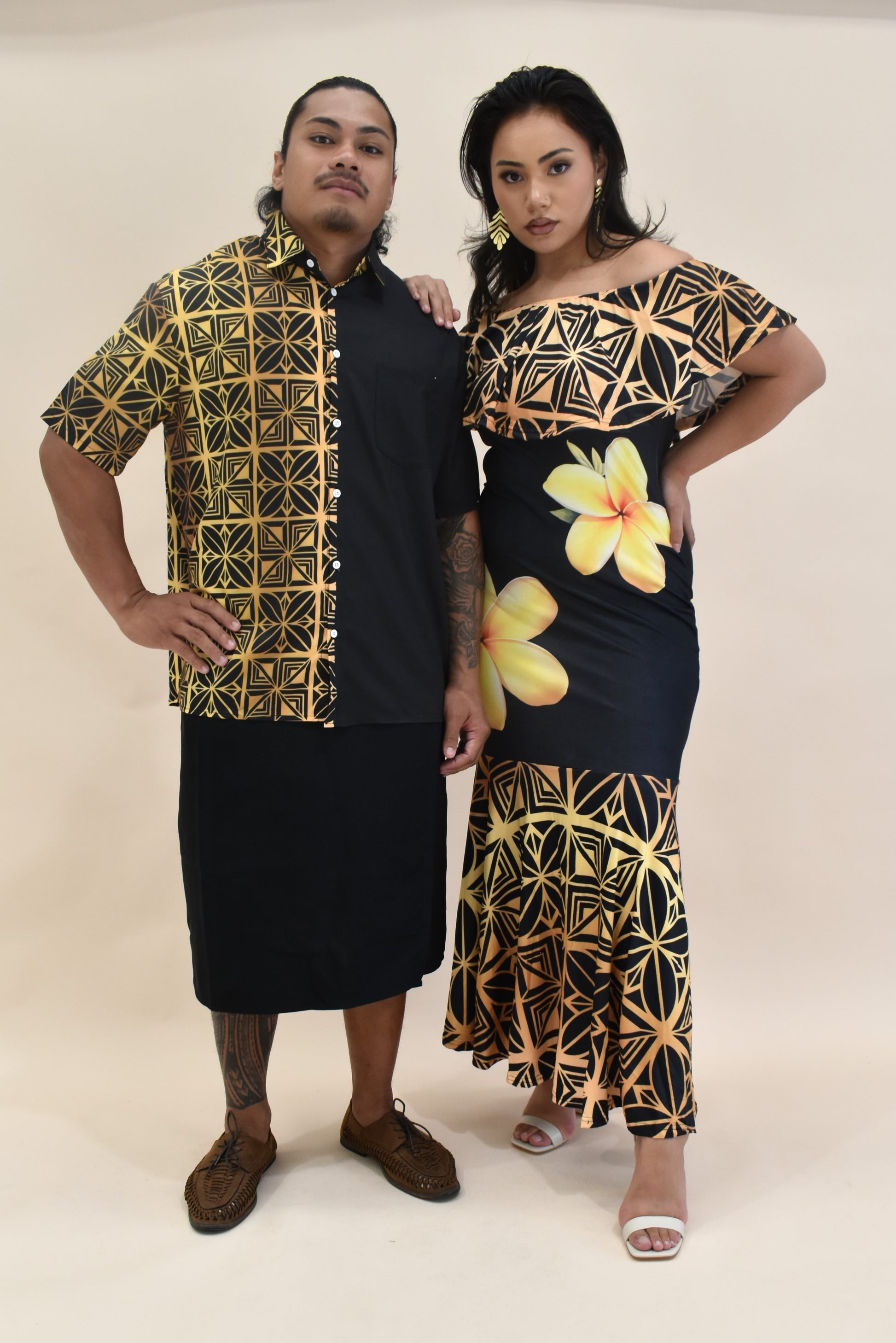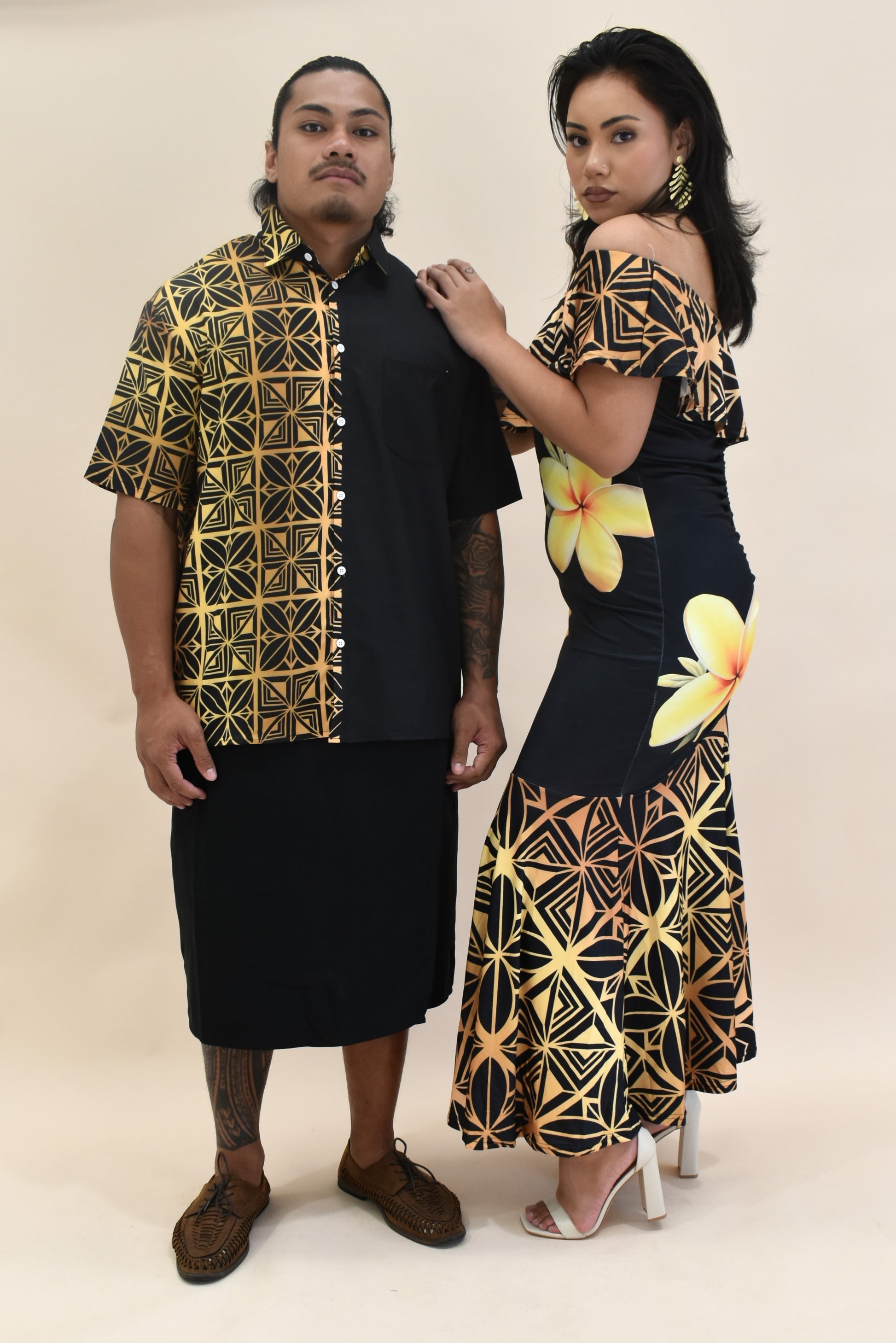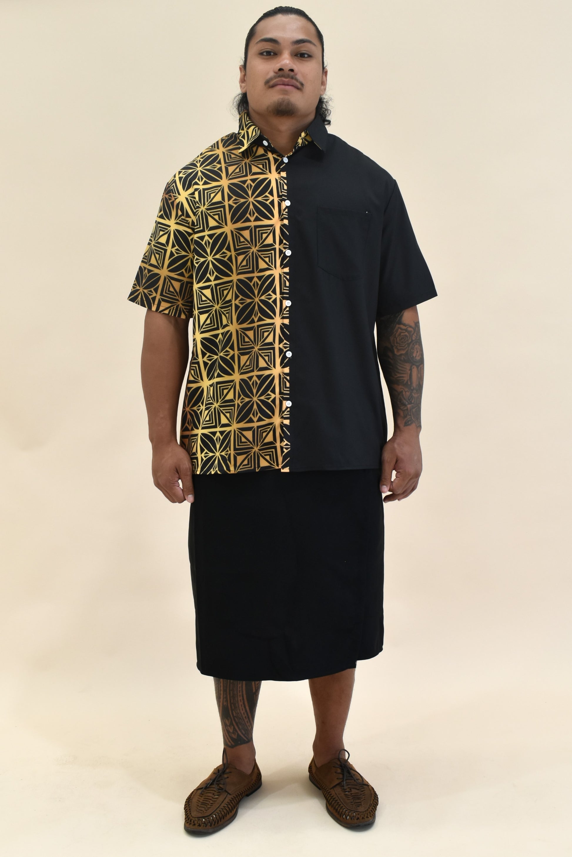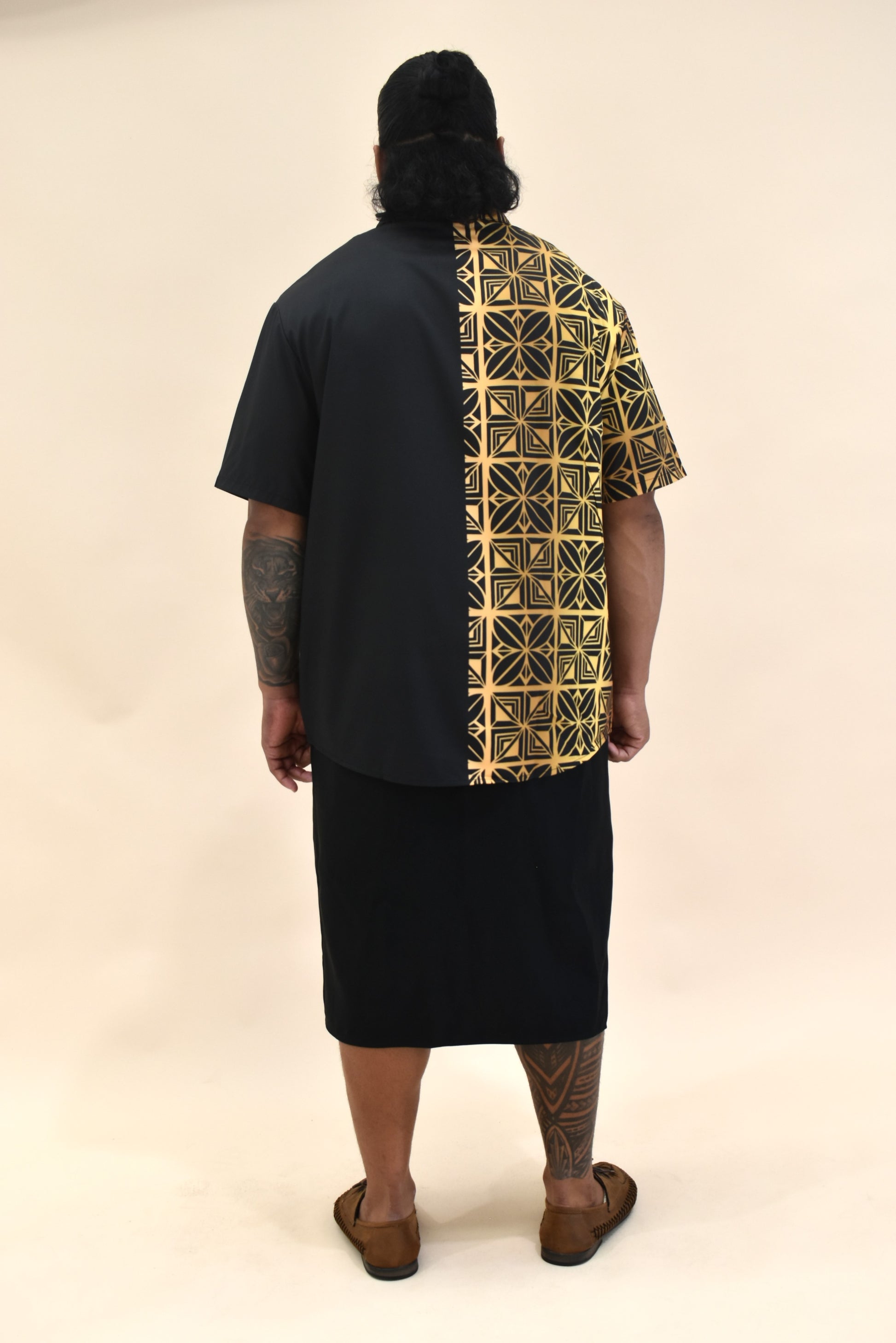 GOLD TIARE- MENS SHIRT - COLLARED BUTTON UP - GOLD & BLACK