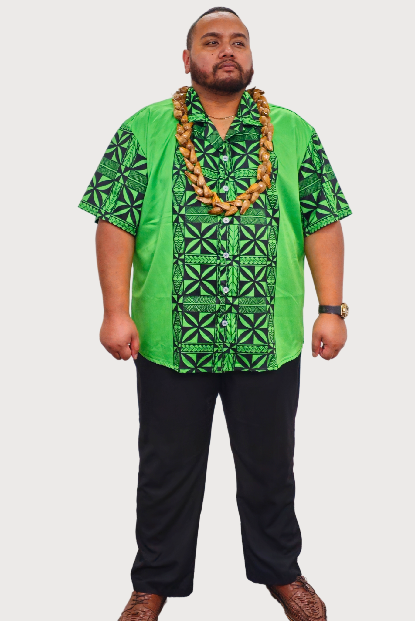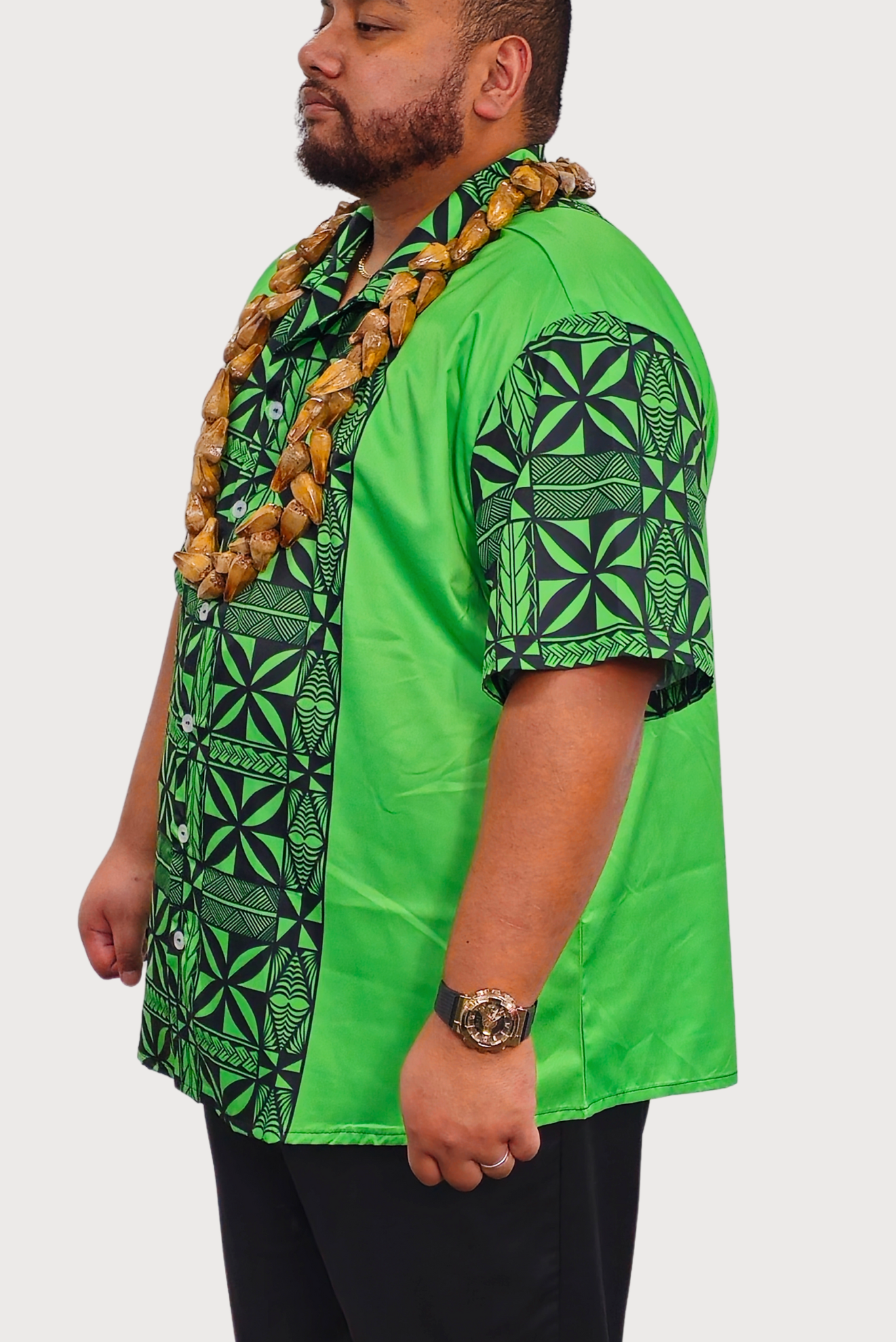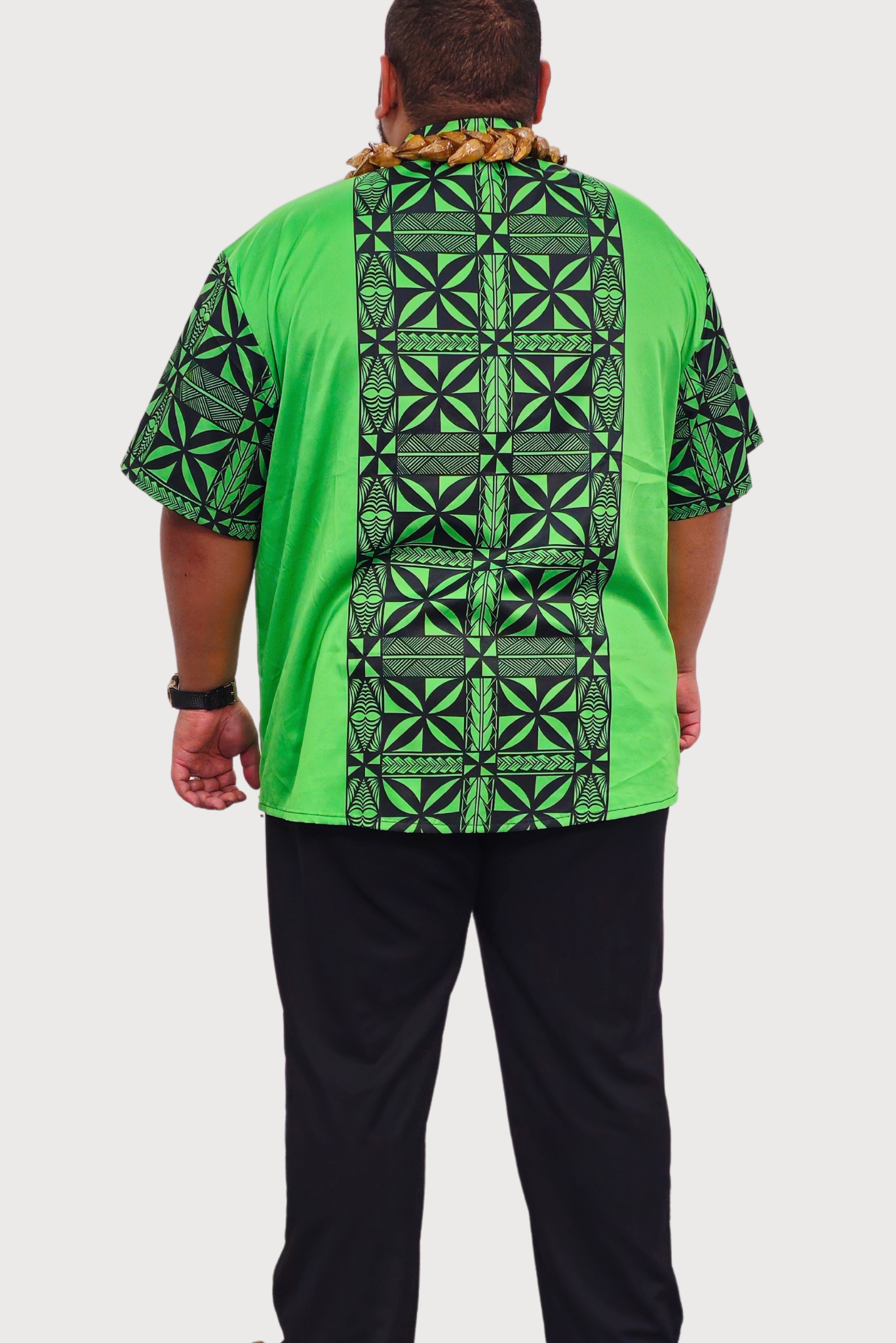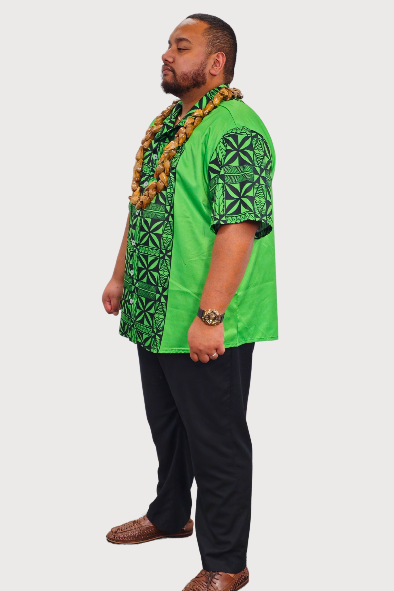 HOLMES MENS SHIRT - COLLARED BUTTON V NECK - BLACK & GREEN