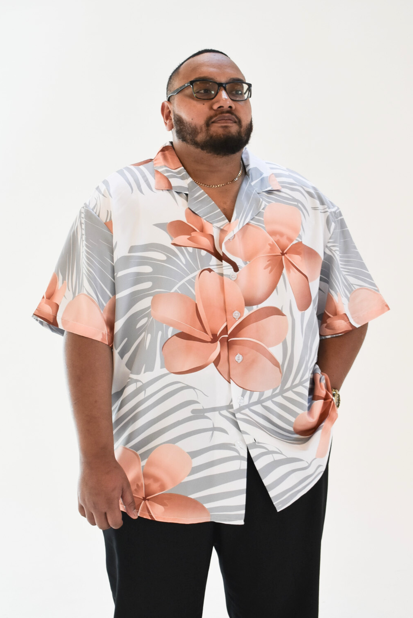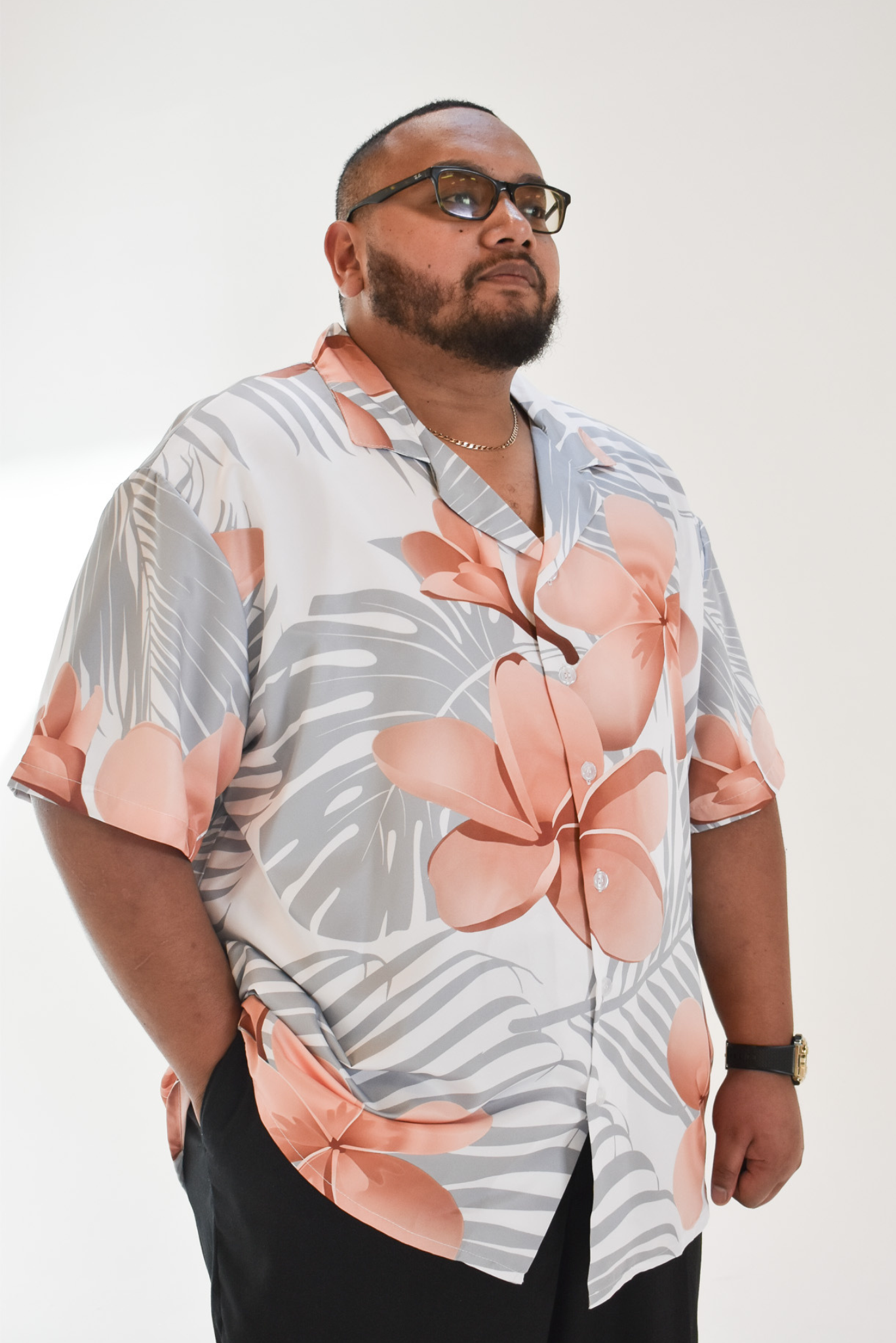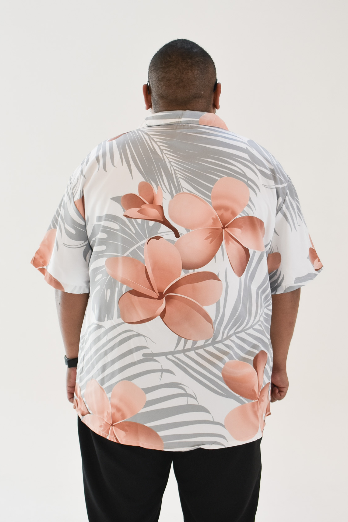 MALOSI SHIRT - COLLARED BUTTON UP SHIRT - WHITE & BROWN FLORAL PATTERN