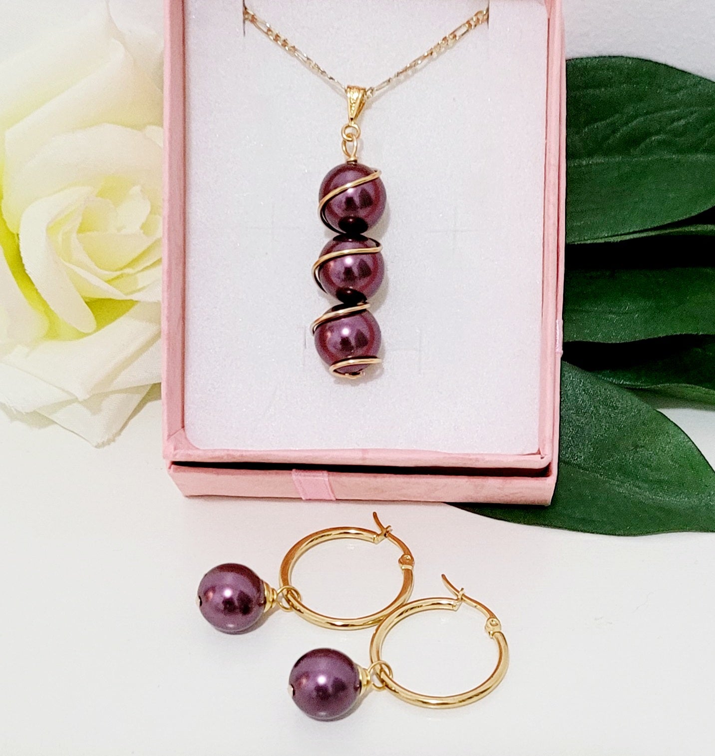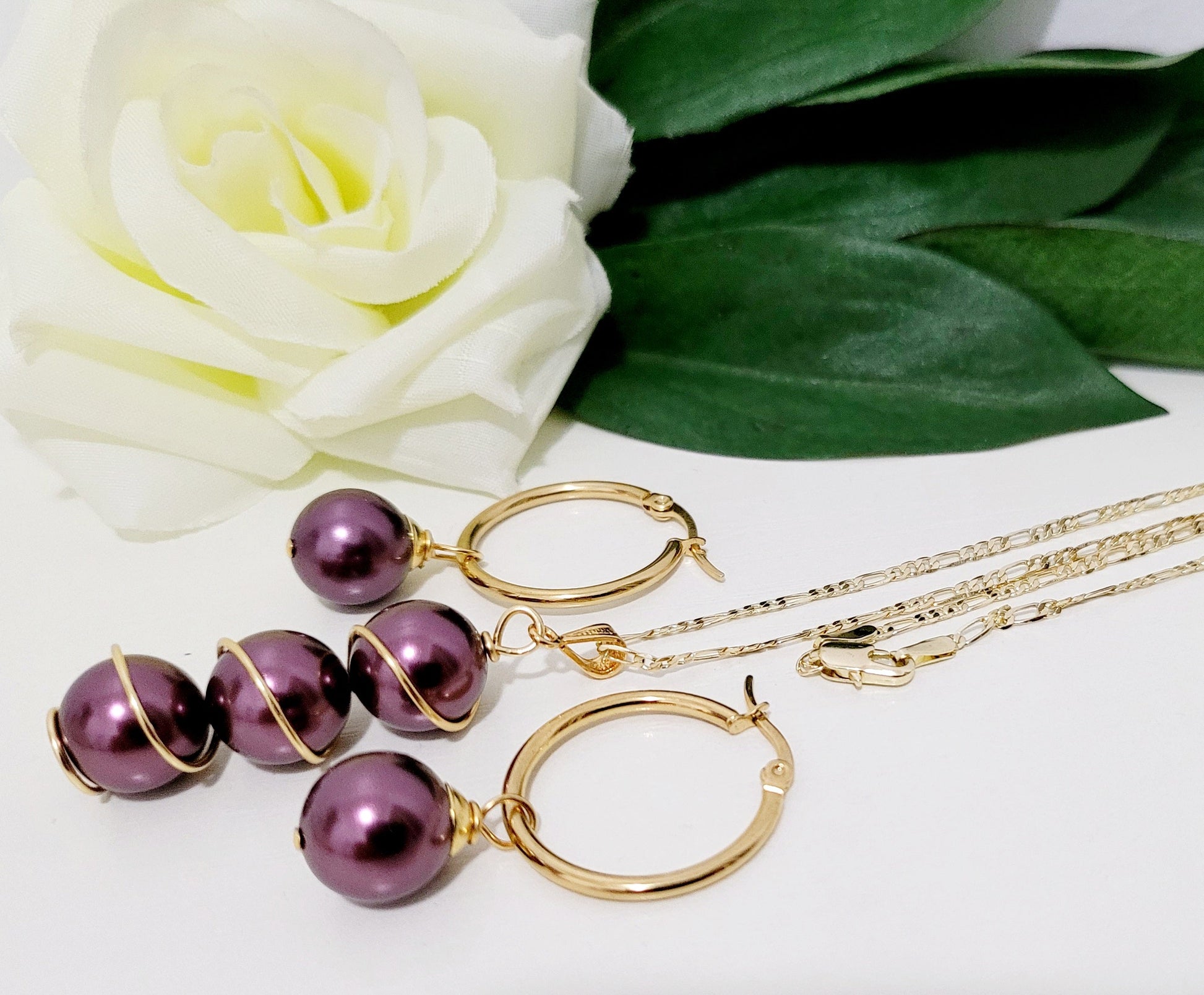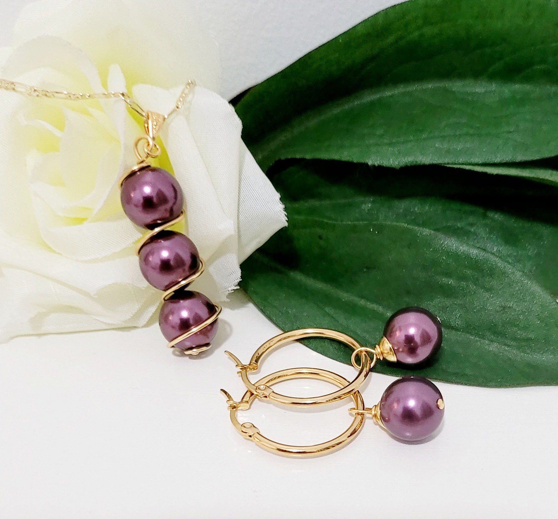 This is a light purple overtones premium Swarovski pearl's set display unique characteristics including lustre, smooth surface and strong coating quality.