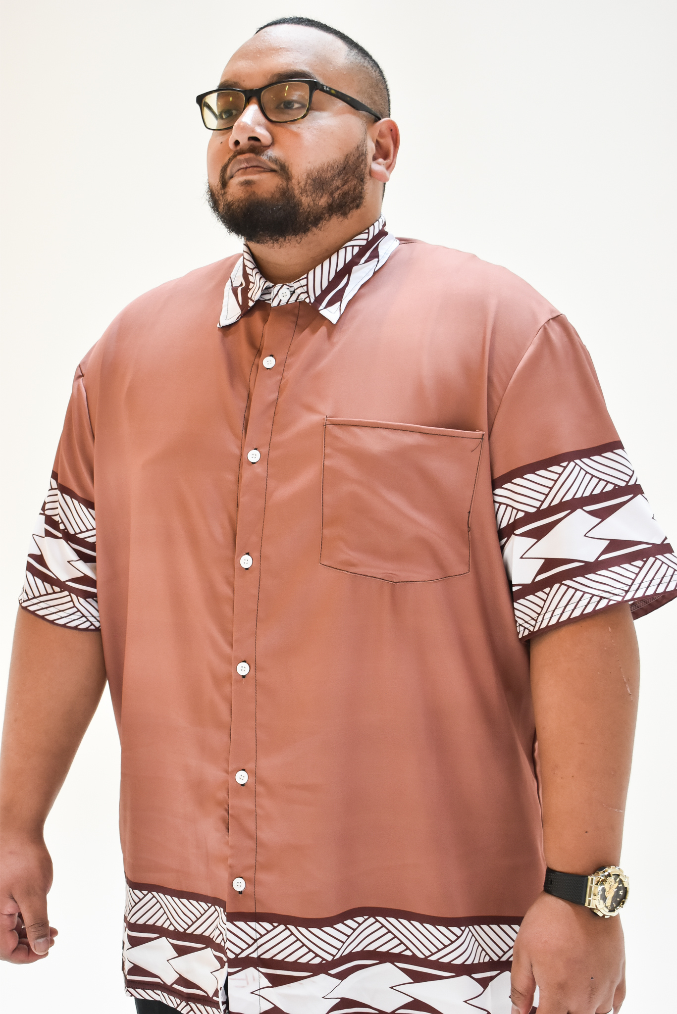 MIKAELE SHIRT - MENS SHIRT - COLLARED BUTTON UP - BROWN & WHITE