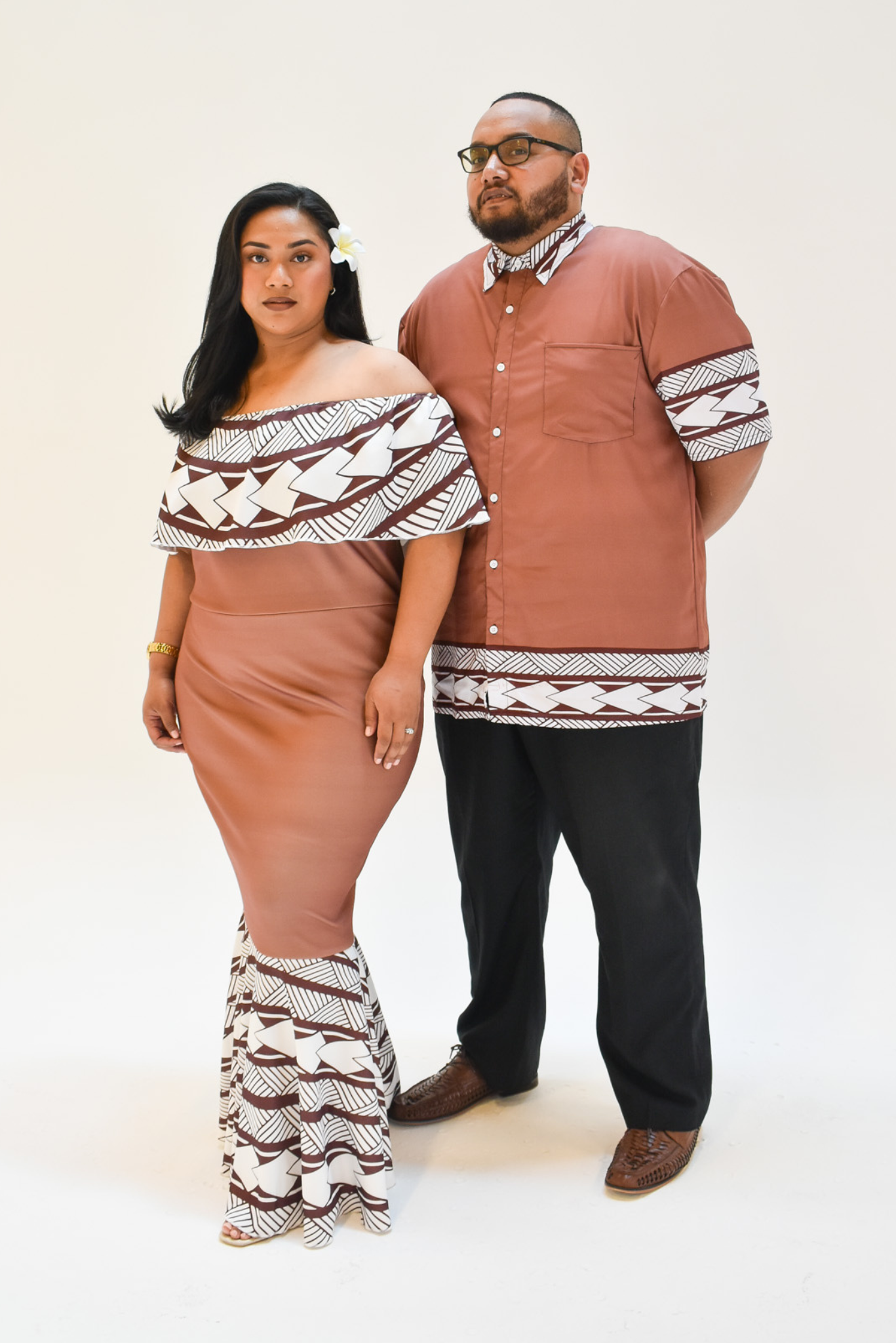Ready for your next event. Now available to match with her in the MIA DRESS - OFF SHOULDER FRILL DRESS & MIA V-NECK PULETASI