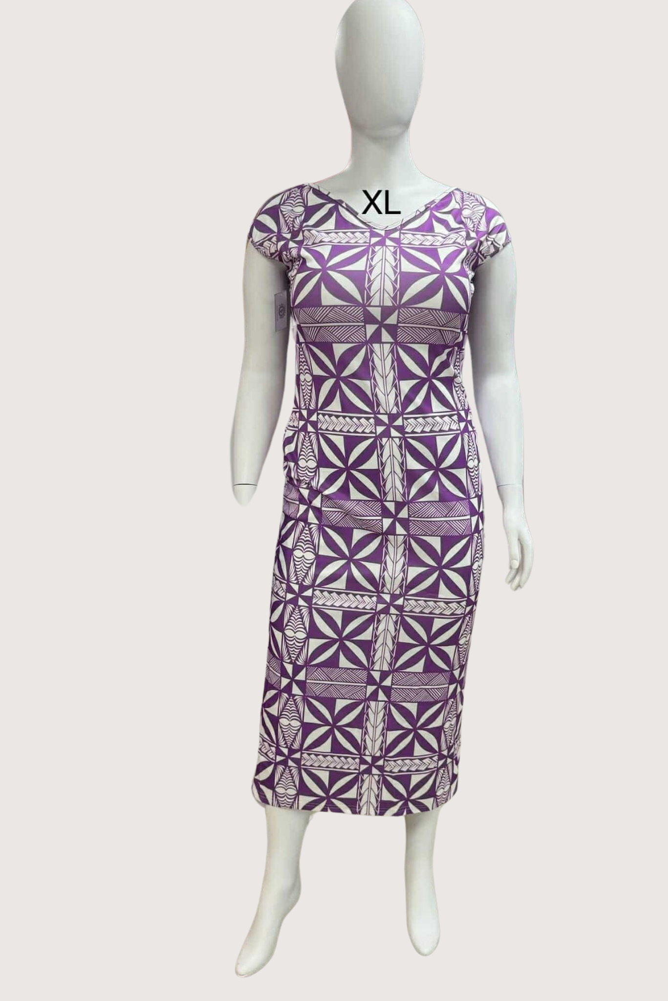 PURPLE & WHITE SHORT SLEEVED ISLAND DRESS - SIZE XL