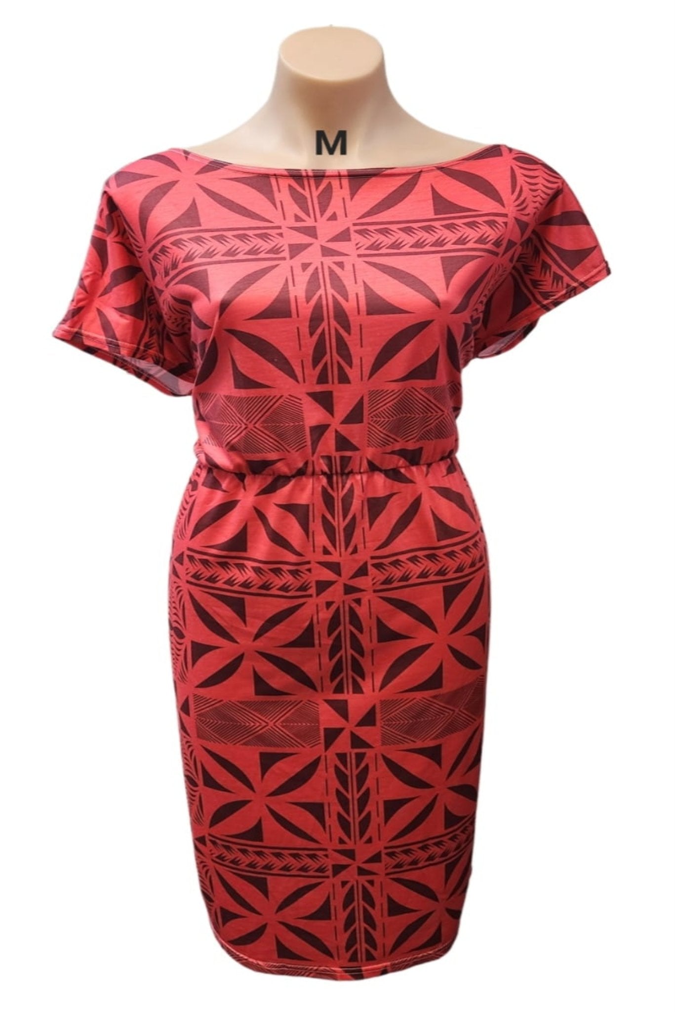 RED SHORT SLEEVE ISLAND TRIBAL DRESS -SIZE MEDIUM