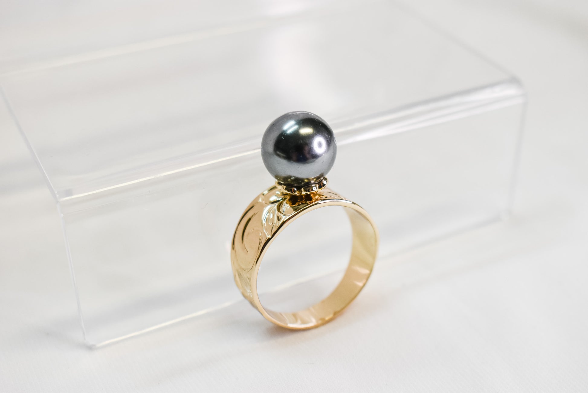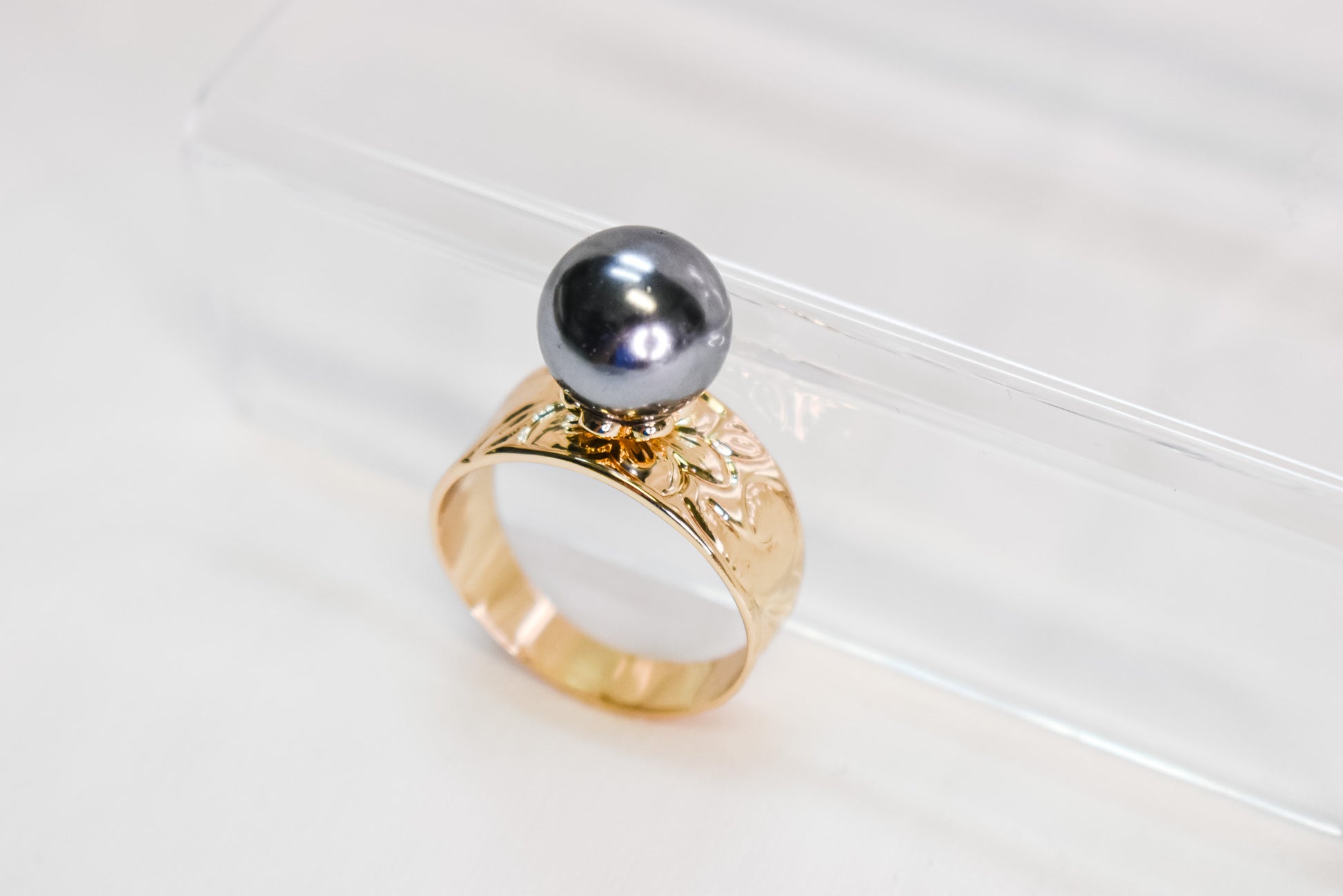 ROSA - BLACK SHELL PEARL FT GOLDFILLED BAND RING