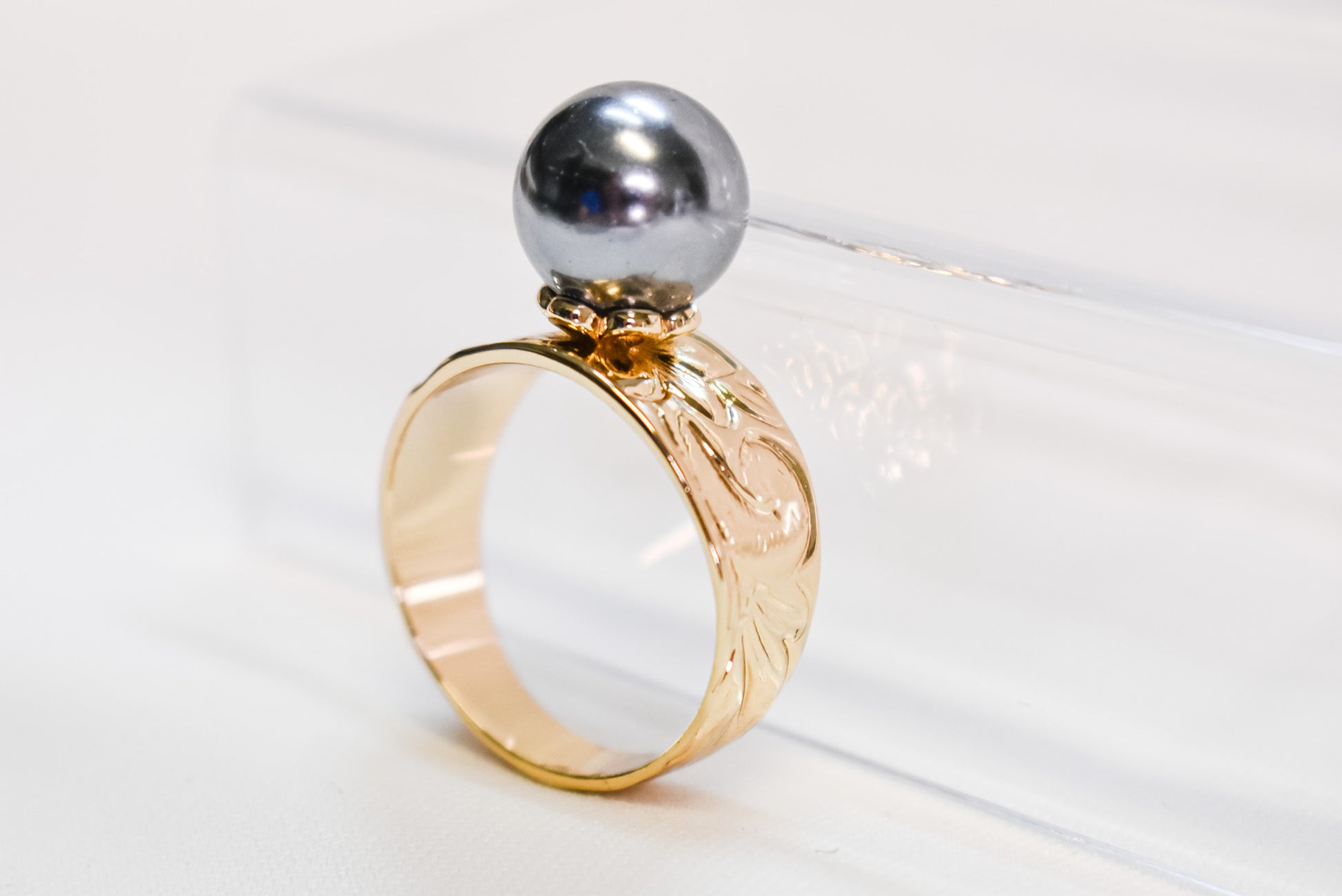 - Floral engraving surrounds the band.