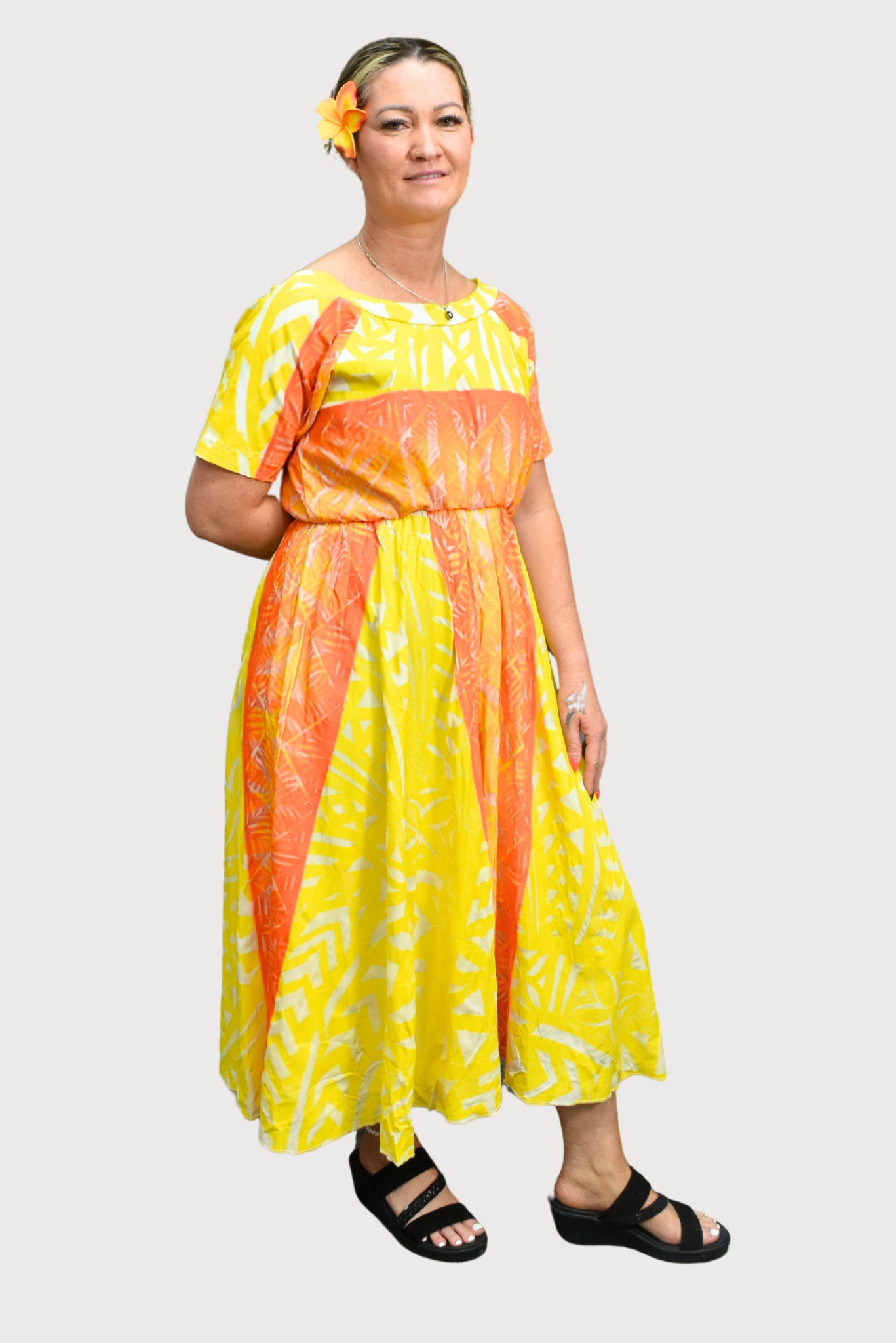 YELLOW & ORANGE HIGH WAISTED DRESS - SIZE