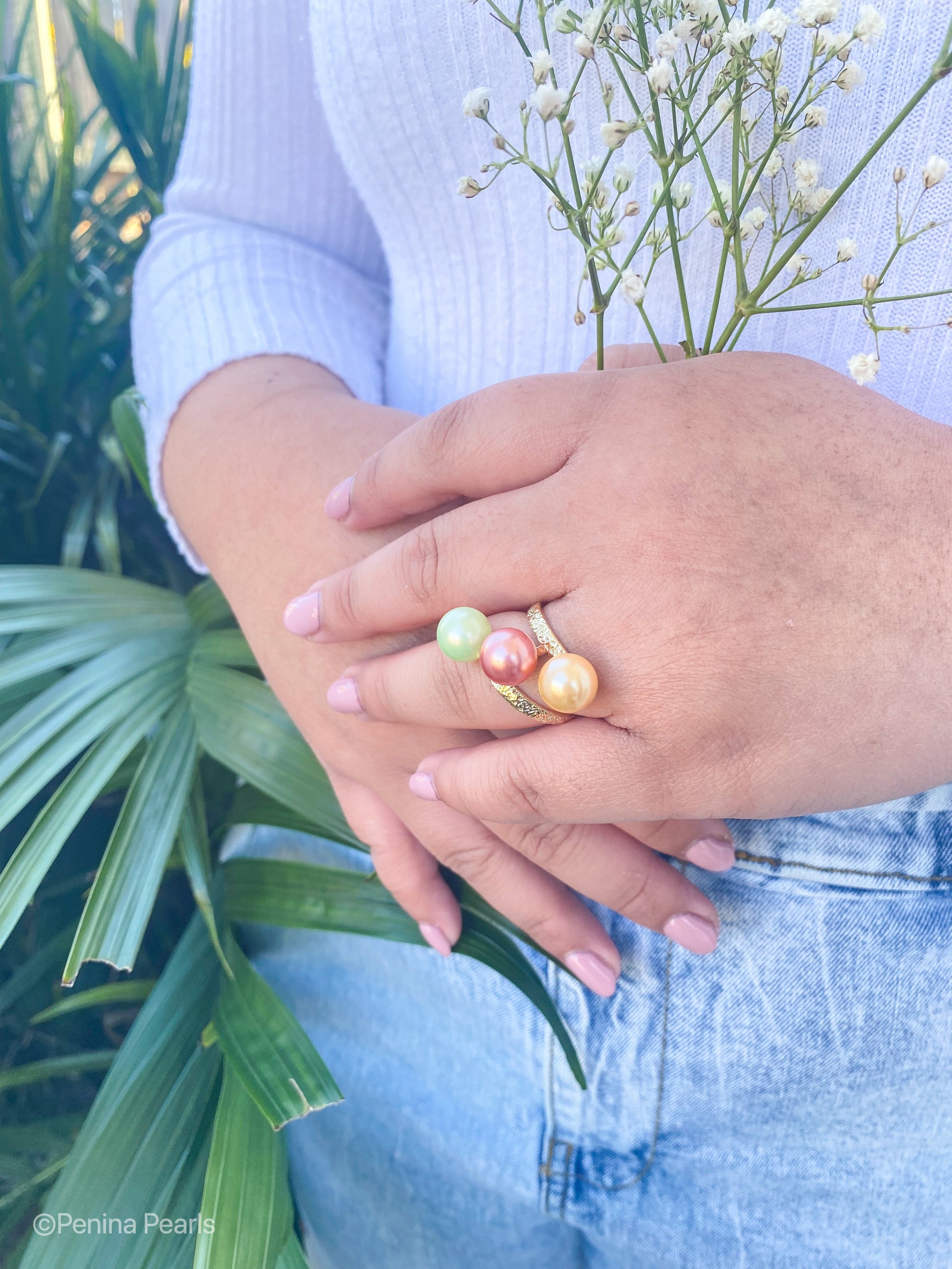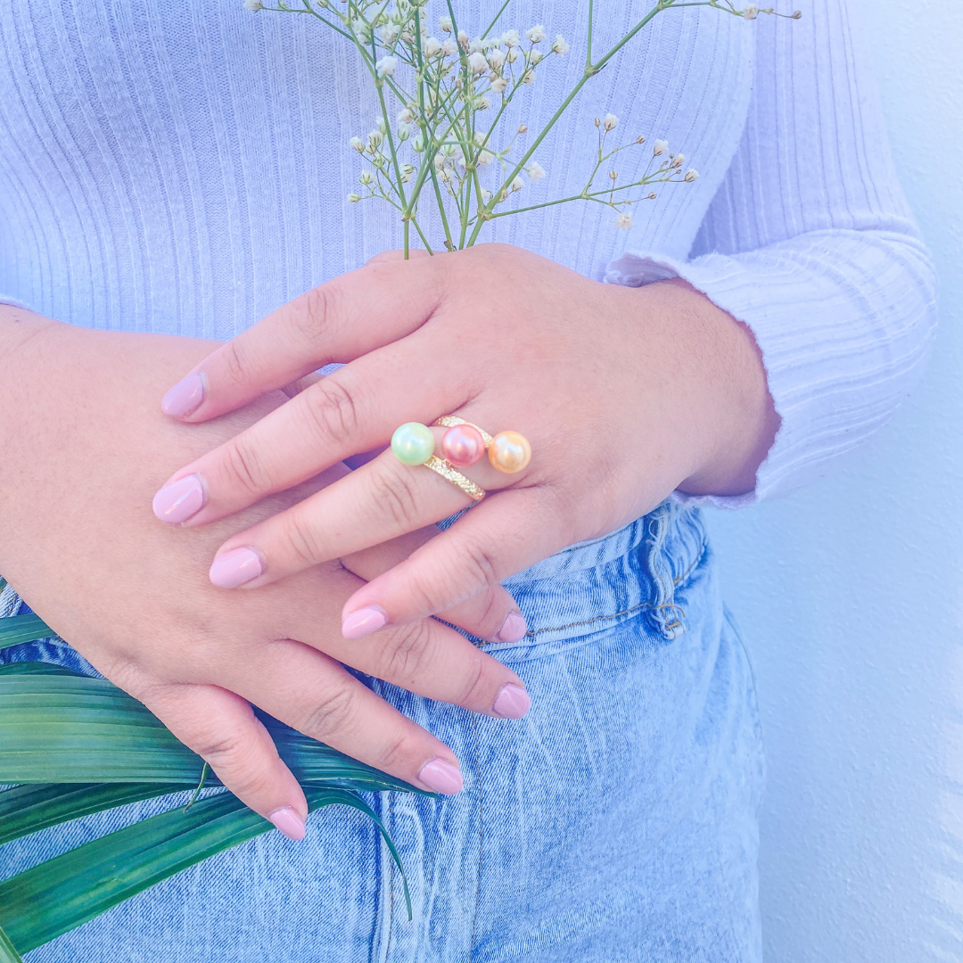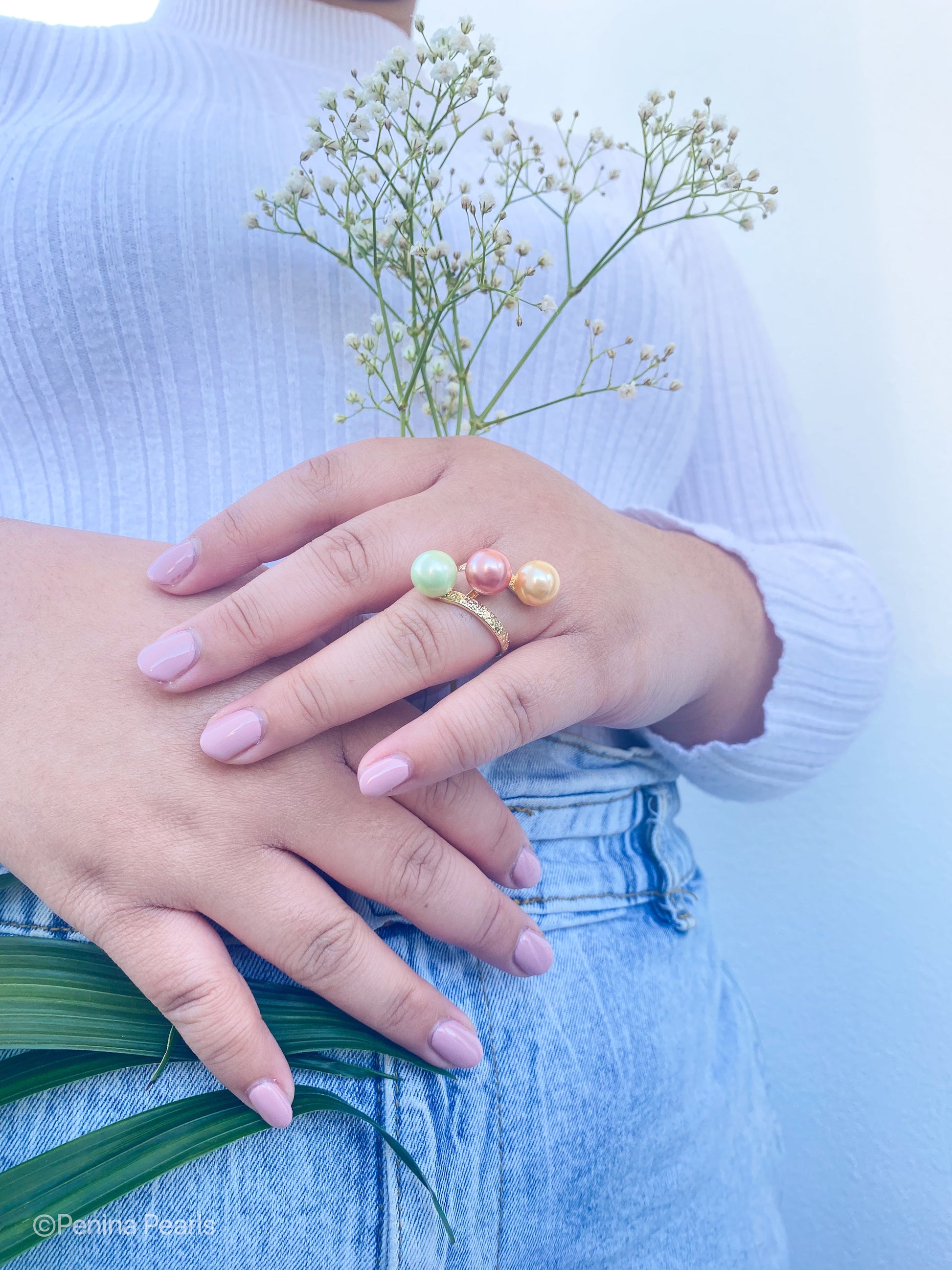 ATHENA - Multicoloured 3 Premium Seashell Pearl Ring - Hammered Style