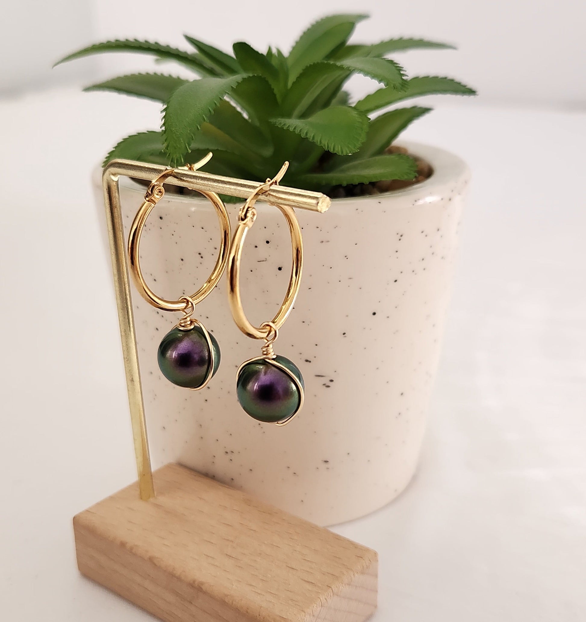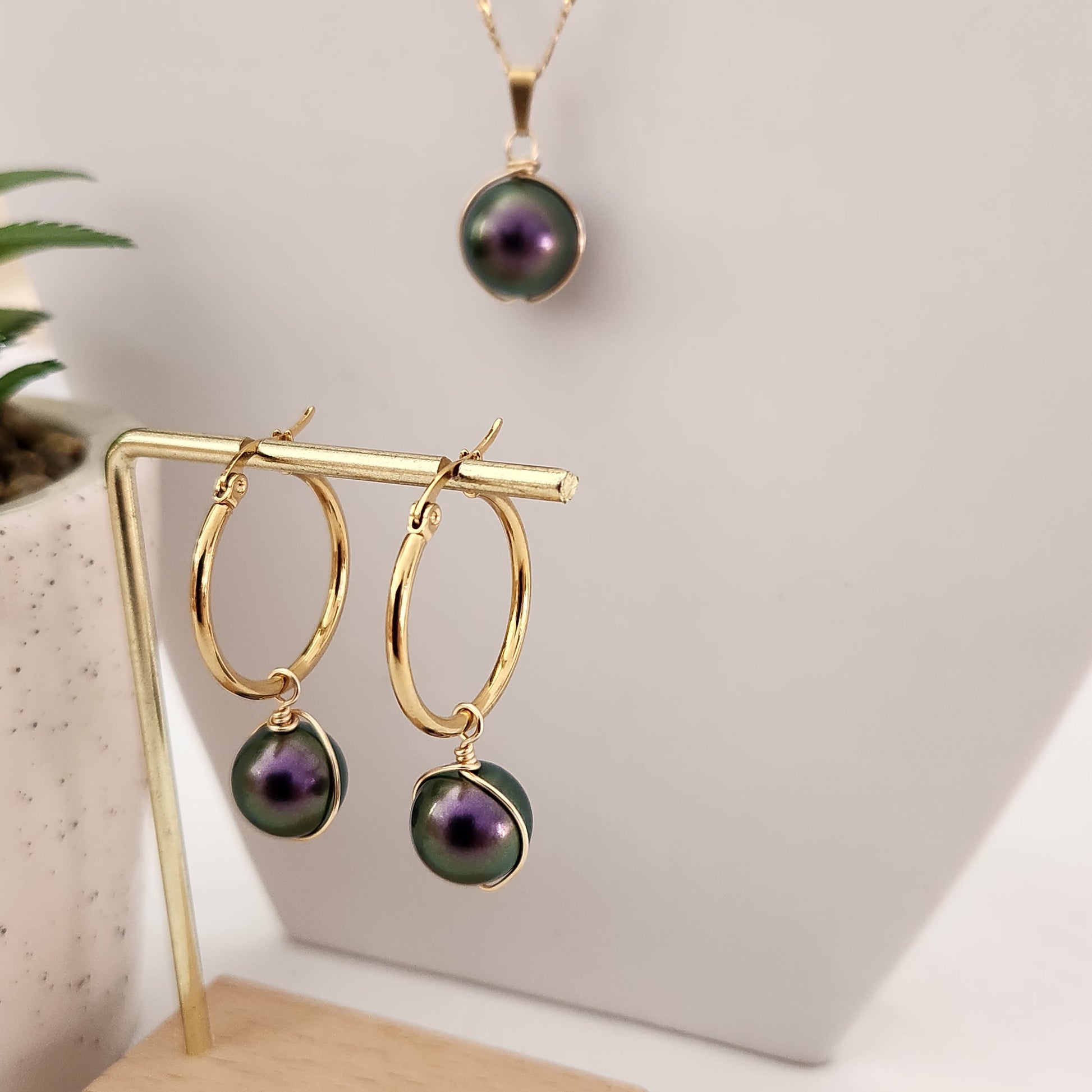 Single Caged - Iridescent Purple Swarovski Pearl's set