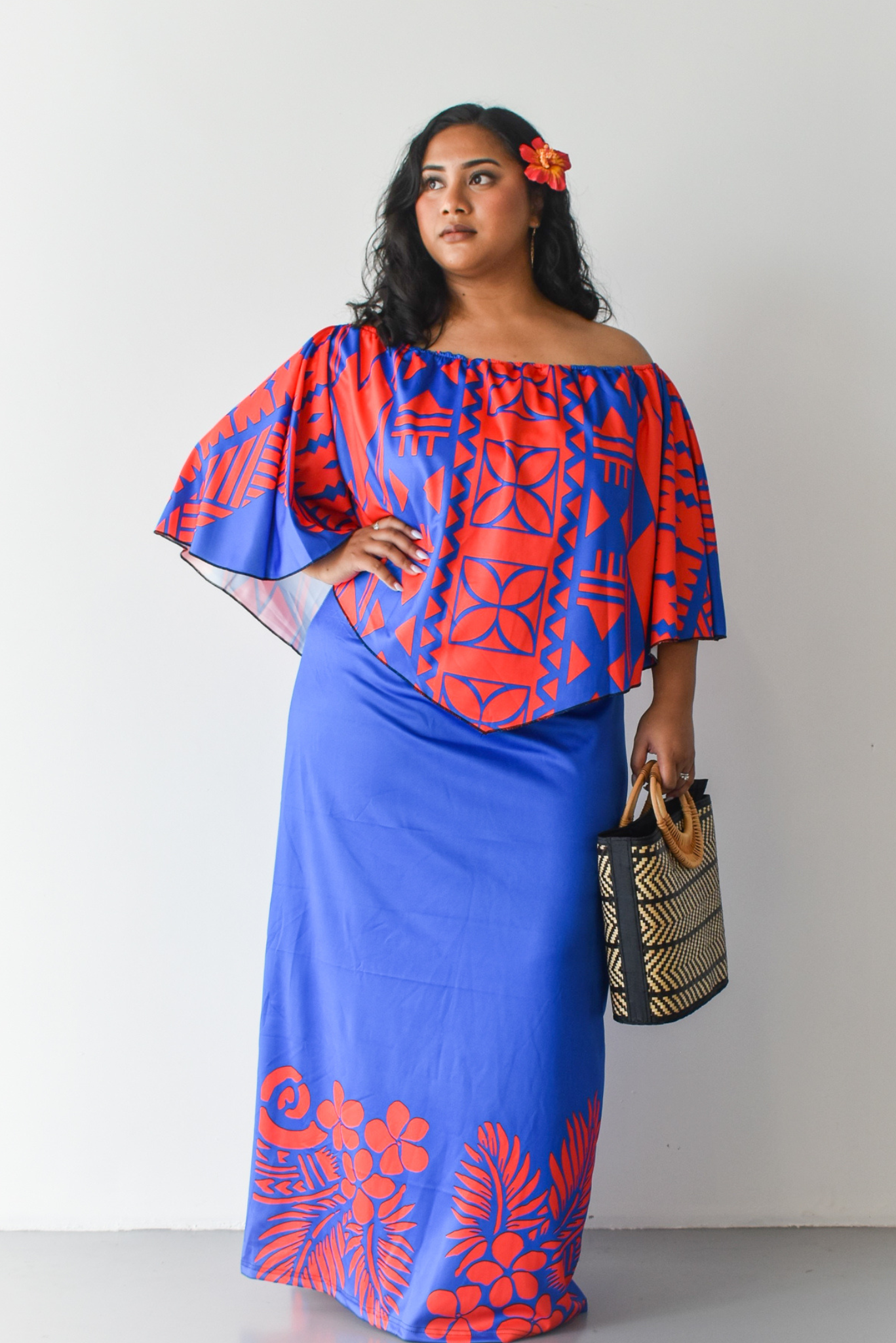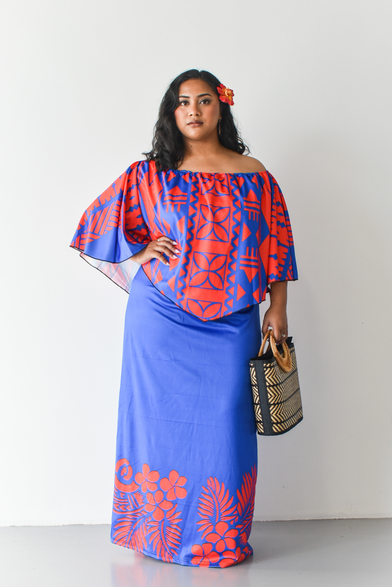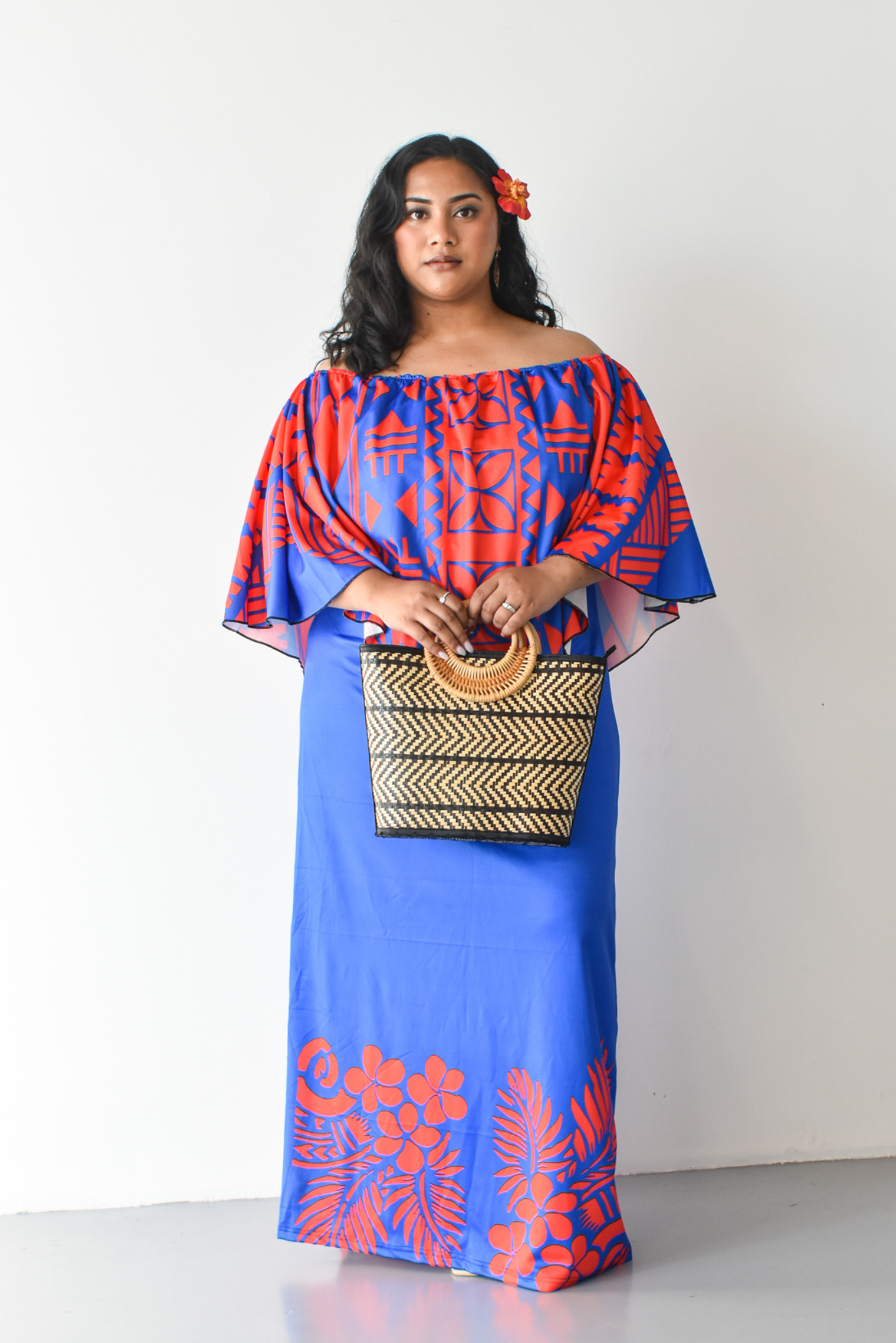 Diana dress is our new dress that features a beautiful Blue & red unique pacific island patterns all over. The perfect blend of modern & island dress that is super comfortable to wear for both semi-formal and formal occasions.
