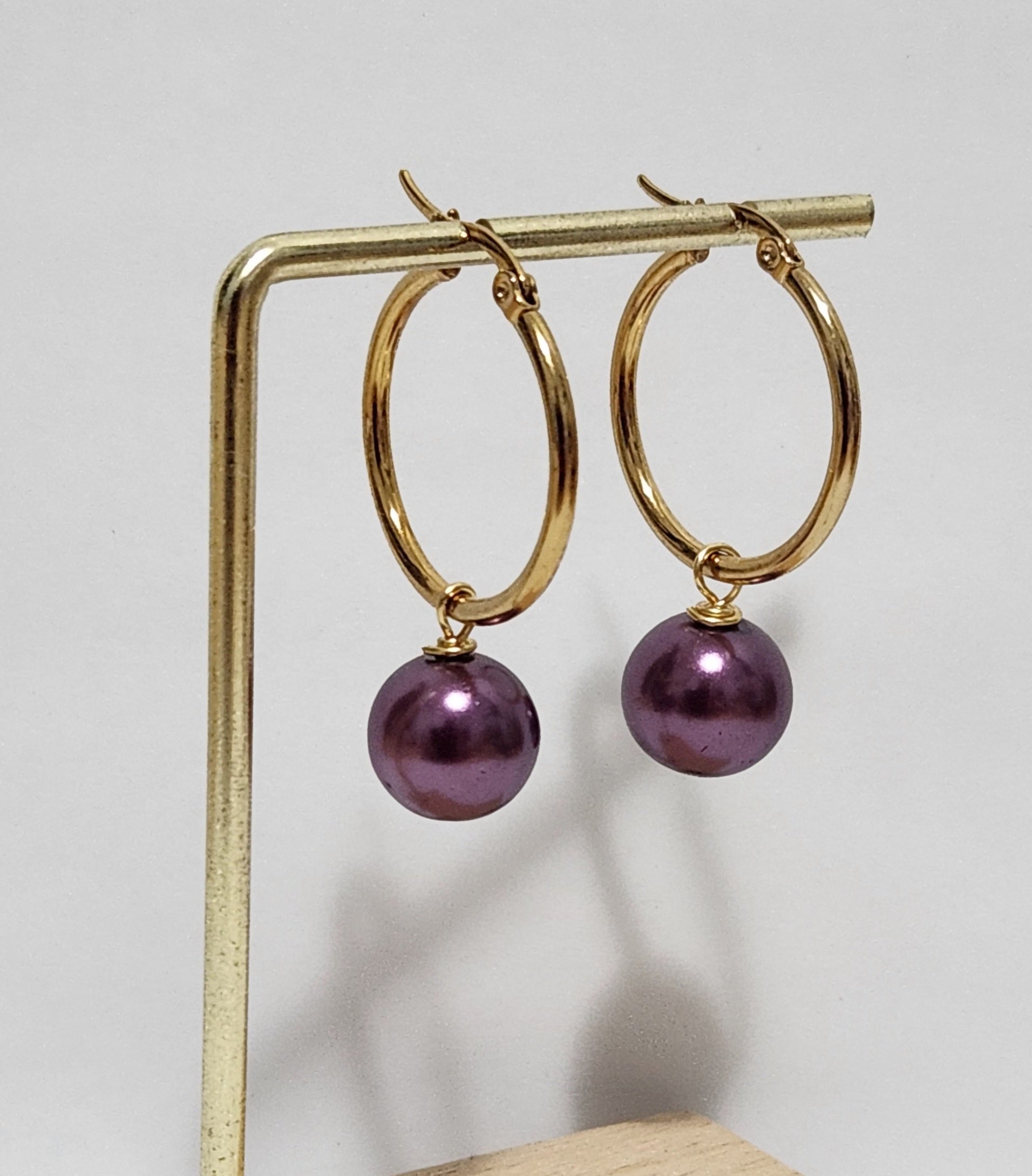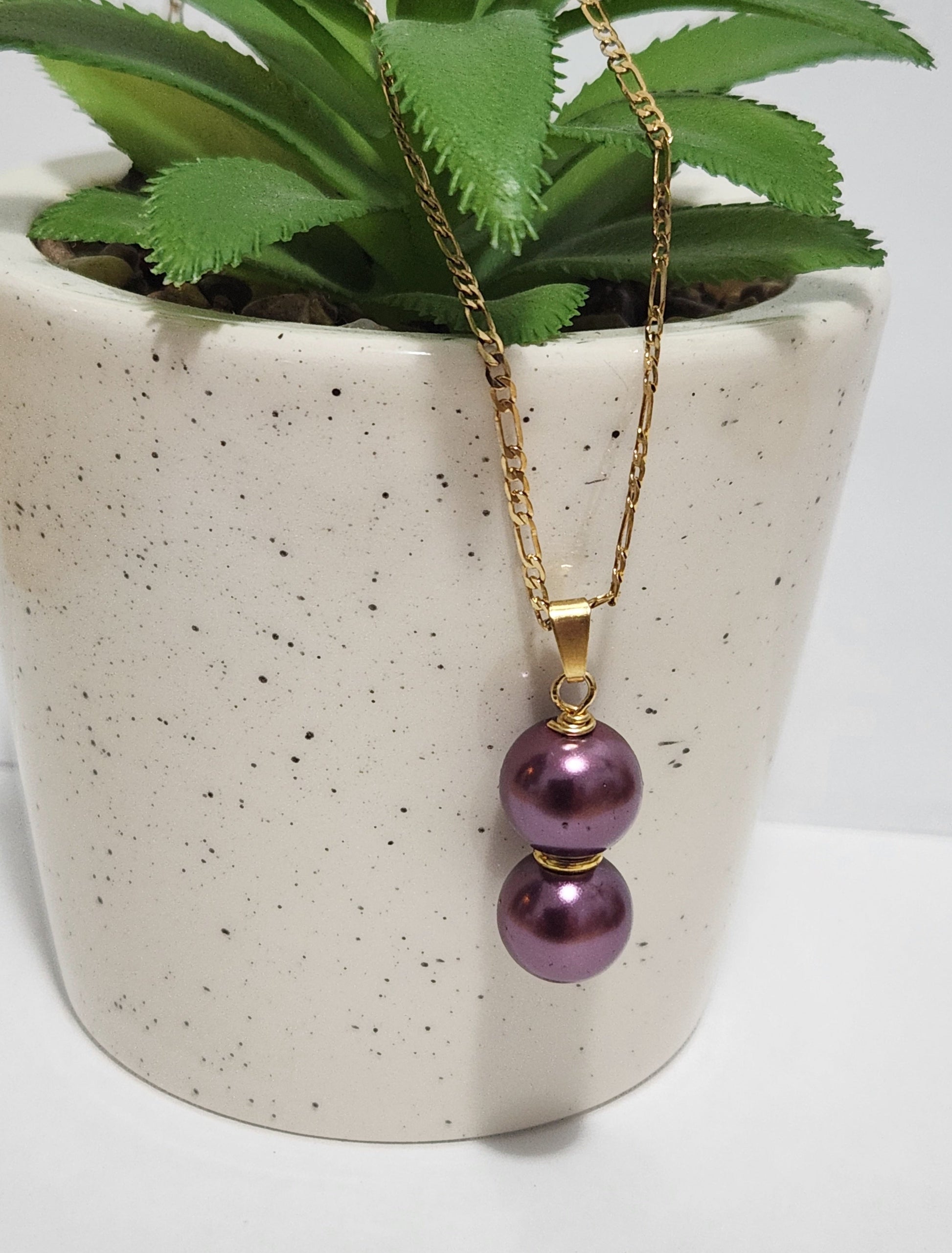 The set features a perfectly round purple swarovski pearls, that is worn with gold-filled Figaro-style gold chain and hoop earrings. It can be worn with any outfit, to any function and everyday.