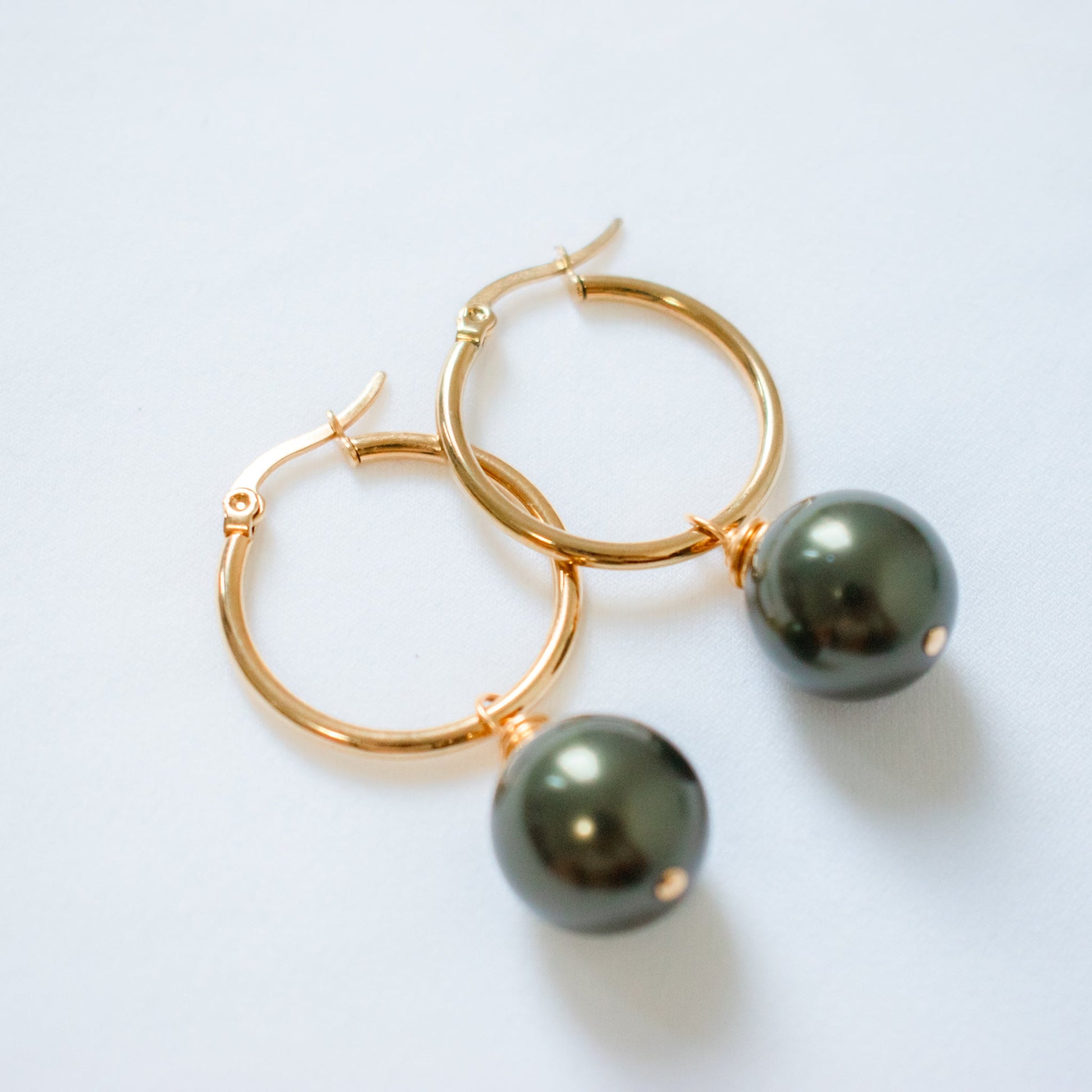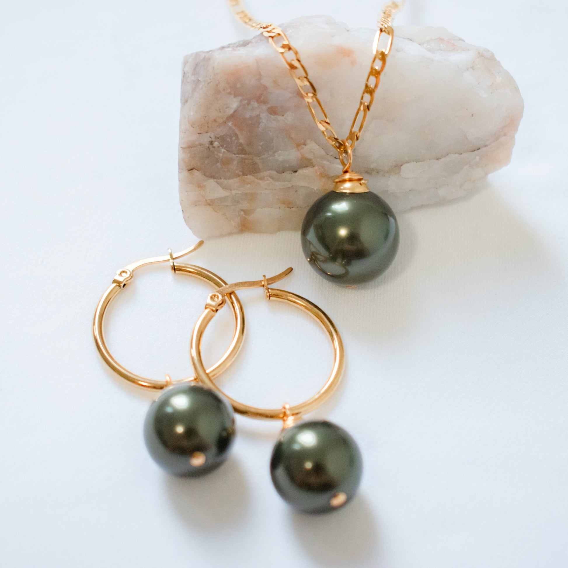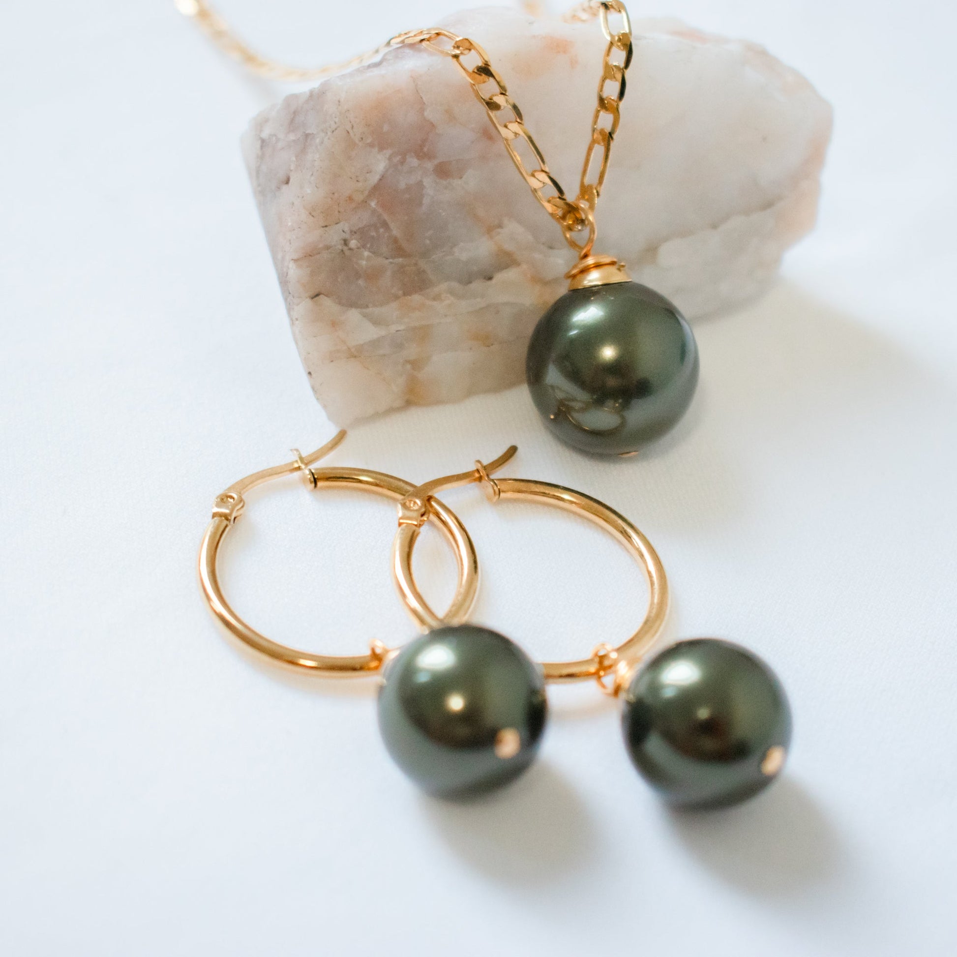 HERA - DARK OLIVE SWAROVSKI PEARL SET