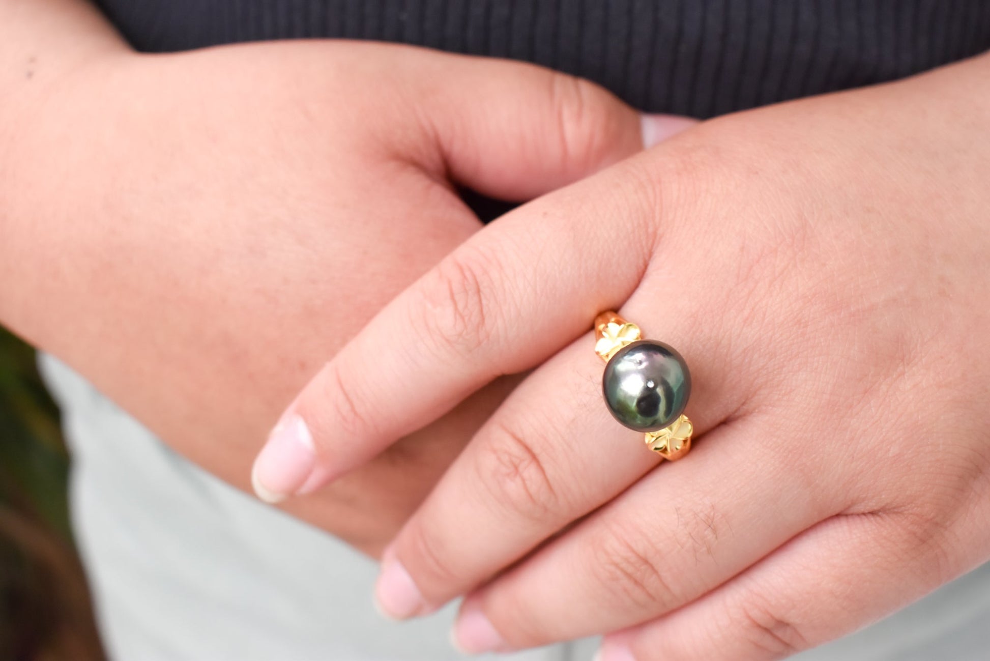 Introducing our exclusive & first-ever 925 sterling ring collection! Featuring beautiful Tahitian pearls with the infamous gold plumeria that makes our jewellery unique.