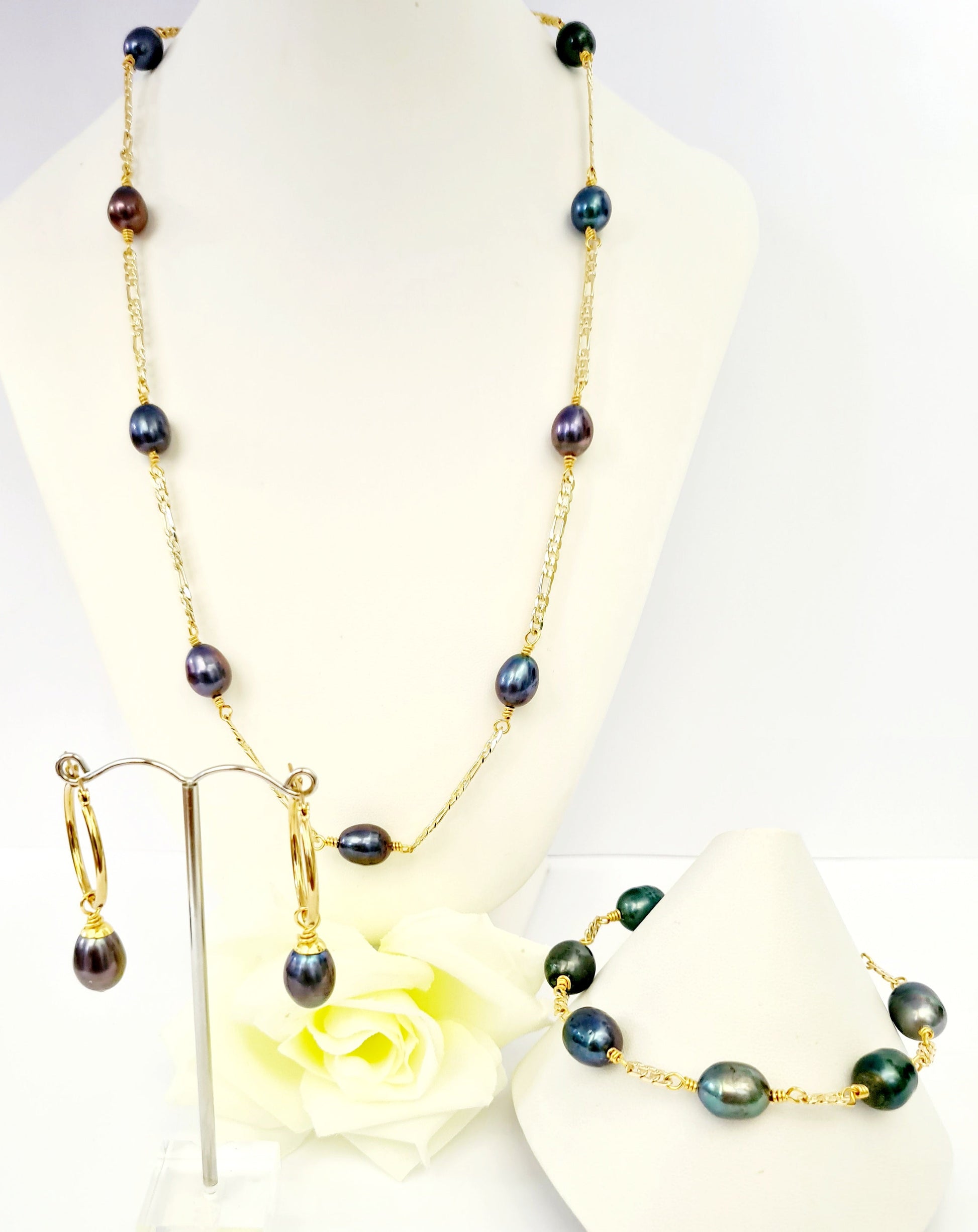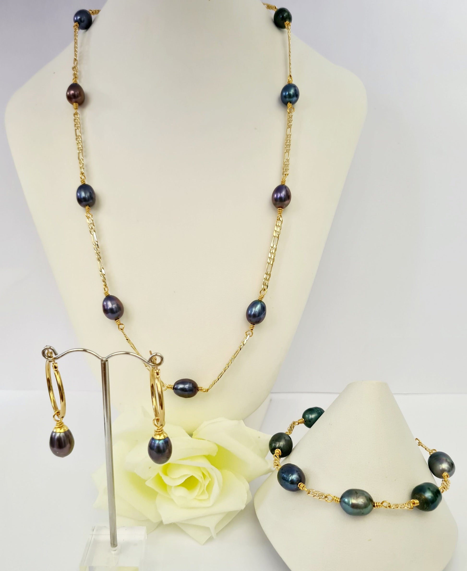 This is truly one of a kind pearl set that features the exquisite beauty of genuine Tahitian pearls. A classic pearl set that features our high-quality oval Tahitian pearls, and can be worn as a set or by itself. You can never go wrong when you're wearing this Leilani pearl set.