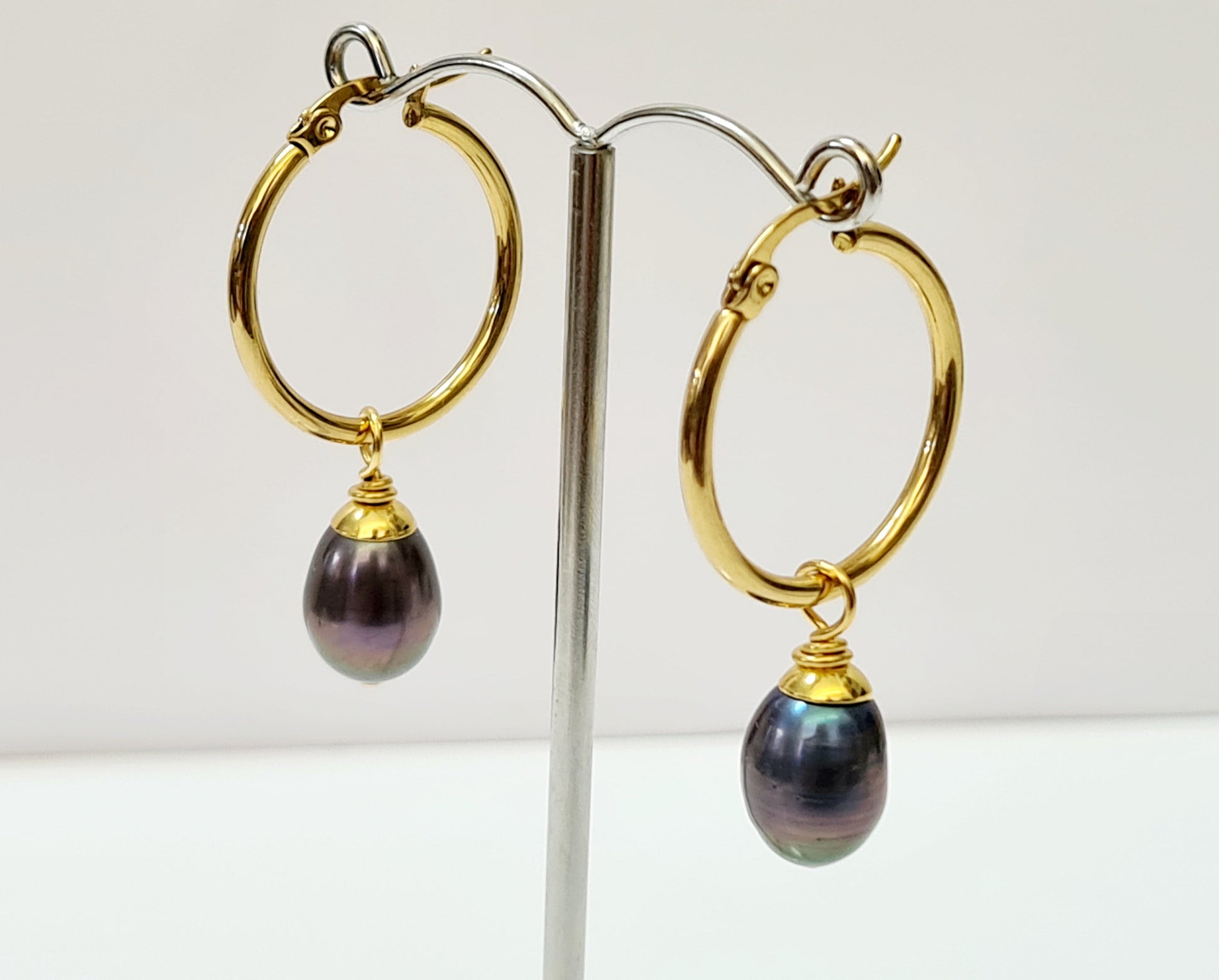 - Genuine Tahitian pearls, oval-shaped, near round. 10-14mm thickness.