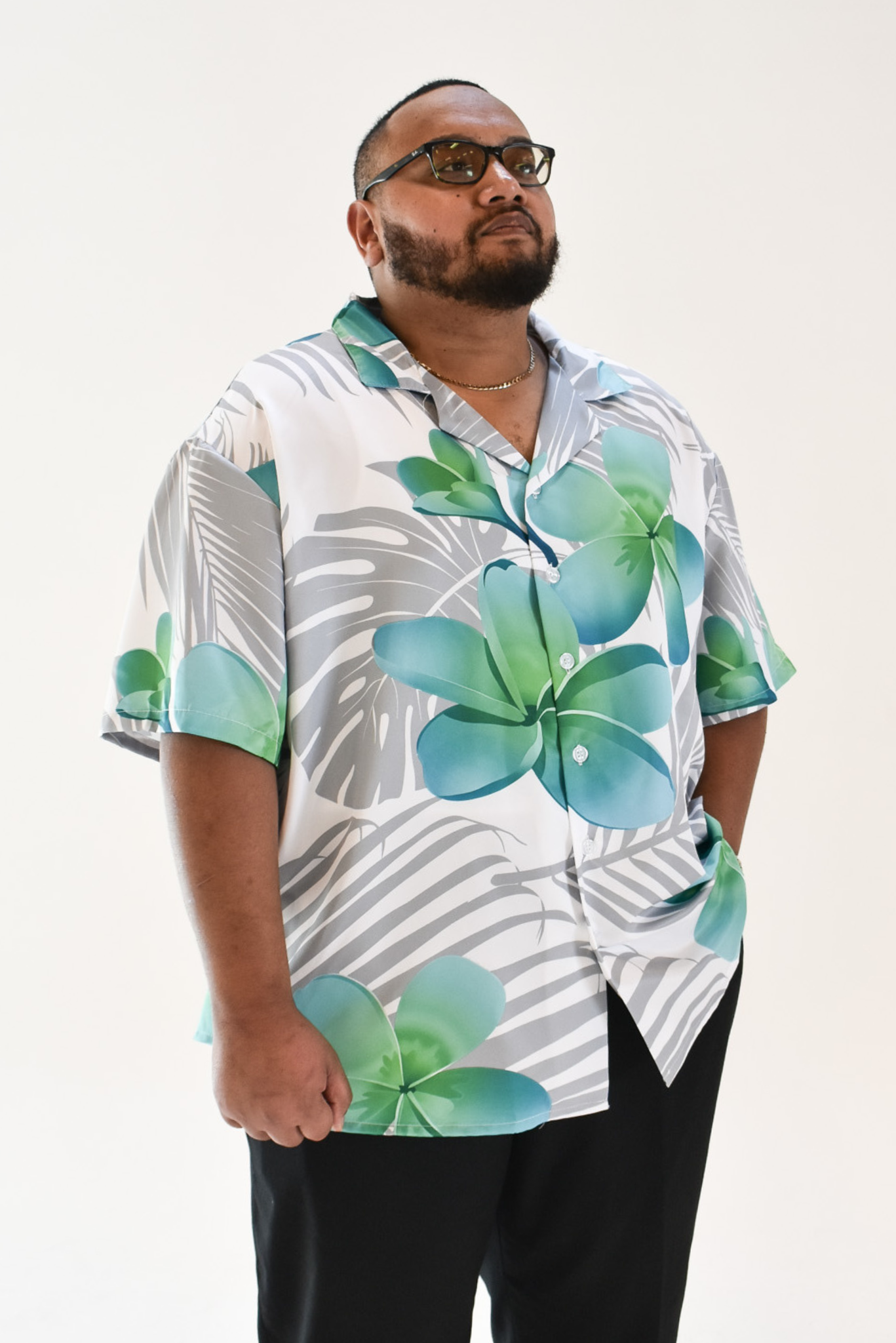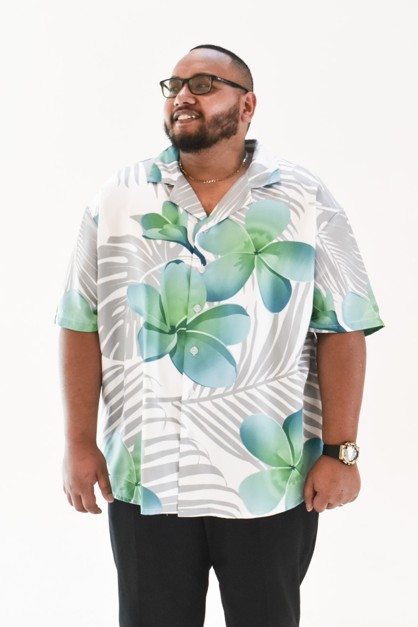 MALOSI SHIRT - COLLARED BUTTON UP SHIRT - WHITE & GREEN FLORAL PATTERN