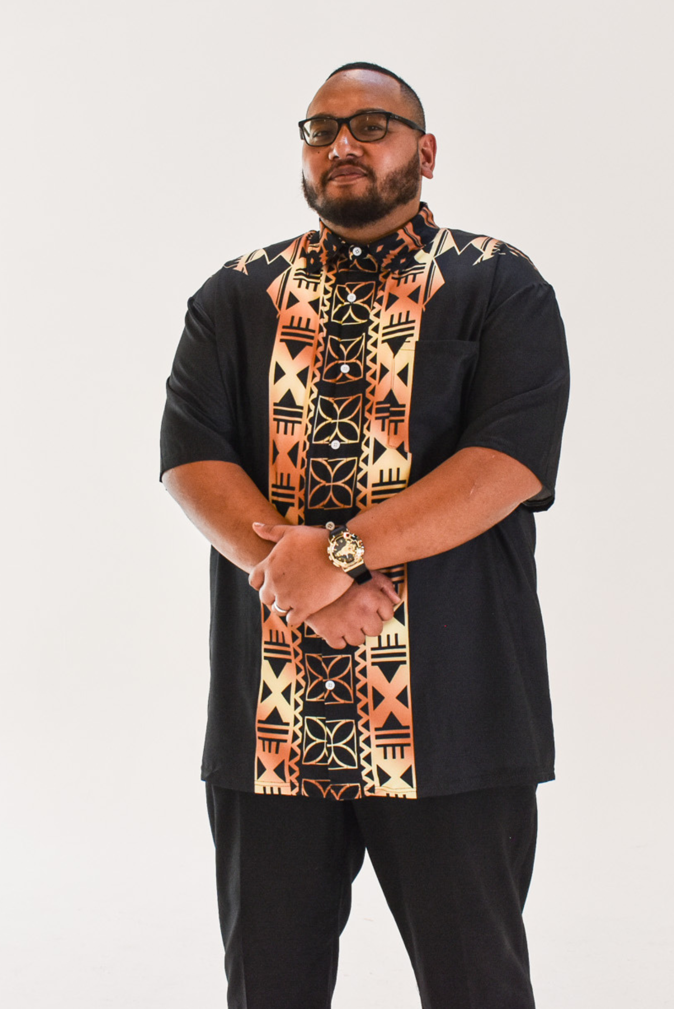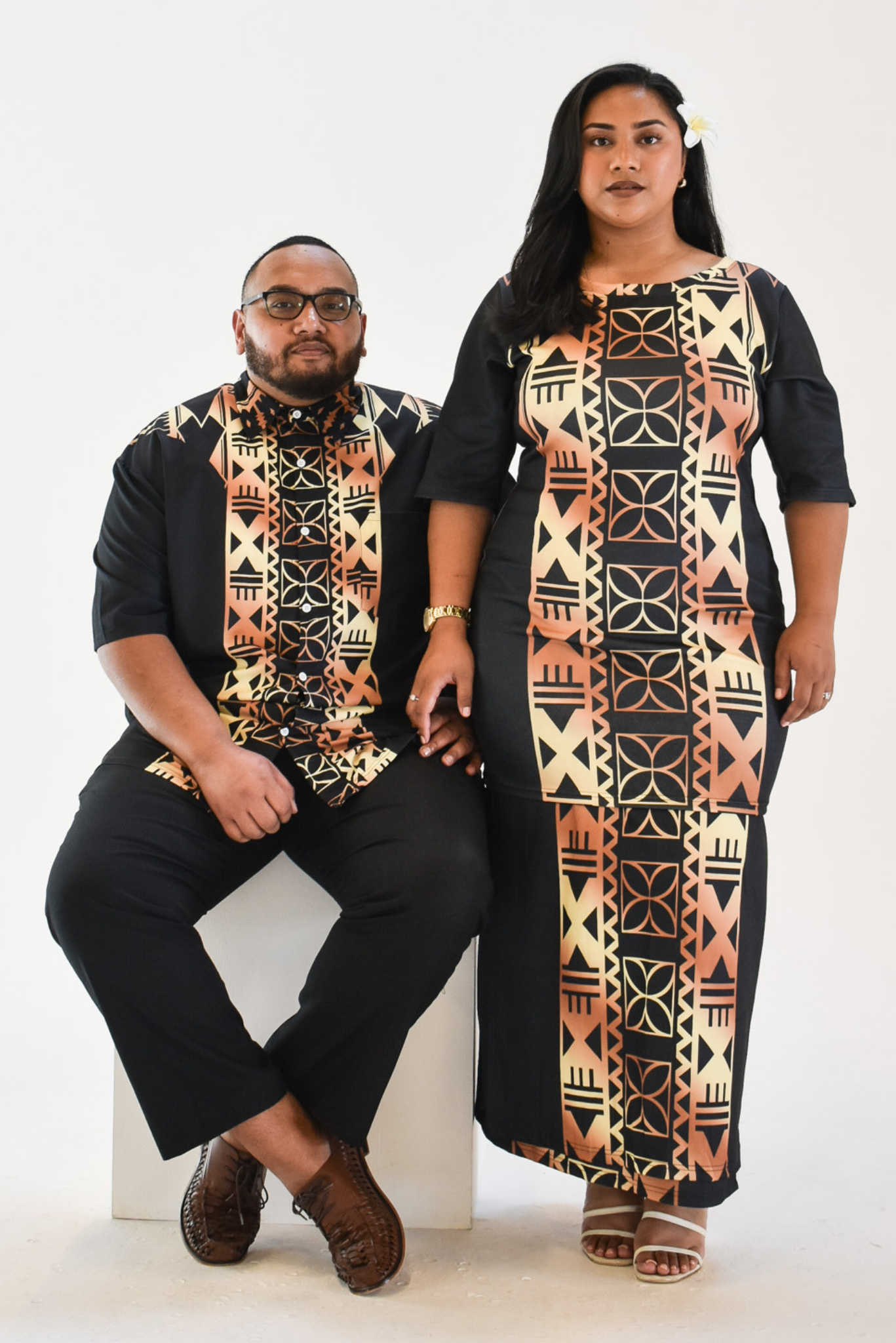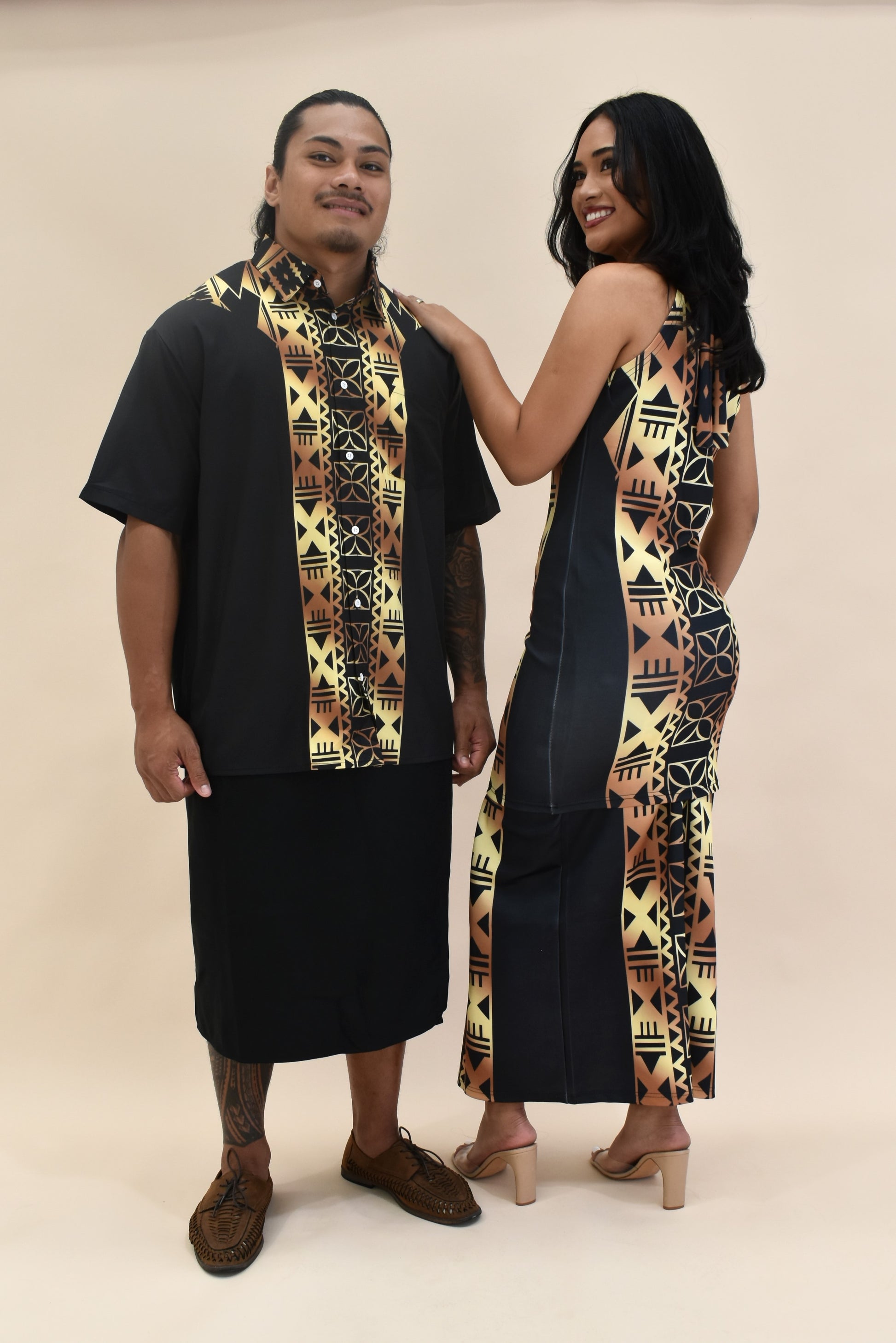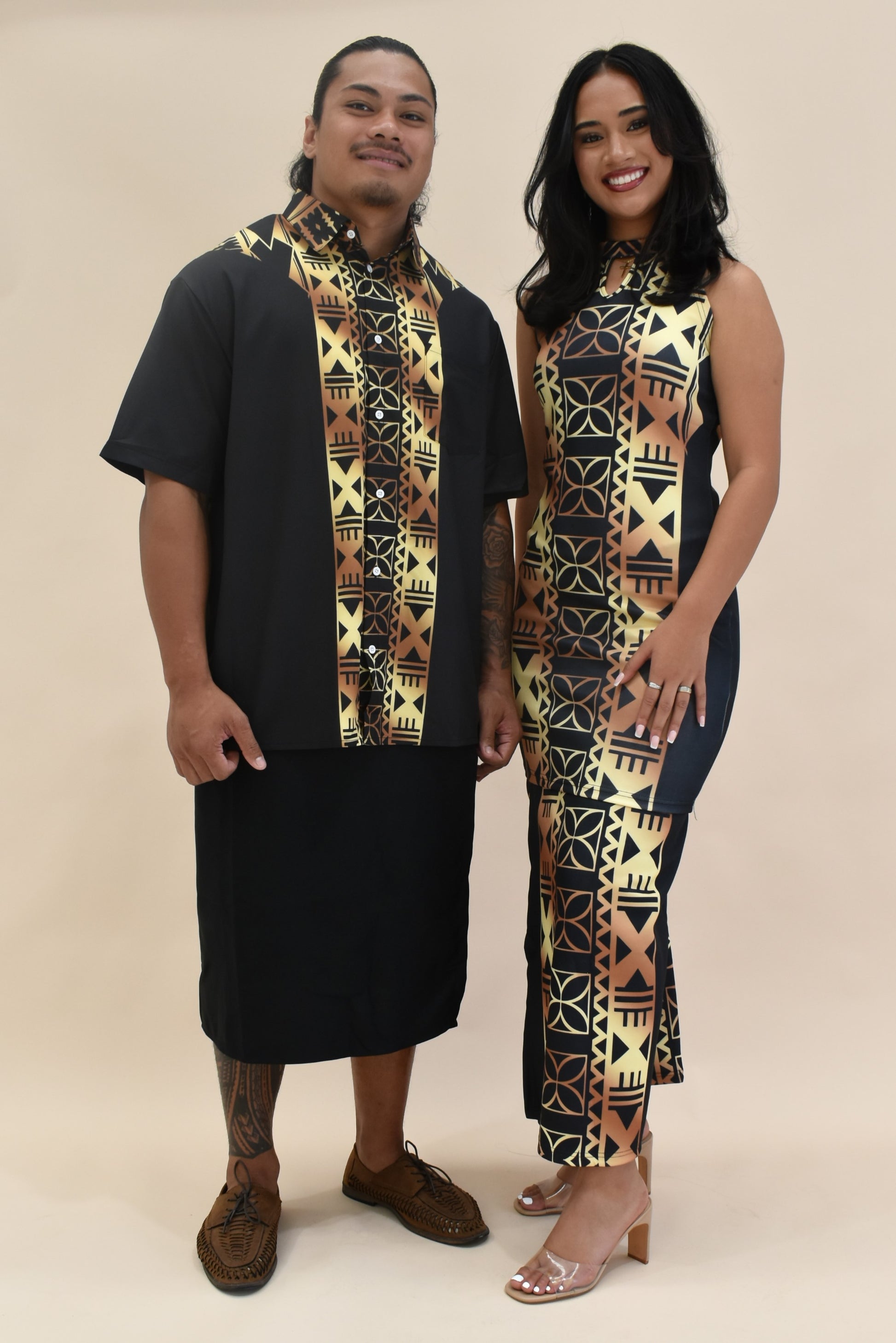 Ready for your next event. Now available to match with her in the HALTER NECK PULETASI - TWO PIECE OUTFIT - BLACK & GOLD