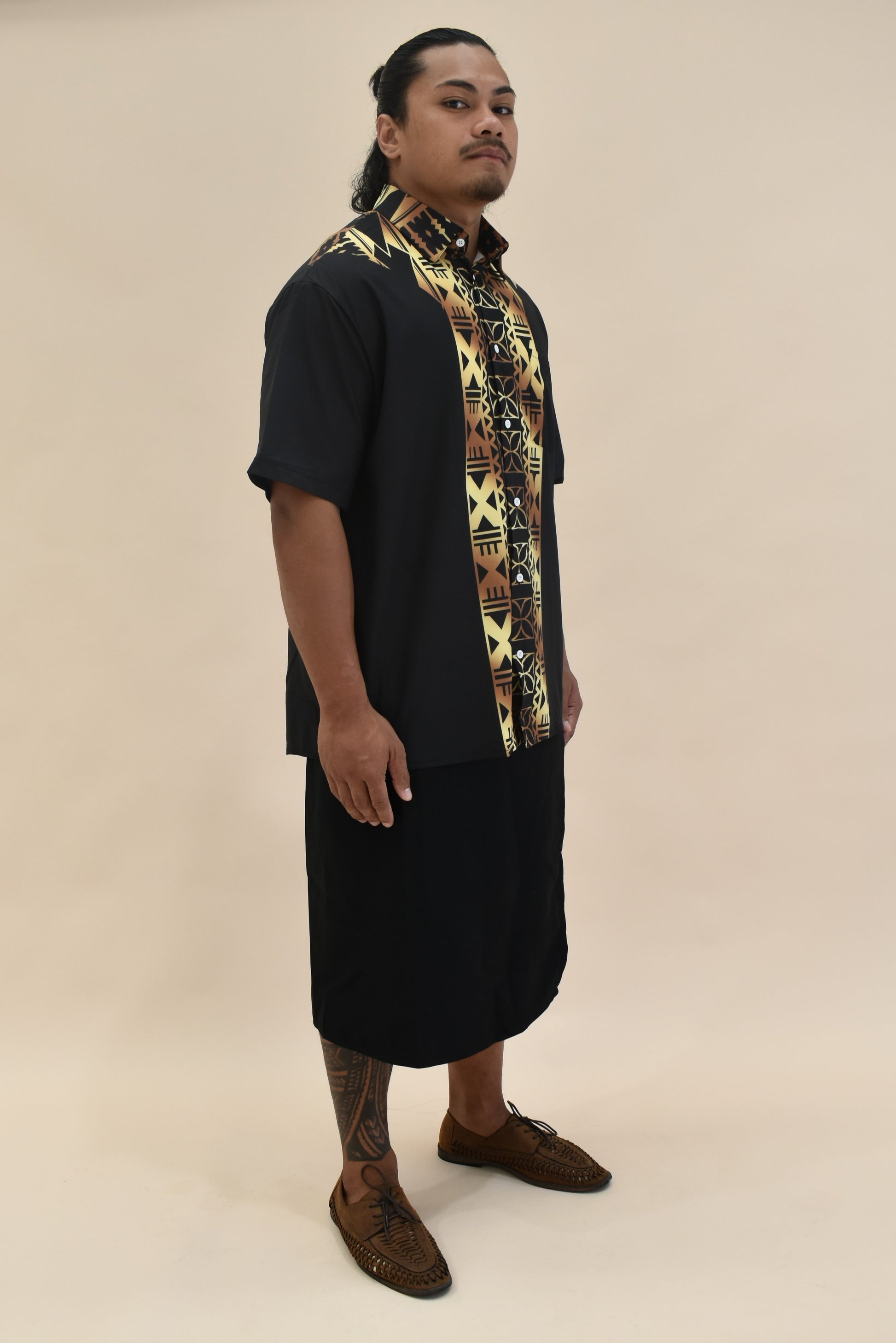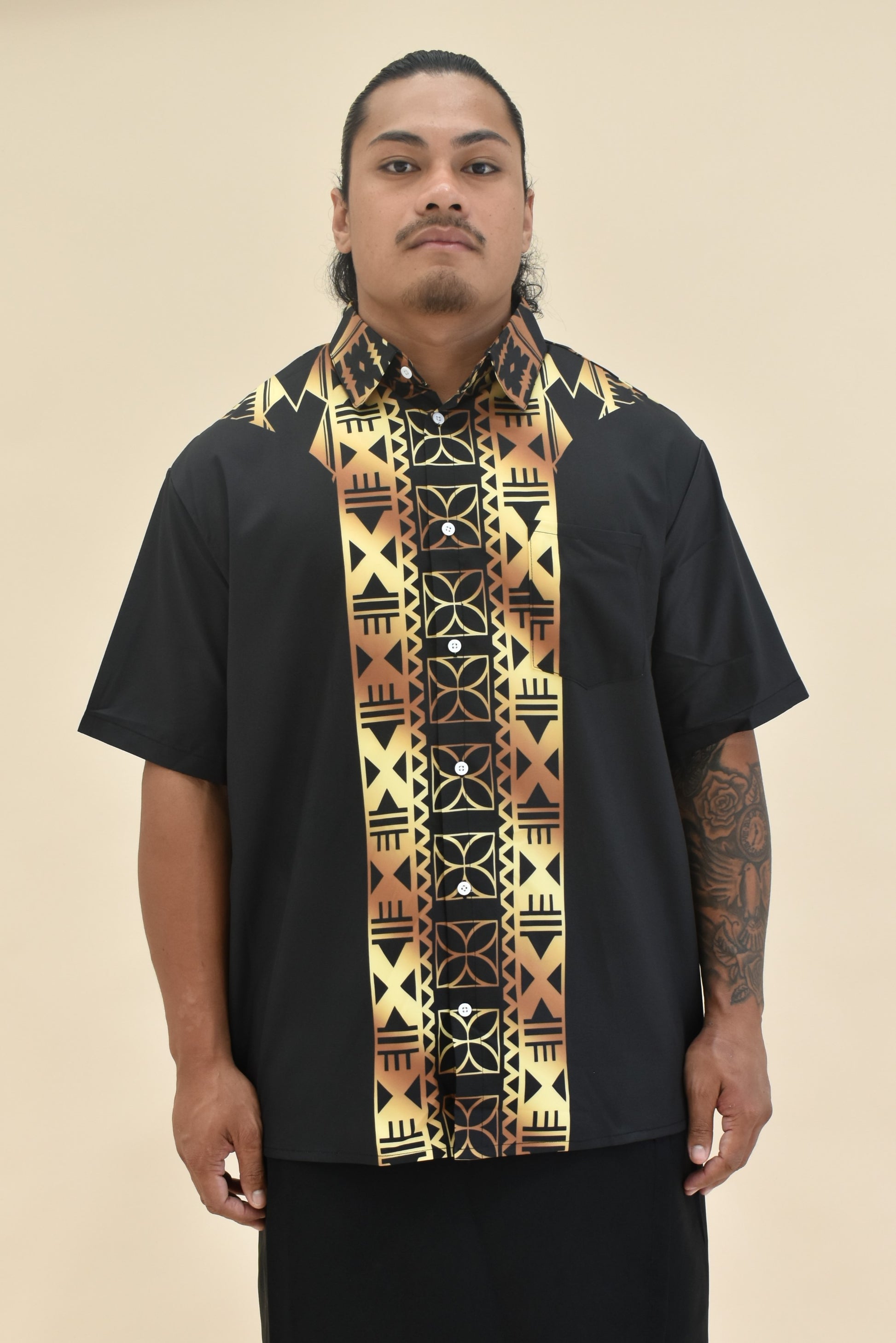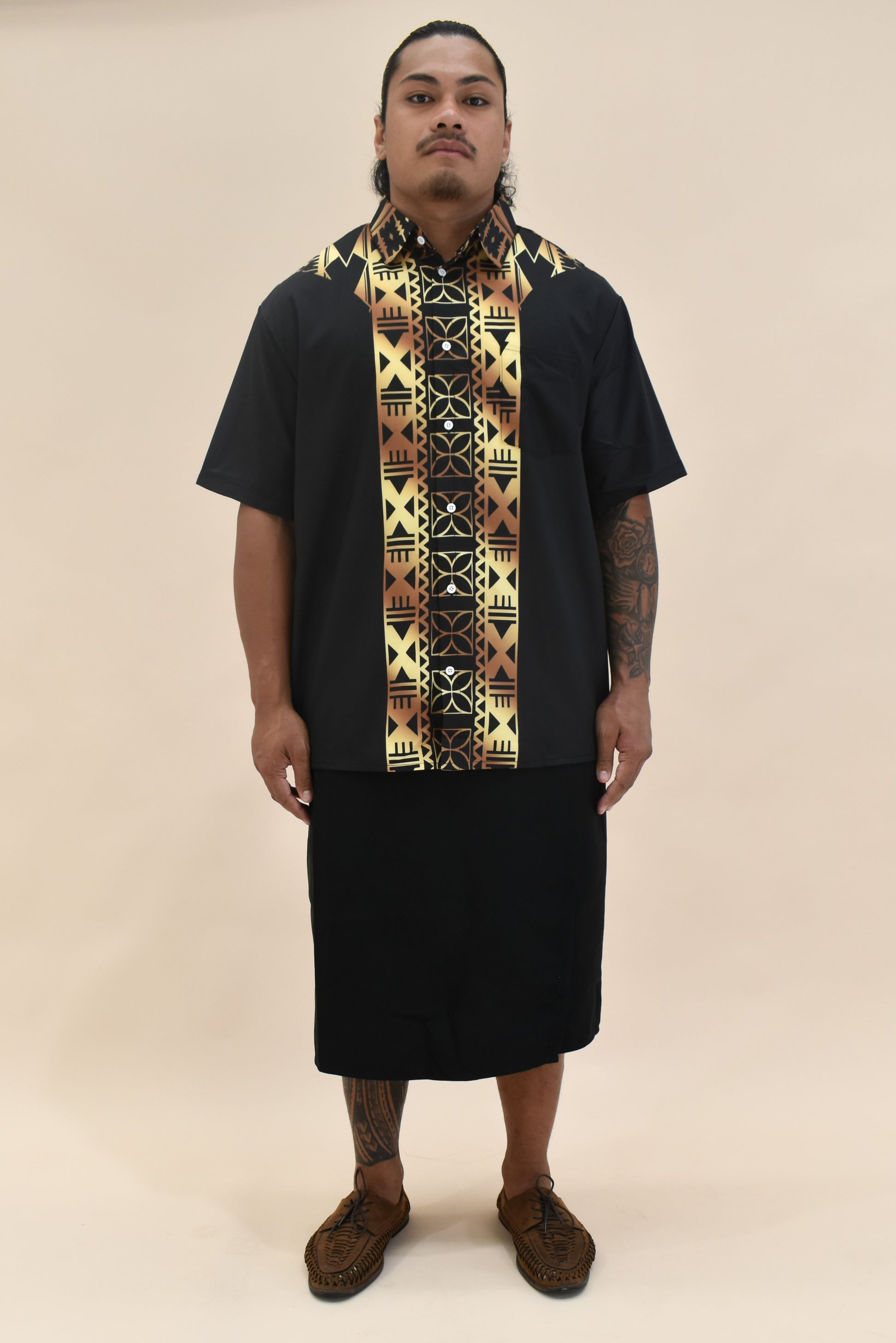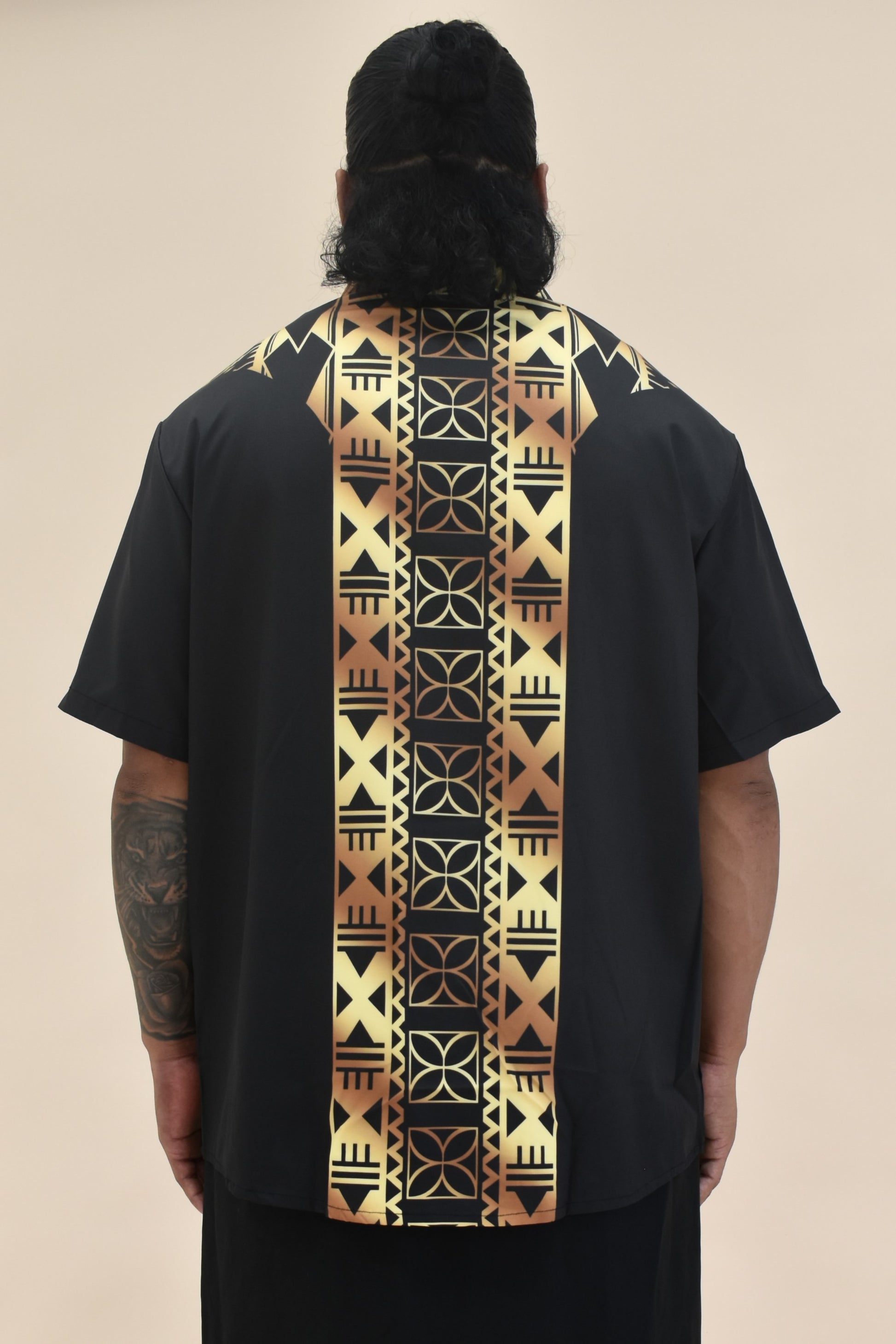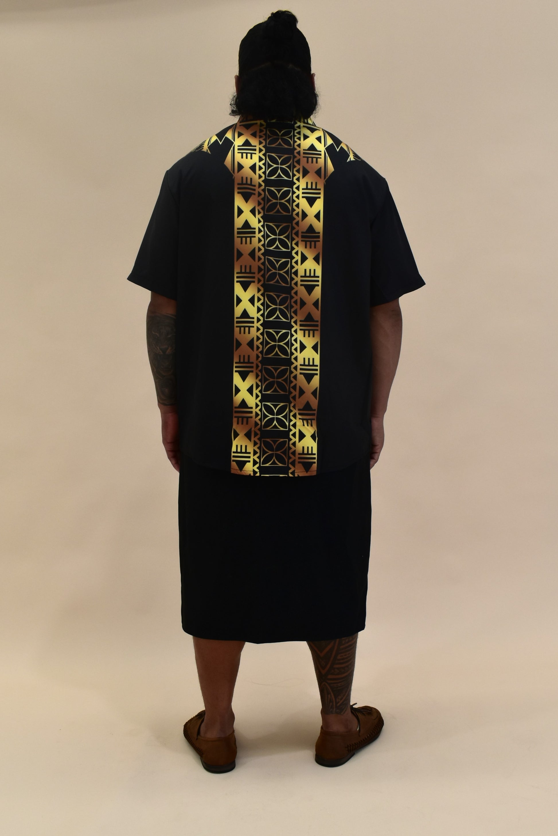 ESEKIA SHIRT - MENS SHIRT - COLLARED BUTTON UP - BLACK & GOLD