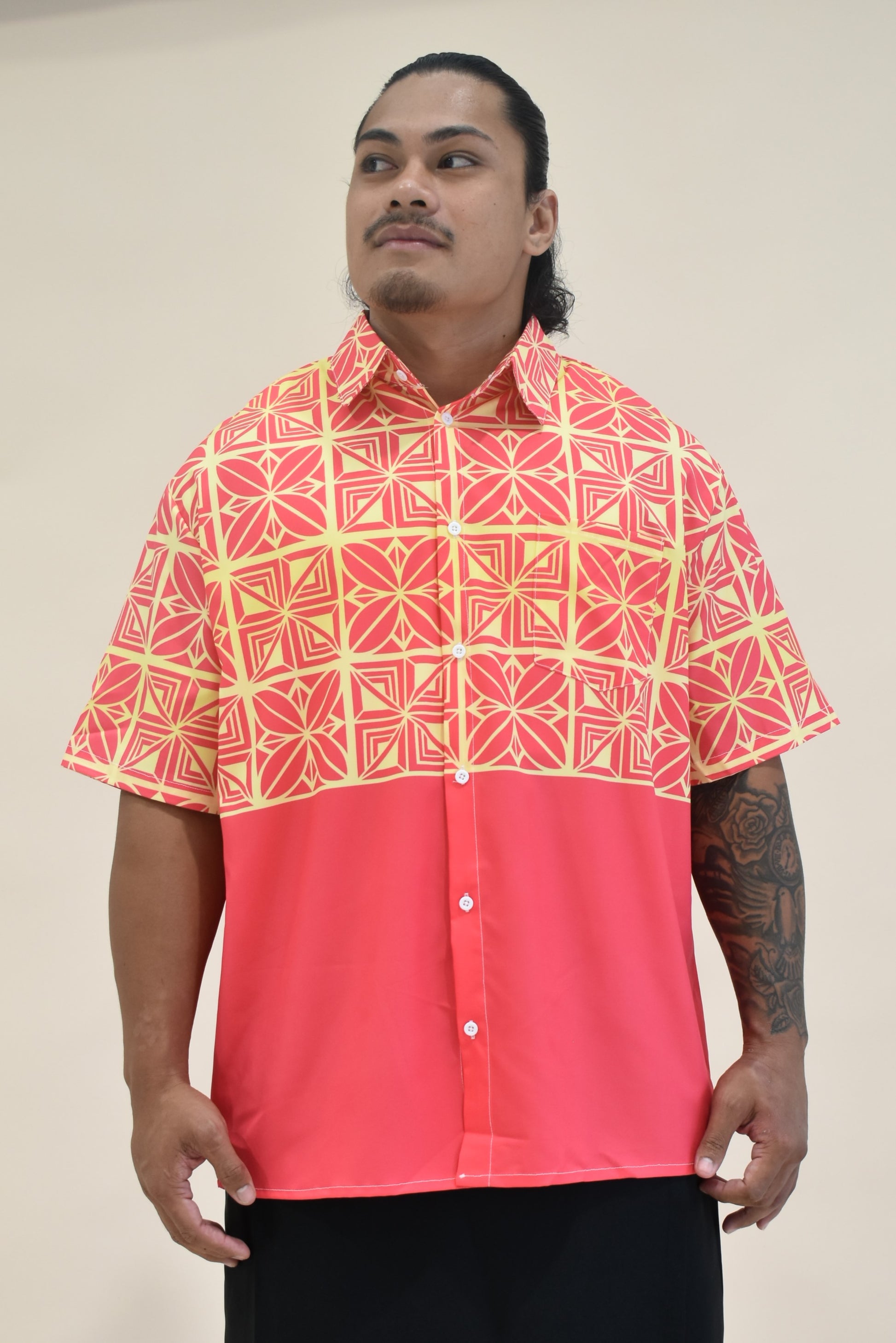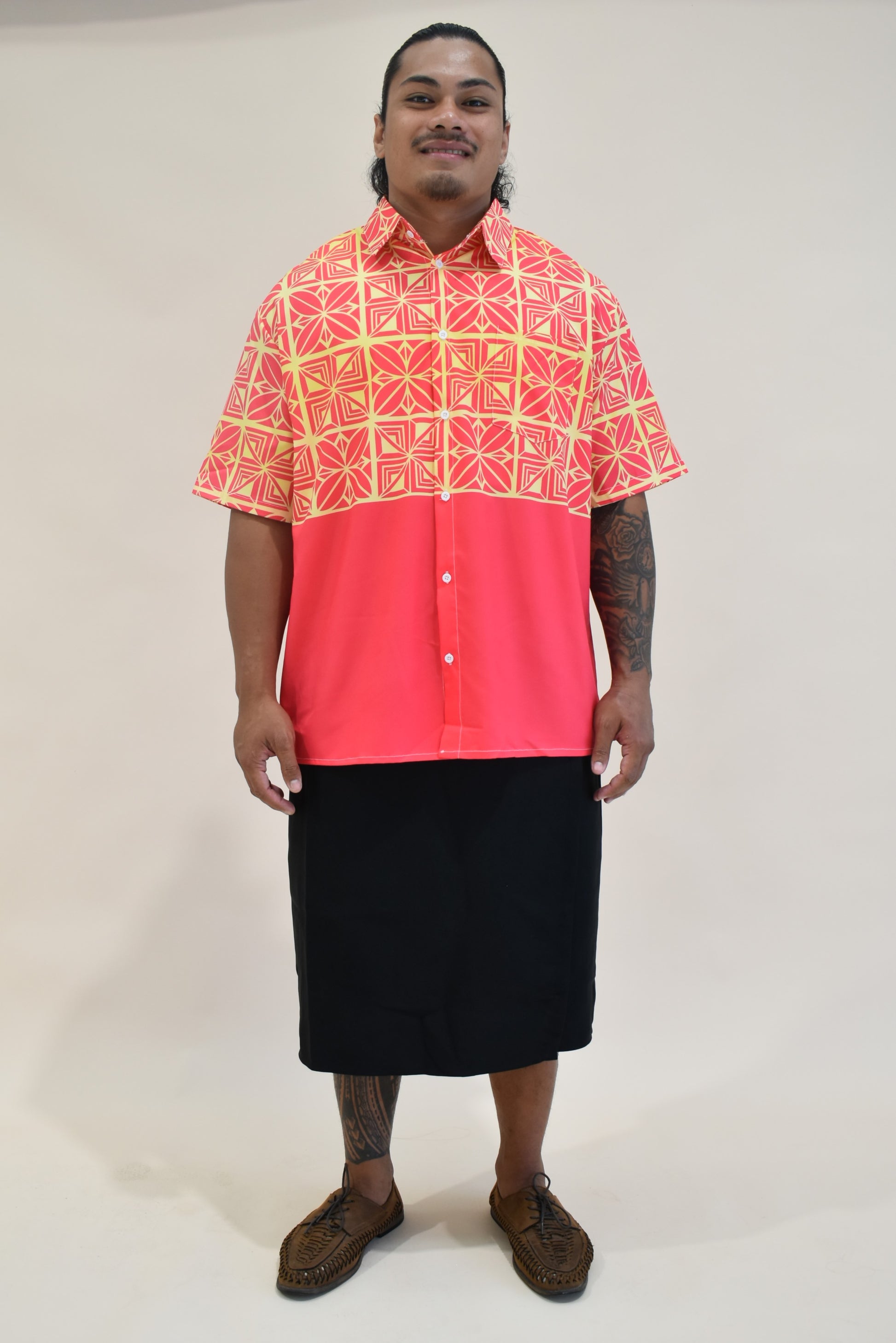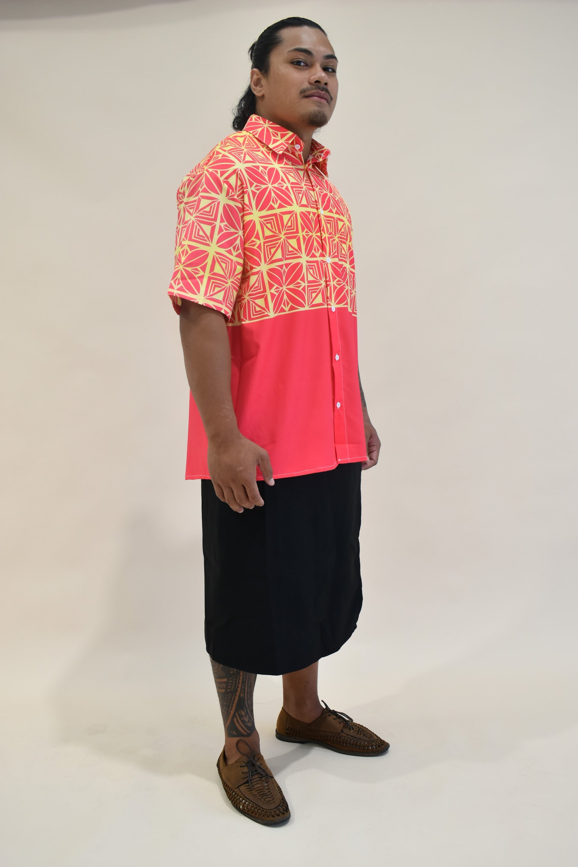 SIONE SHIRT - MENS SHIRT - COLLARED BUTTON UP - ORANGE YELLOW & PINK