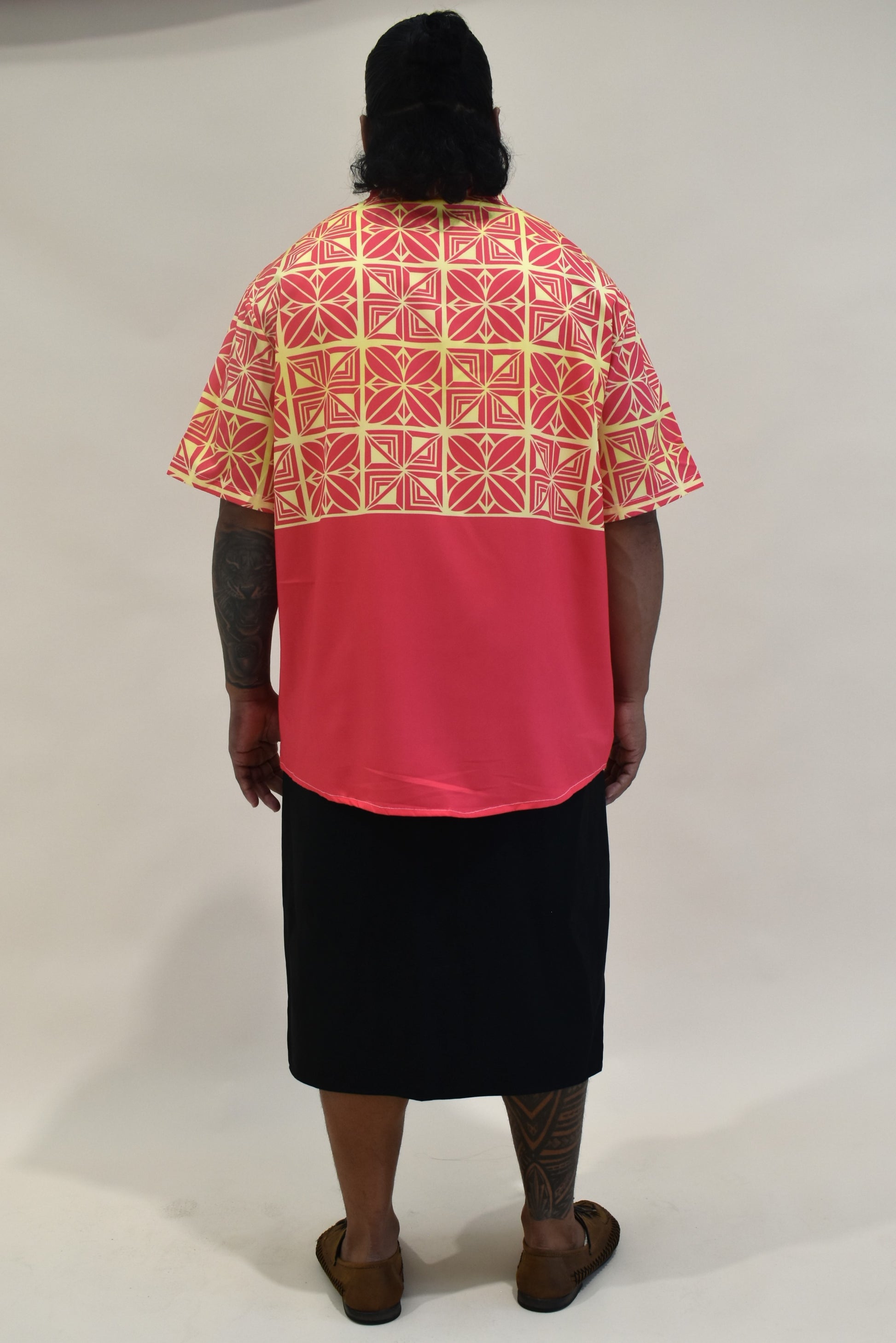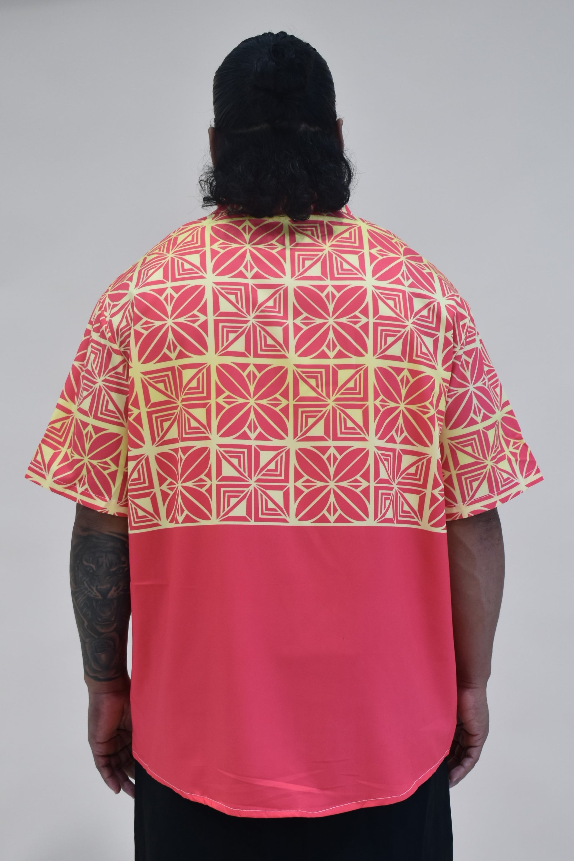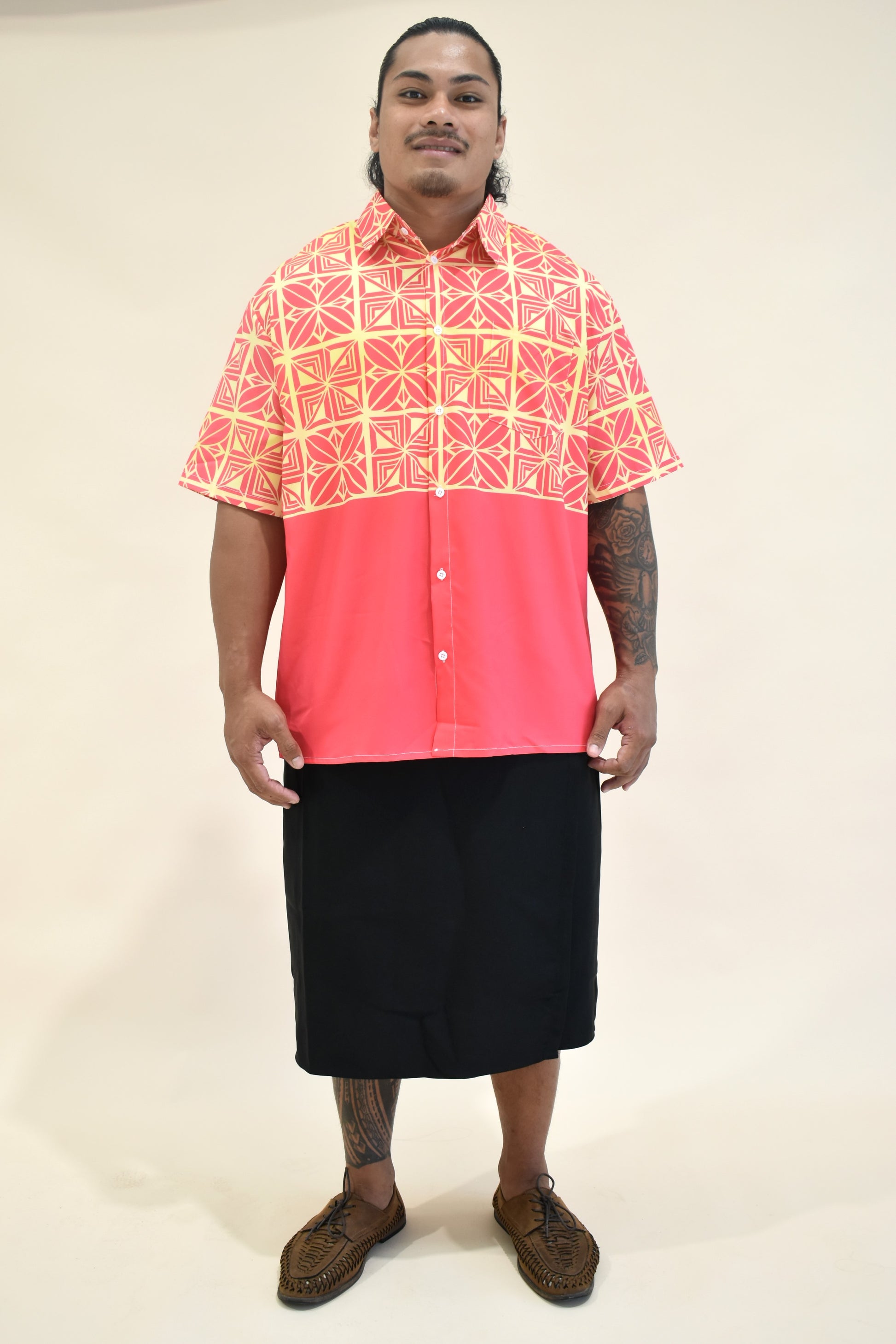 SIONE SHIRT - MENS SHIRT - COLLARED BUTTON UP - ORANGE YELLOW & PINK
