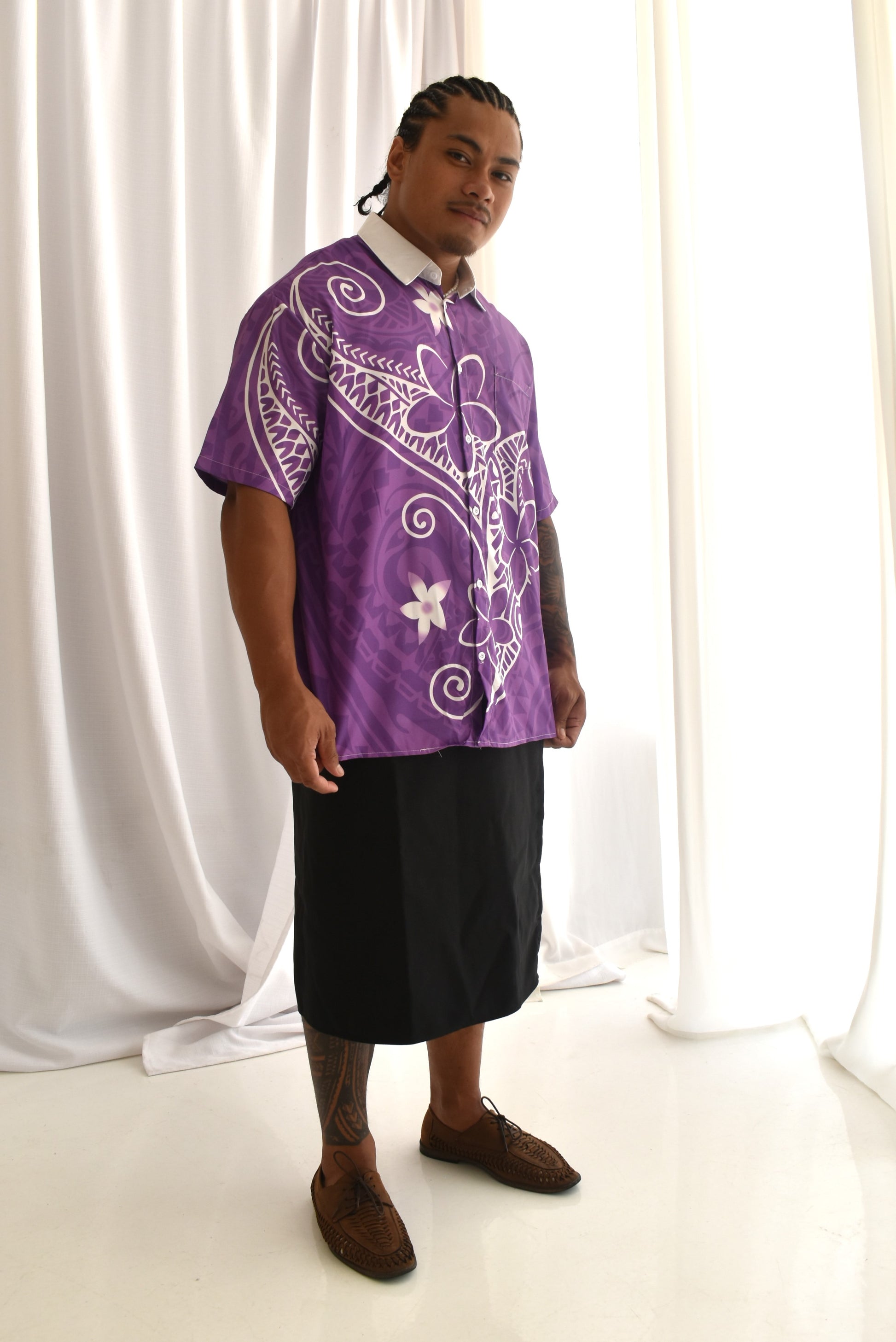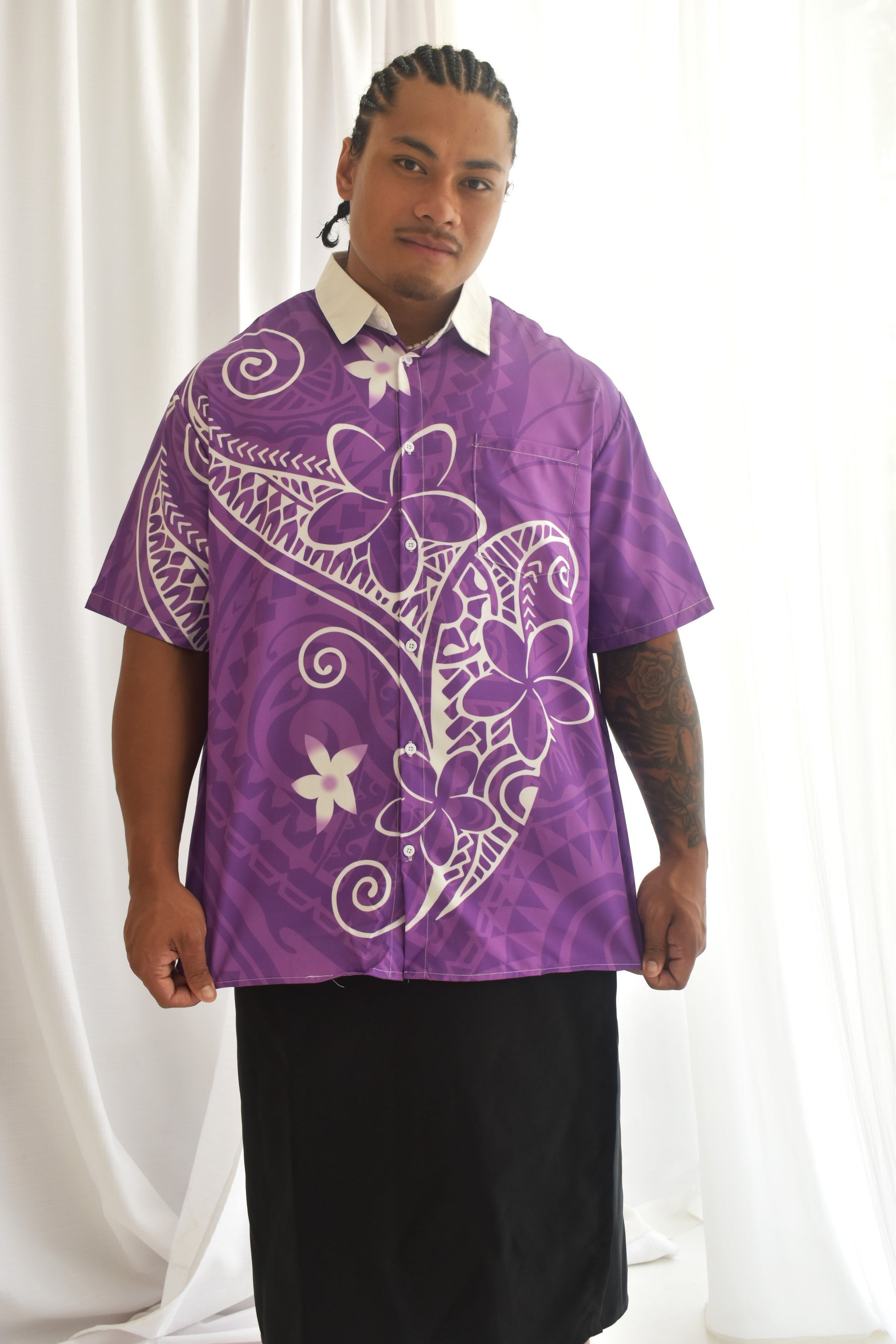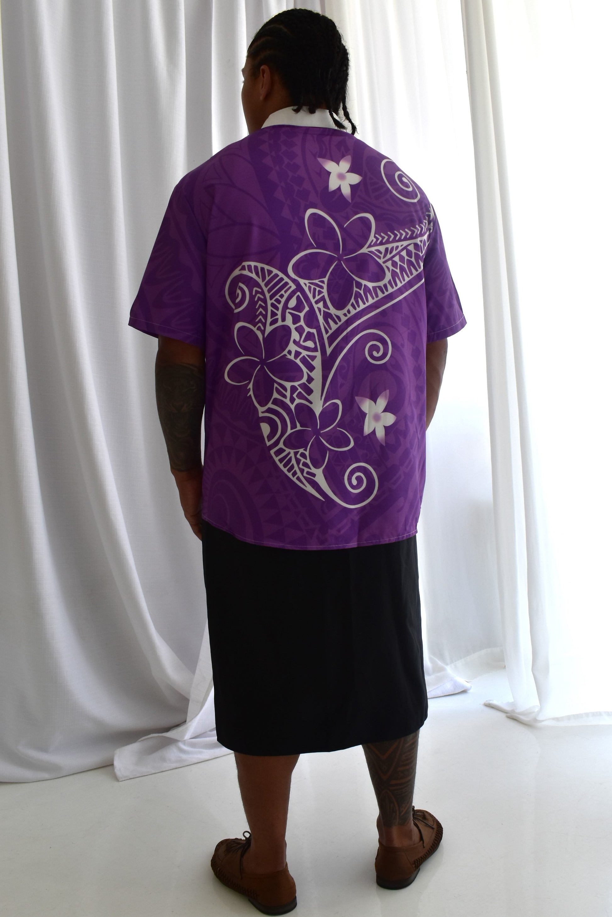 SAMUEL MENS SHIRT - COLLARED BUTTON UP - PURPLE & WHITE