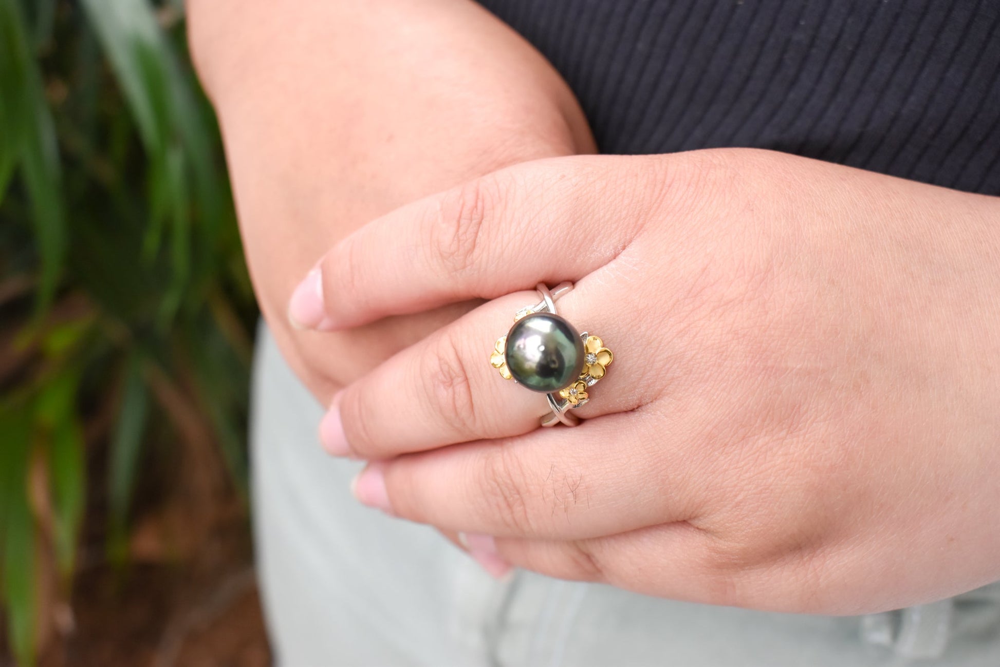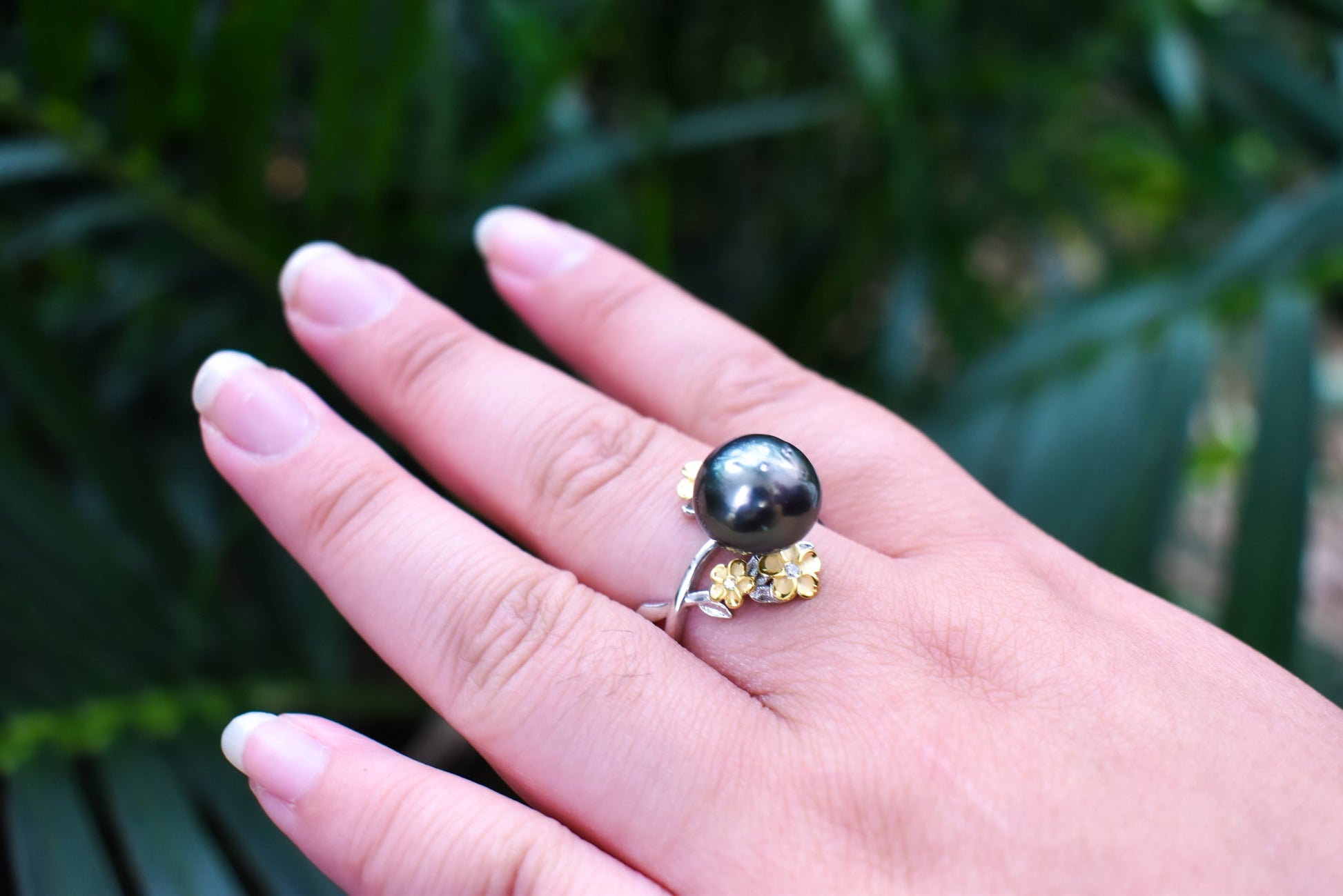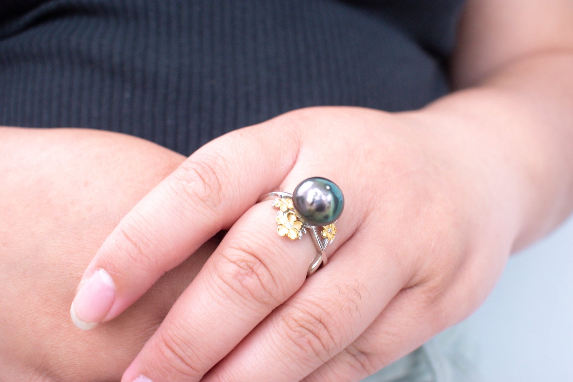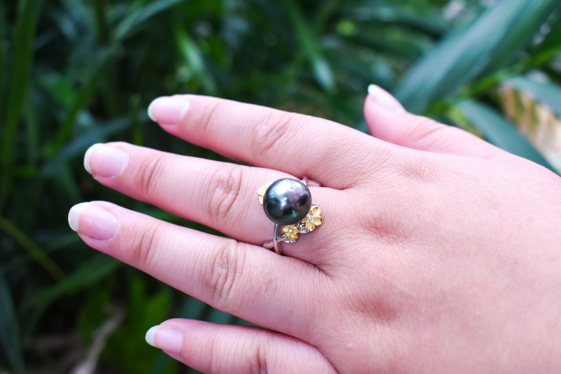 Nera is our brand new 925 sterling silver ring band featuring the lustrous AA+ grade Tahitian pearl. An exotic beauty, this Nera pearl ring is a perfect gift idea for her.