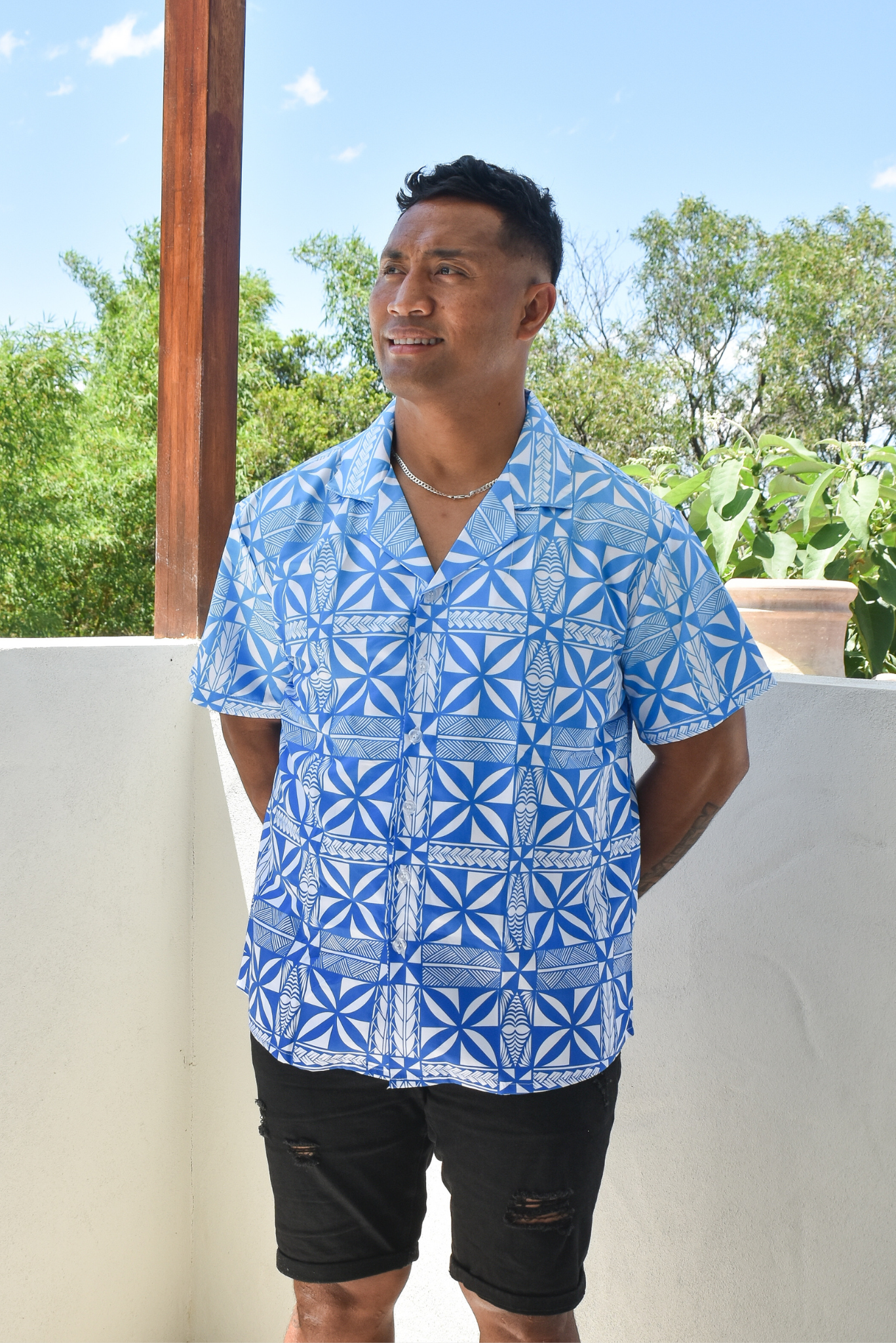 SALESI MENS SHIRT - COLLARED BUTTON V NECK - OMBRÉ BLUE & WHITE
