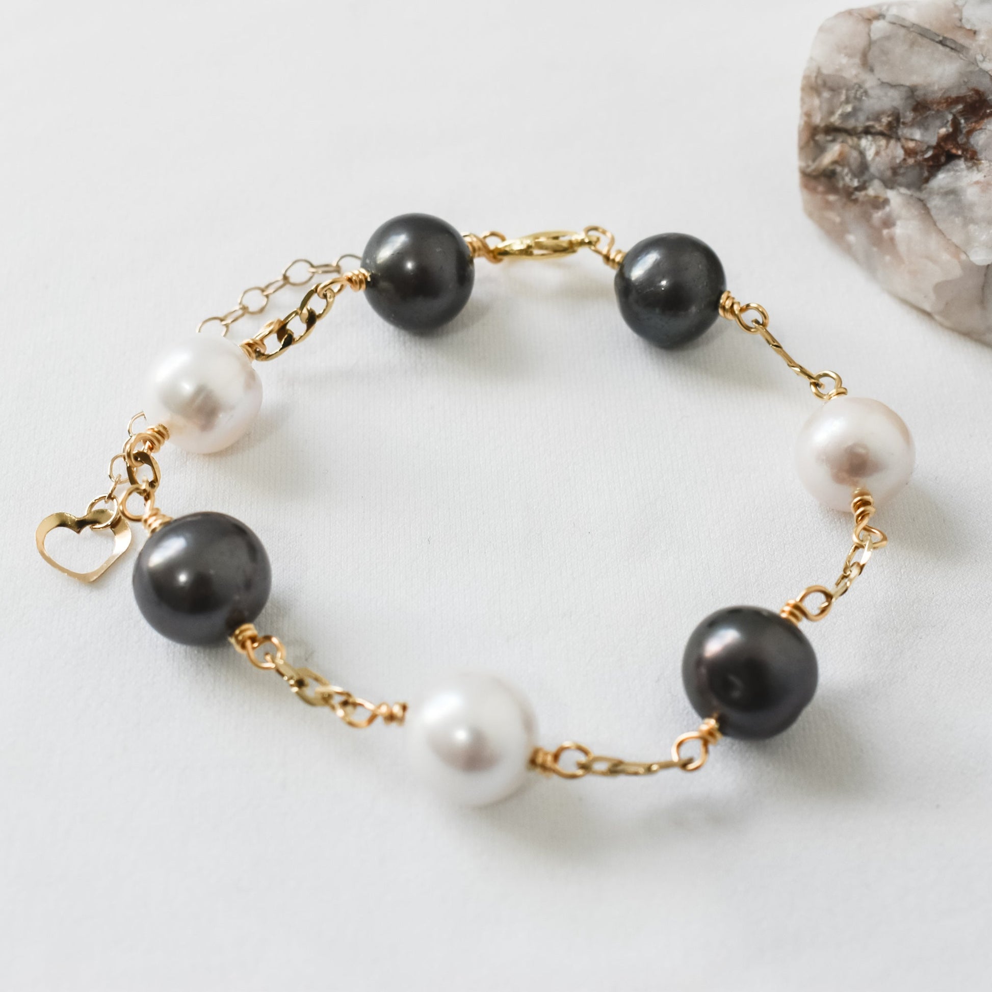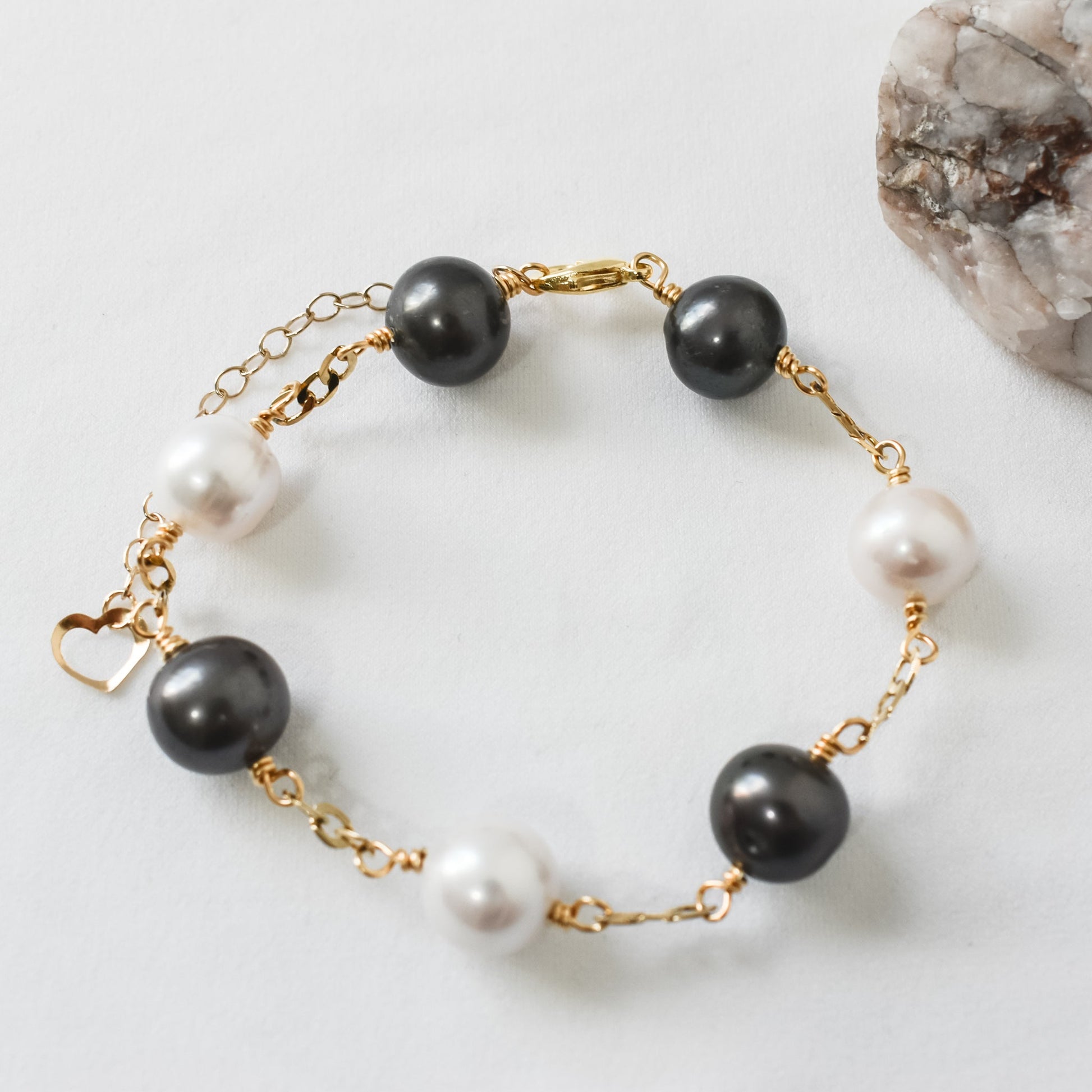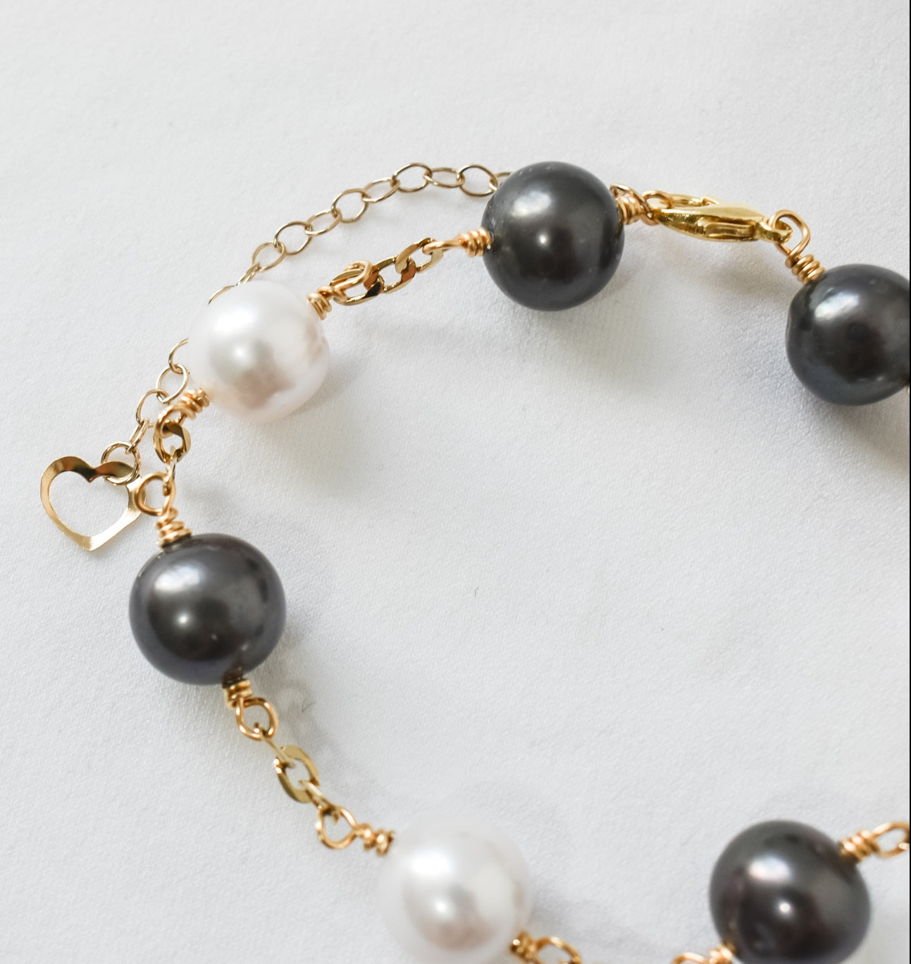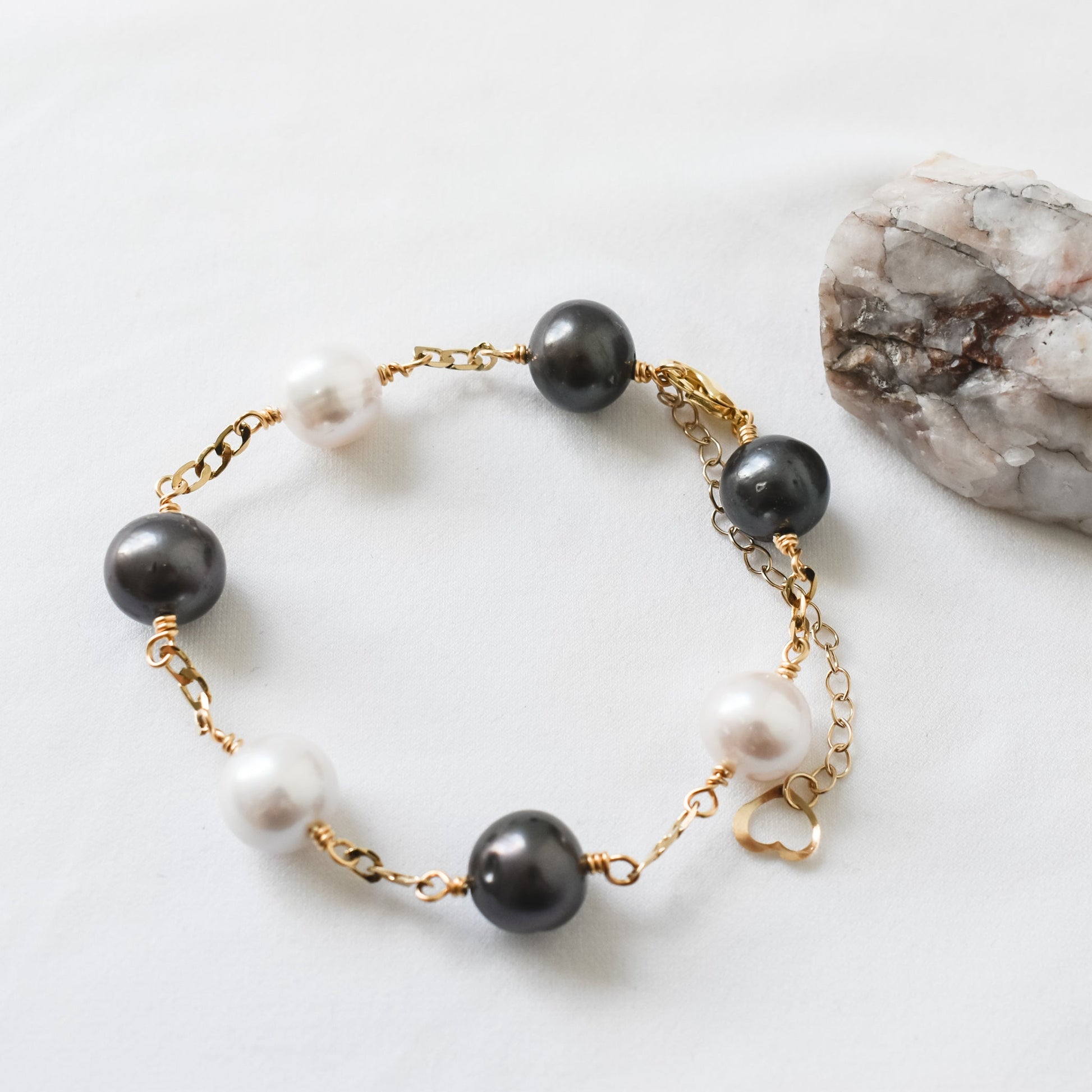ALOHI - NEW Tahitian Pearls with Natural White Freshwater Pearls Bracelet