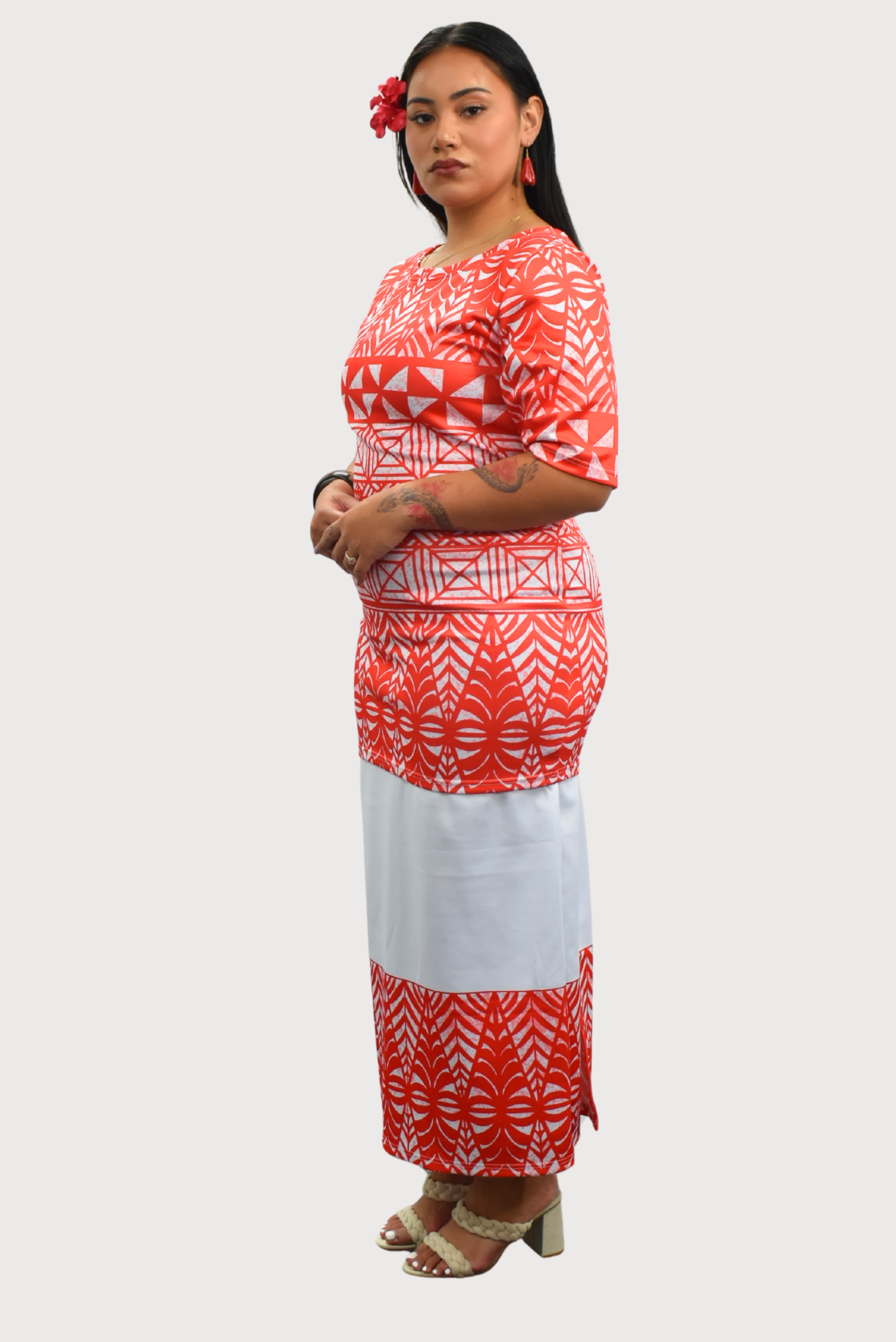 TALIA PULETASI - ROUND NECK PULETASI - TWO PIECE OUTFIT - RED & WHITE