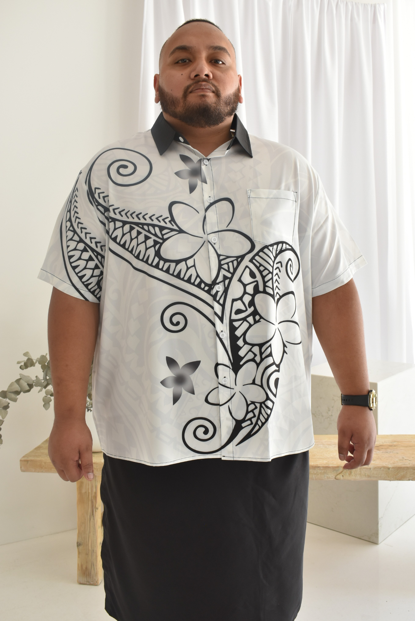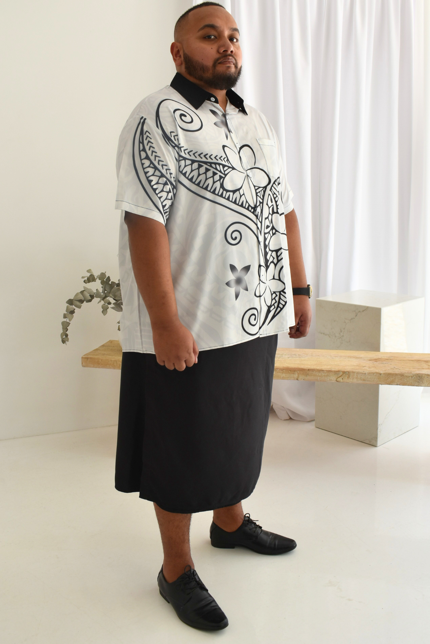 TOMASI SHIRT - COLLARED BUTTON UP SHIRT - WHITE & BLACK